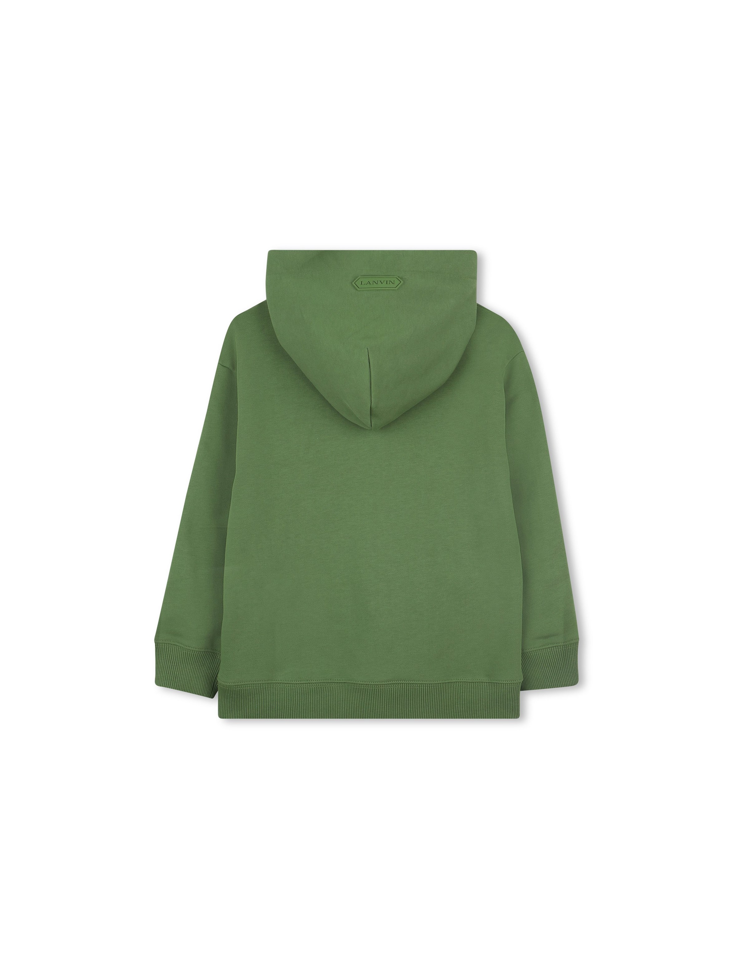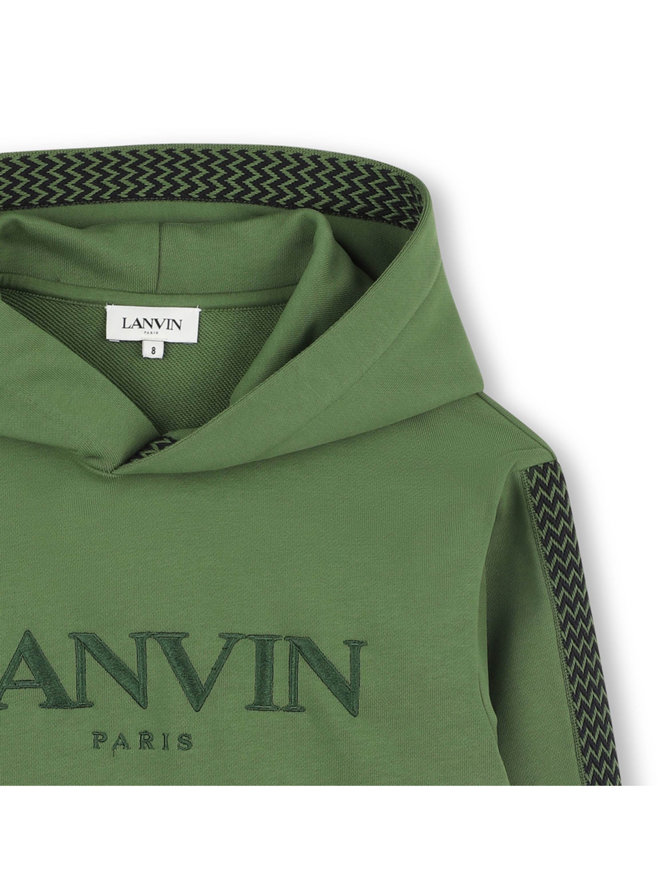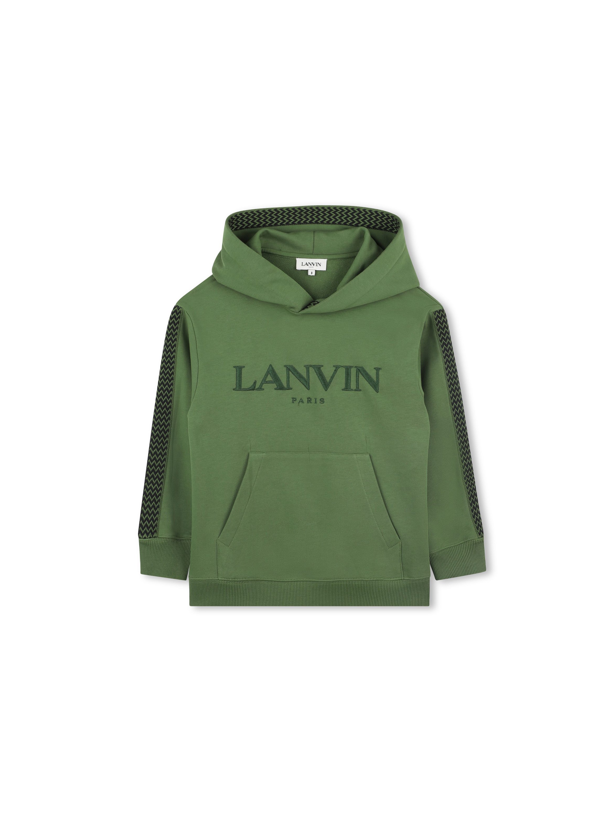 Felpa con cappuccio a maniche lunghe, a tinta unita, con bordo e polsini a costine, tascone a toppa a doppia fessura sul davanti, bande a dall'iconico zig-zag lungo le maniche e all'interno del cappuccio, maxi logo ricamato sul davanti e patch con logo sul cappuccio. Per un look casual e trendy. LANVIN