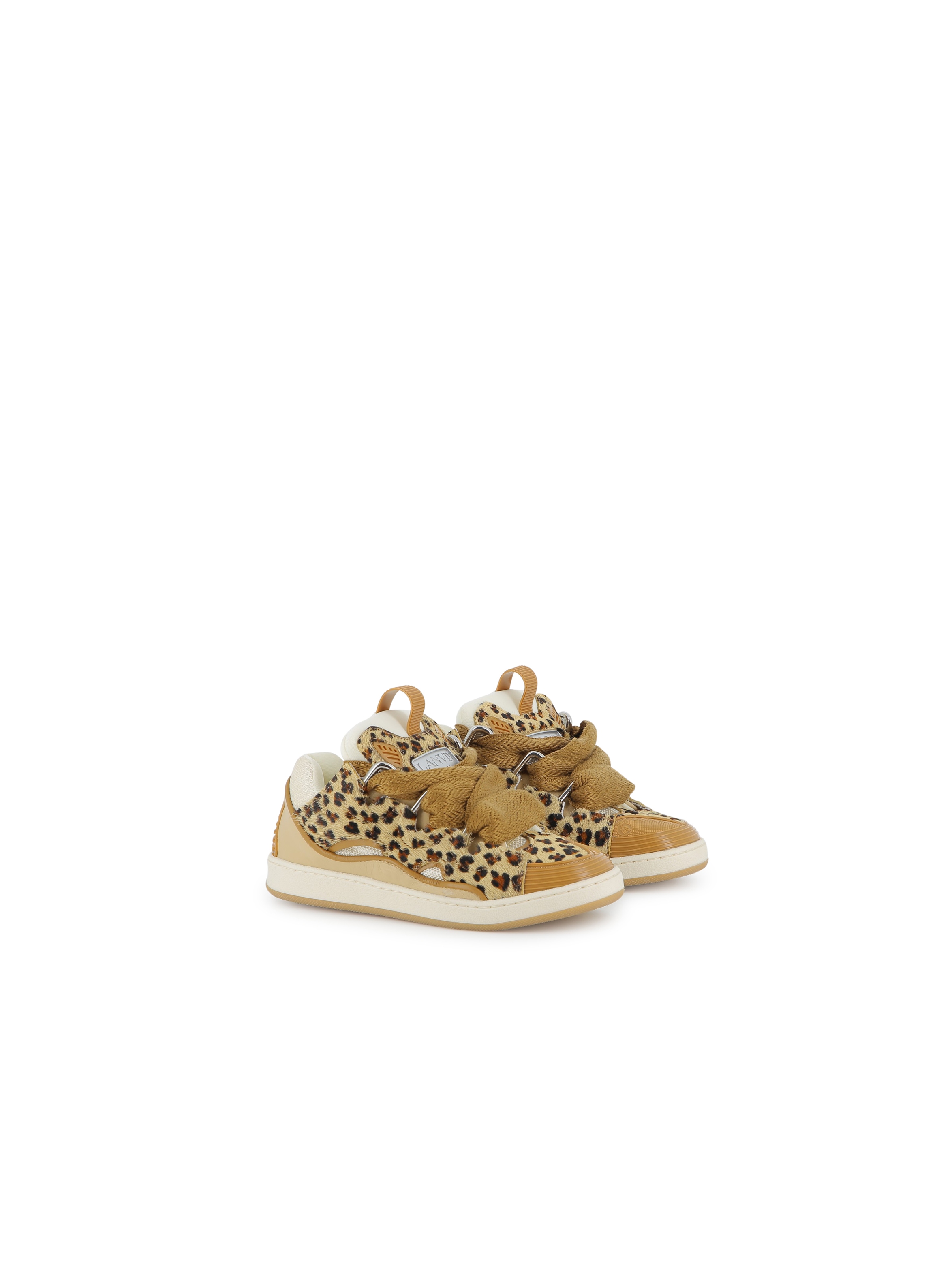 Sneakers in pelle e tessuto, con suola in gomma, chiusura con maxi lacci in morbido tessuto, passalacci in metallo, linguetta logata, inserti in gomma e decoro in tessuto leopardato. Per un look fashion e cool. LANVIN