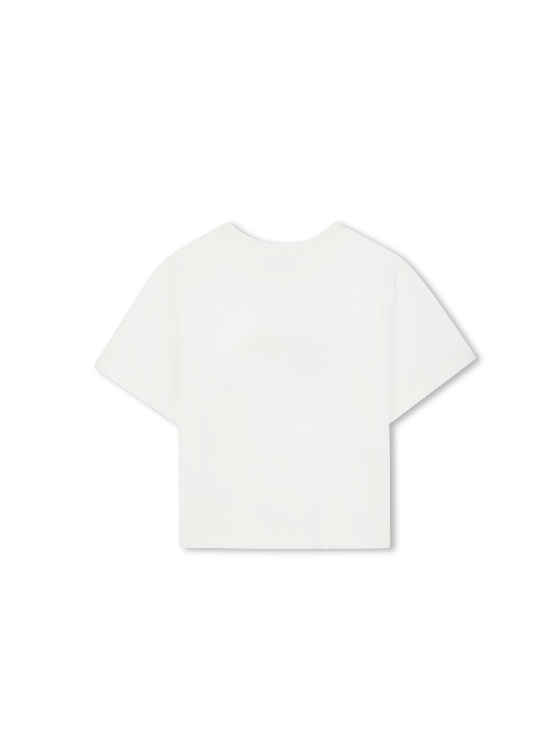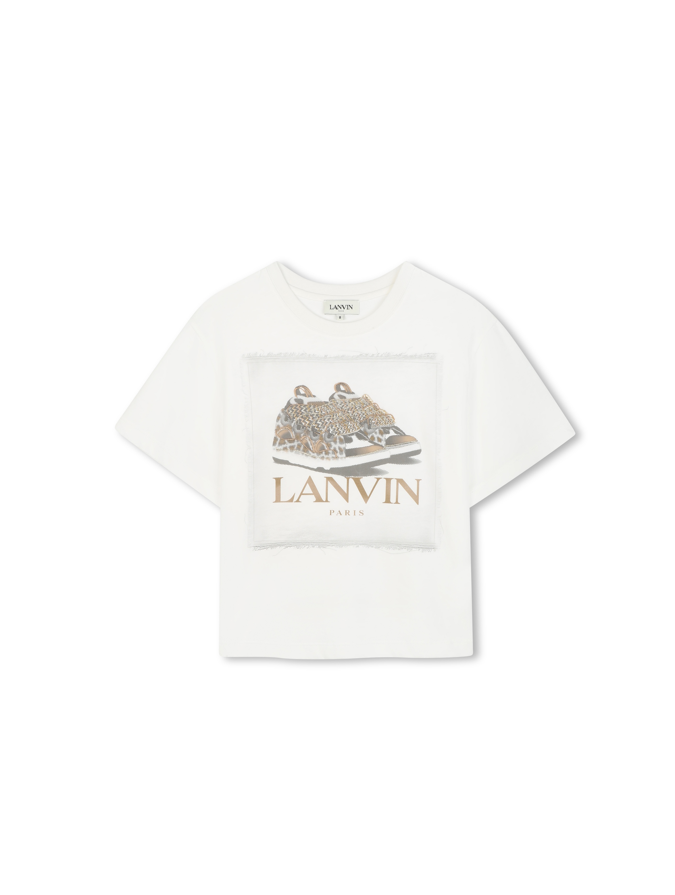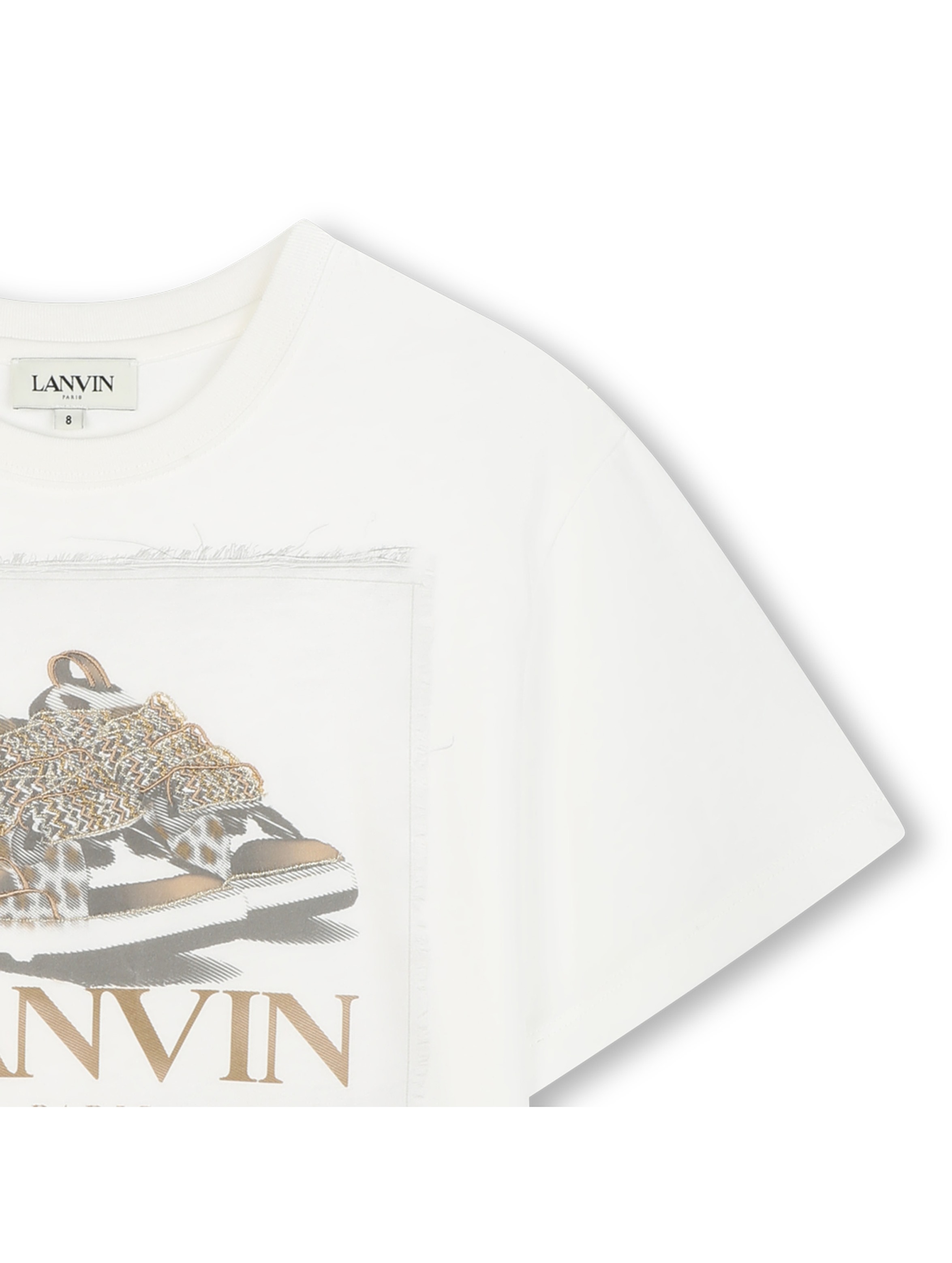 T-shirt a maniche corte, a tinta unita, con scollo rotondo, con inserto a toppa sul davanti con grafica e logo ricamati. Per un look fashion e trendy. LANVIN