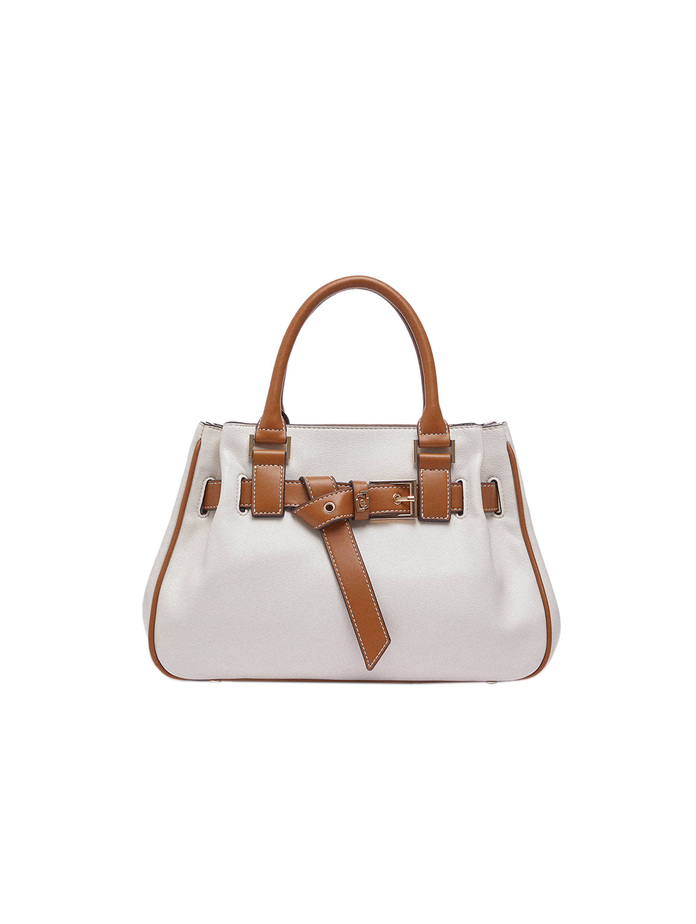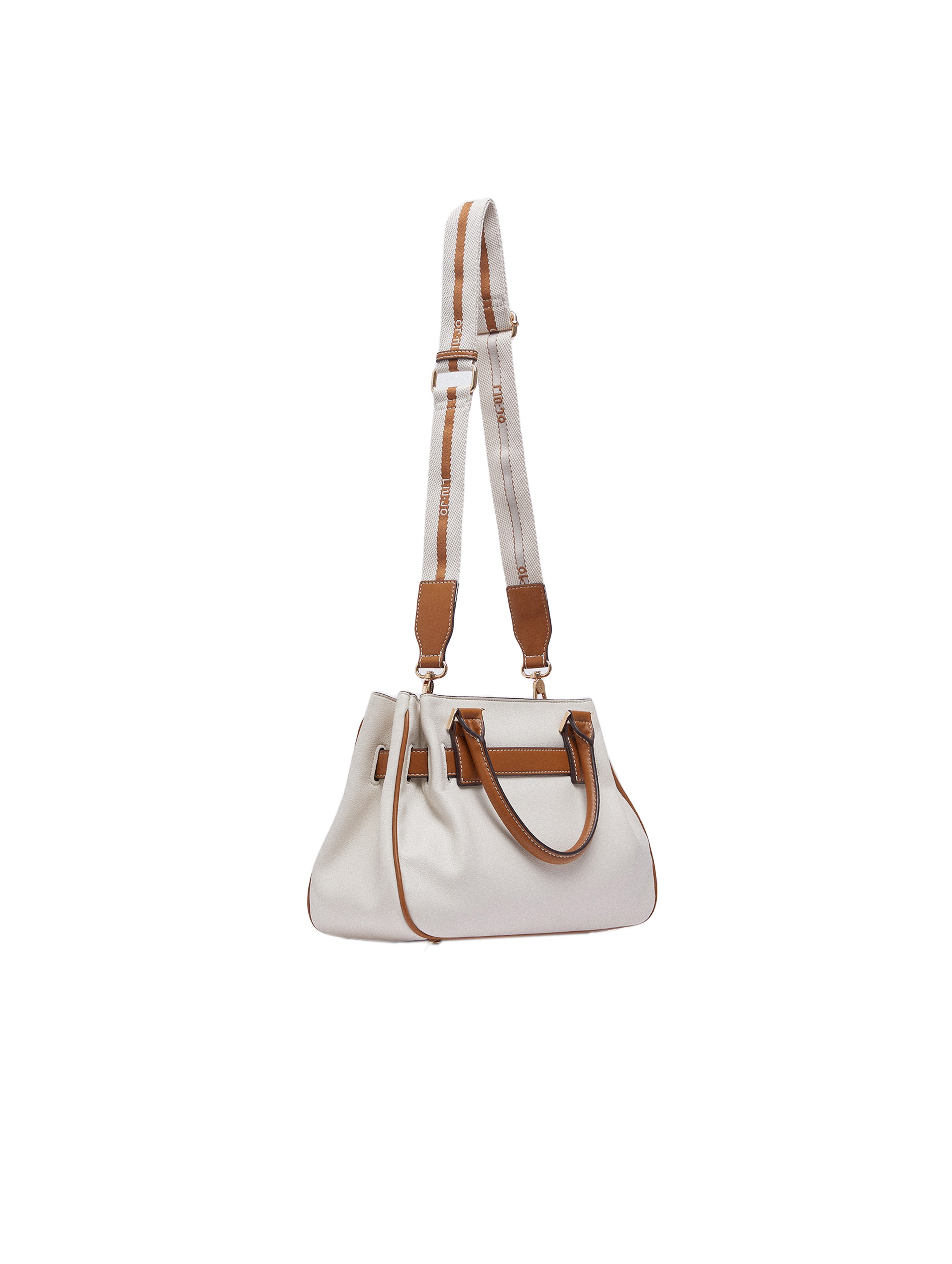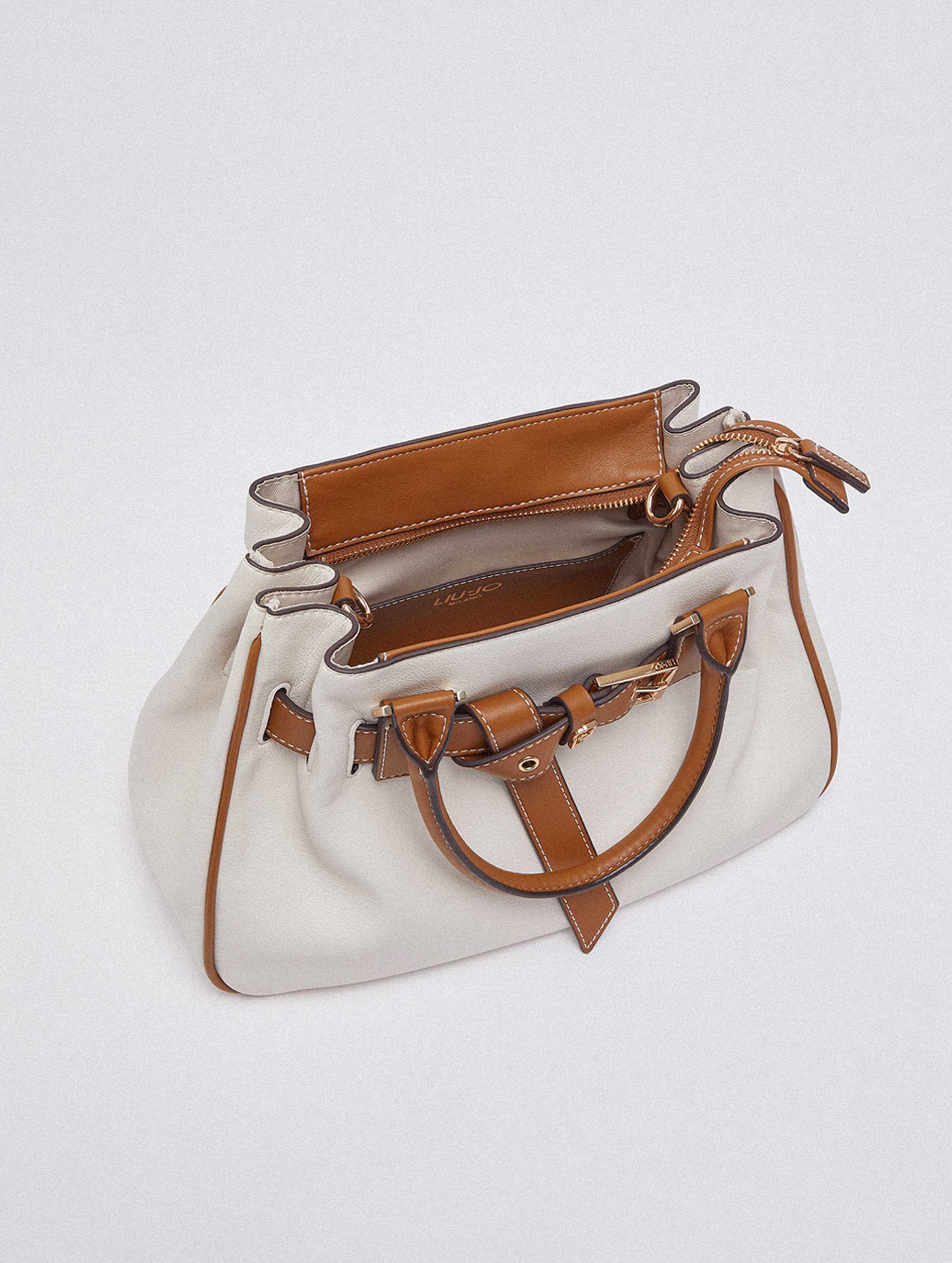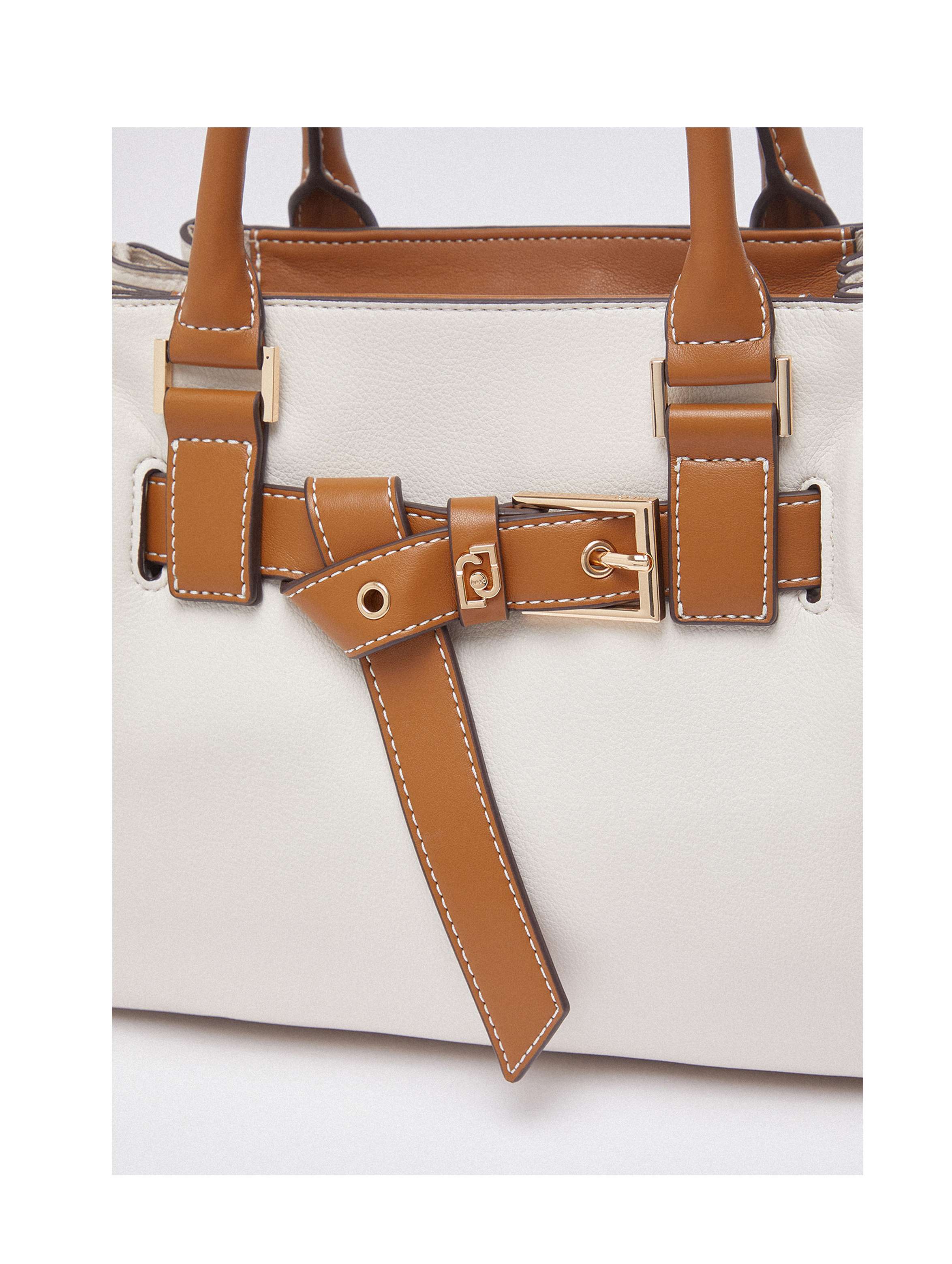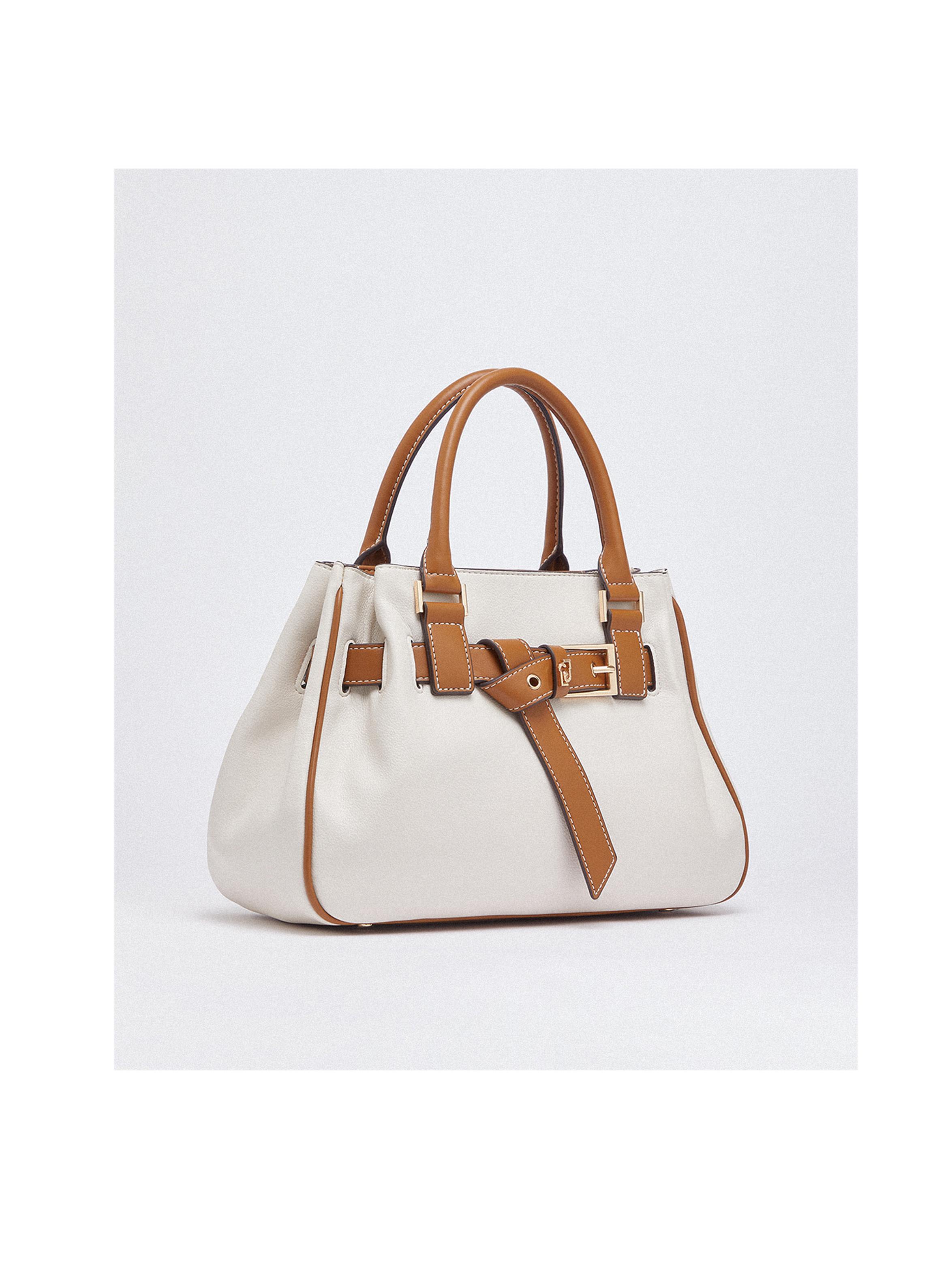 Borsa a mano piccola, dal design bicolore, con ampio scomparto centrale, tasca interna aperta a parete, doppi manici tubolari, tracolla regolabile e removibile per una portabilità crossbody e particolare dettaglio di fibbia decorativa con logo monogram sul davanti. Per un look sofisticato e chic. LIU.JO