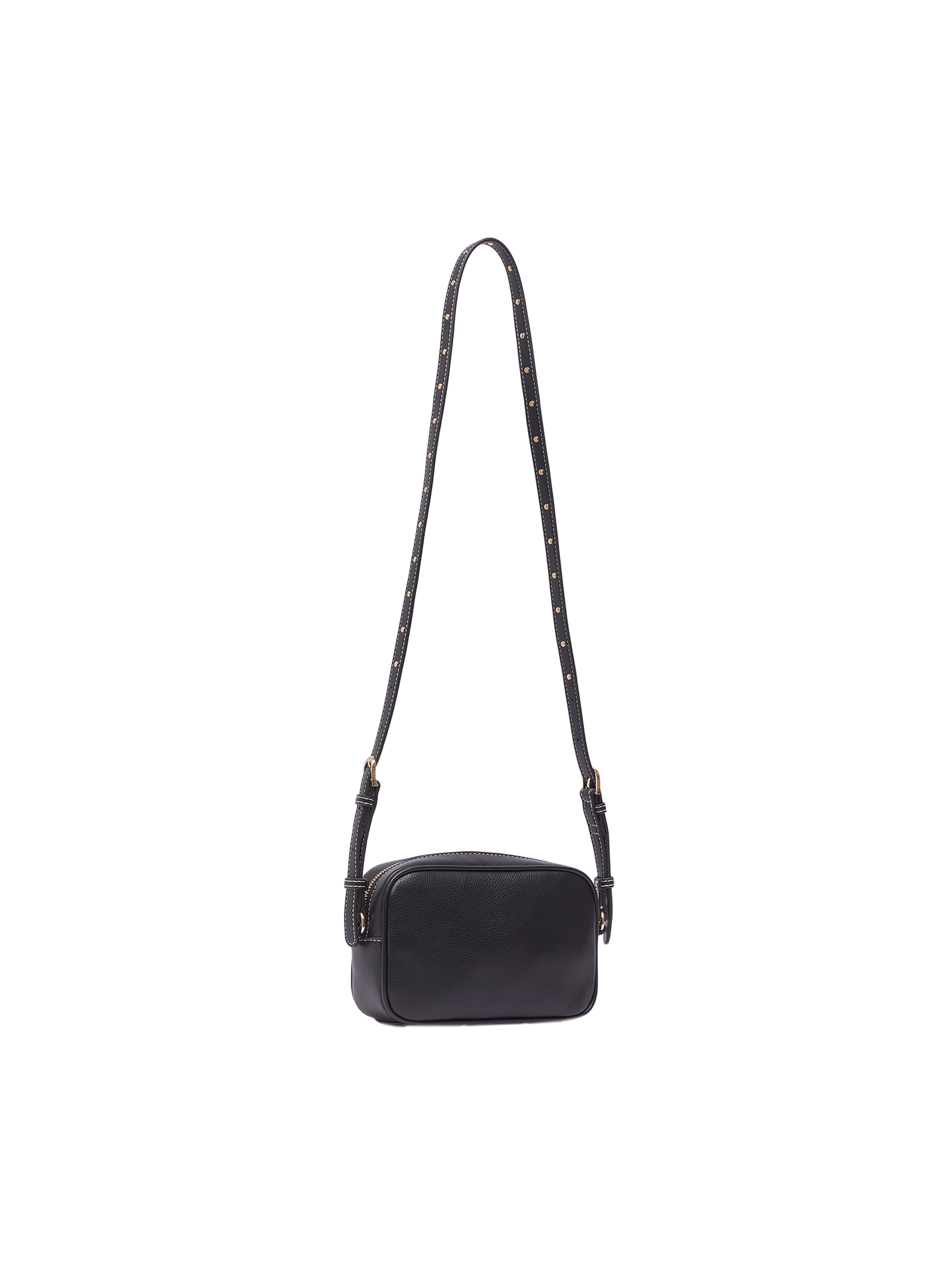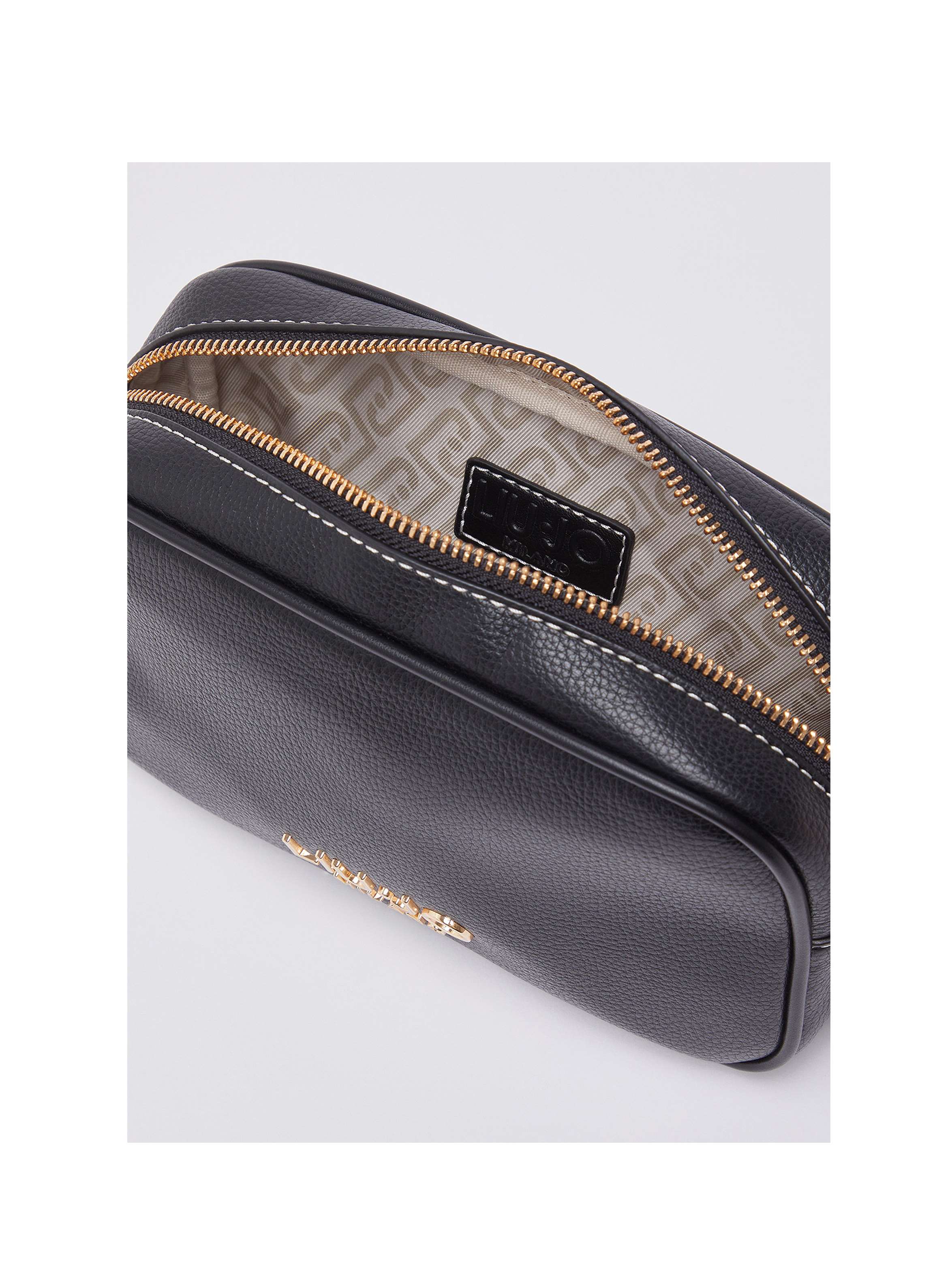 Borsa a tracolla piccola modello camera case, con stampa effetto bottalato, logo lettring sul davanti, fodera interna logata, chiusura con zip, tracolla regolabile con fibbia e particolari mini borchie sulla tracolla. Per un look rock e cool. LIU.JO