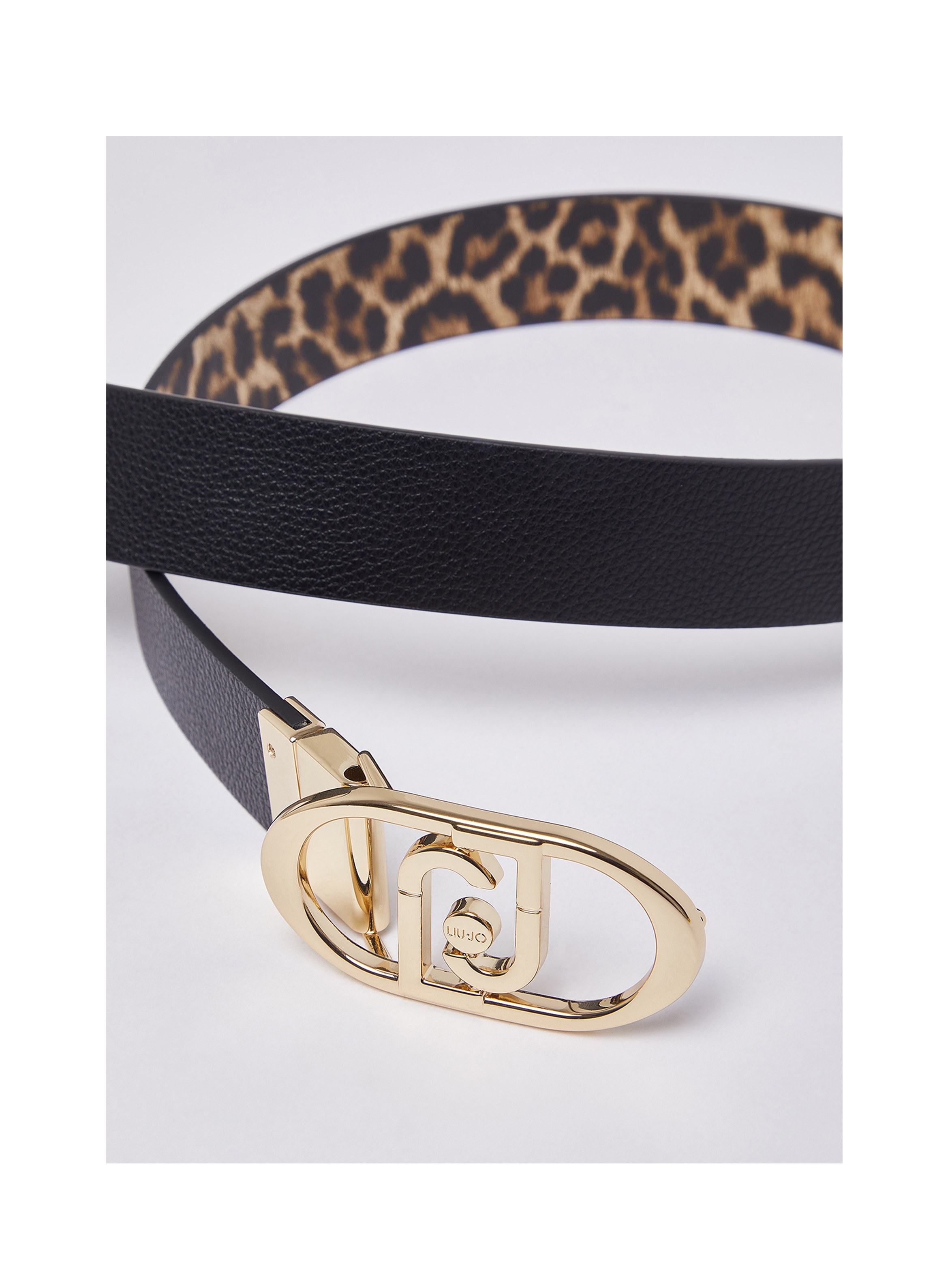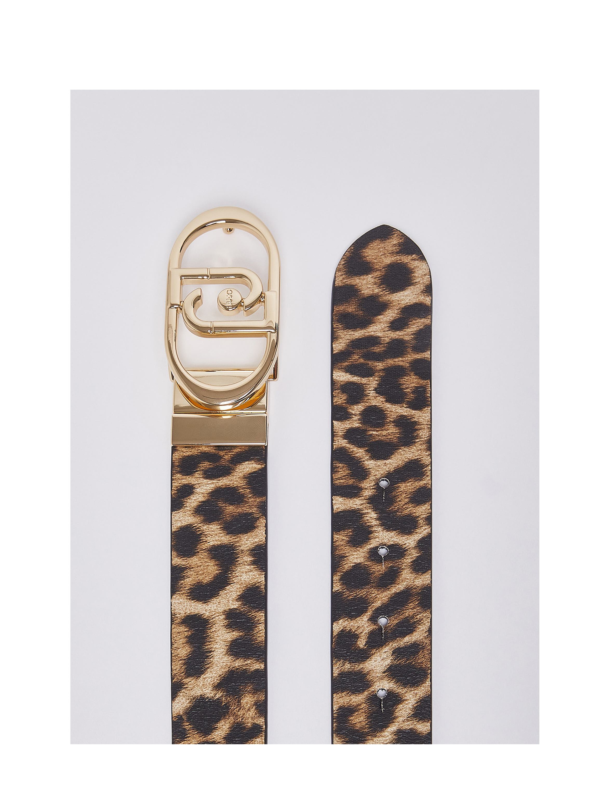 Cintura da donna dal design reversibile, da 3,5 cm di altezza, a tinta unita da un lato e con stampa animalier dall'altro e fibbia regolabile con logo monogram. Per un look fashion e chic. LIU.JO