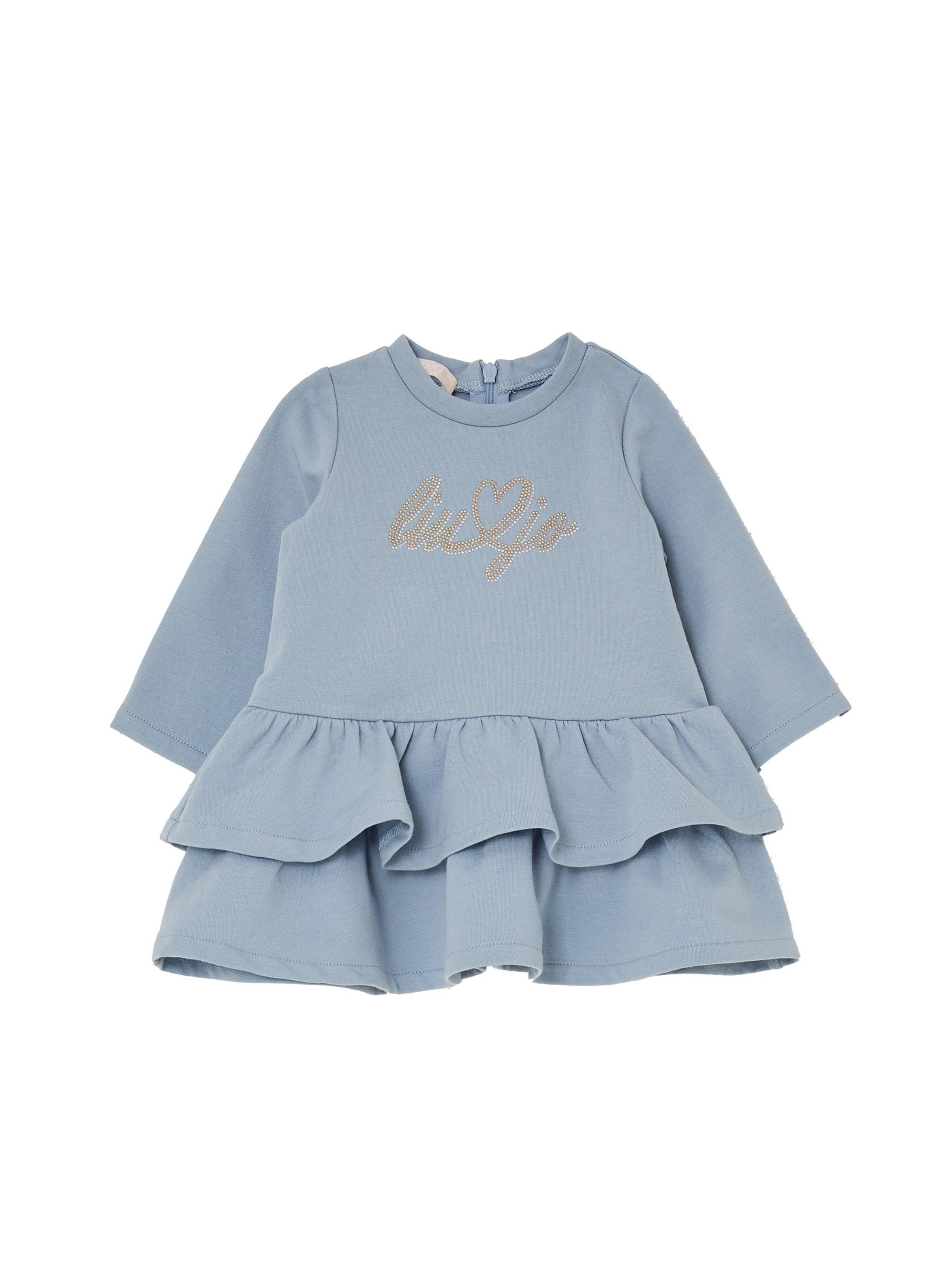 Abito in felpa di cotone stretch, a tinta unita, con maniche lunghe, scollo rotondo, chiusura con zip invisibile sul retro, balza al fondo e logo con strass sul davanti. Per un look casual e trendy. LIU.JO