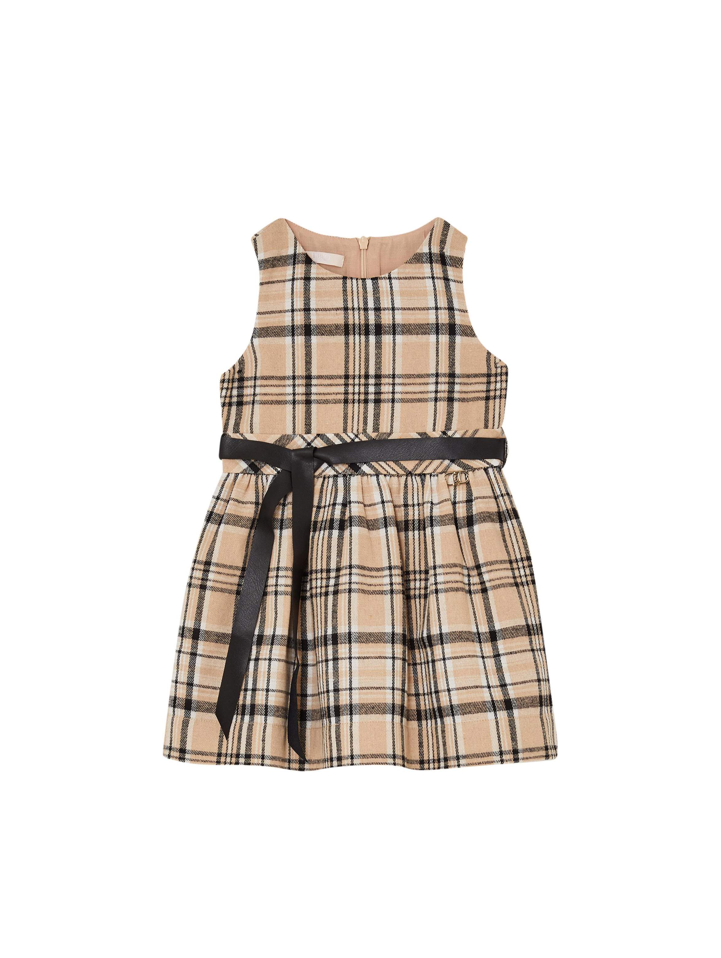 Abito smanicato in misto cotone, con scollo rotondo, motivo check all over, cintura in tessuto spalmato a contrasto, chiusura con zip sul retro e logo in metallo. Per un look raffinato e chic. LIU.JO