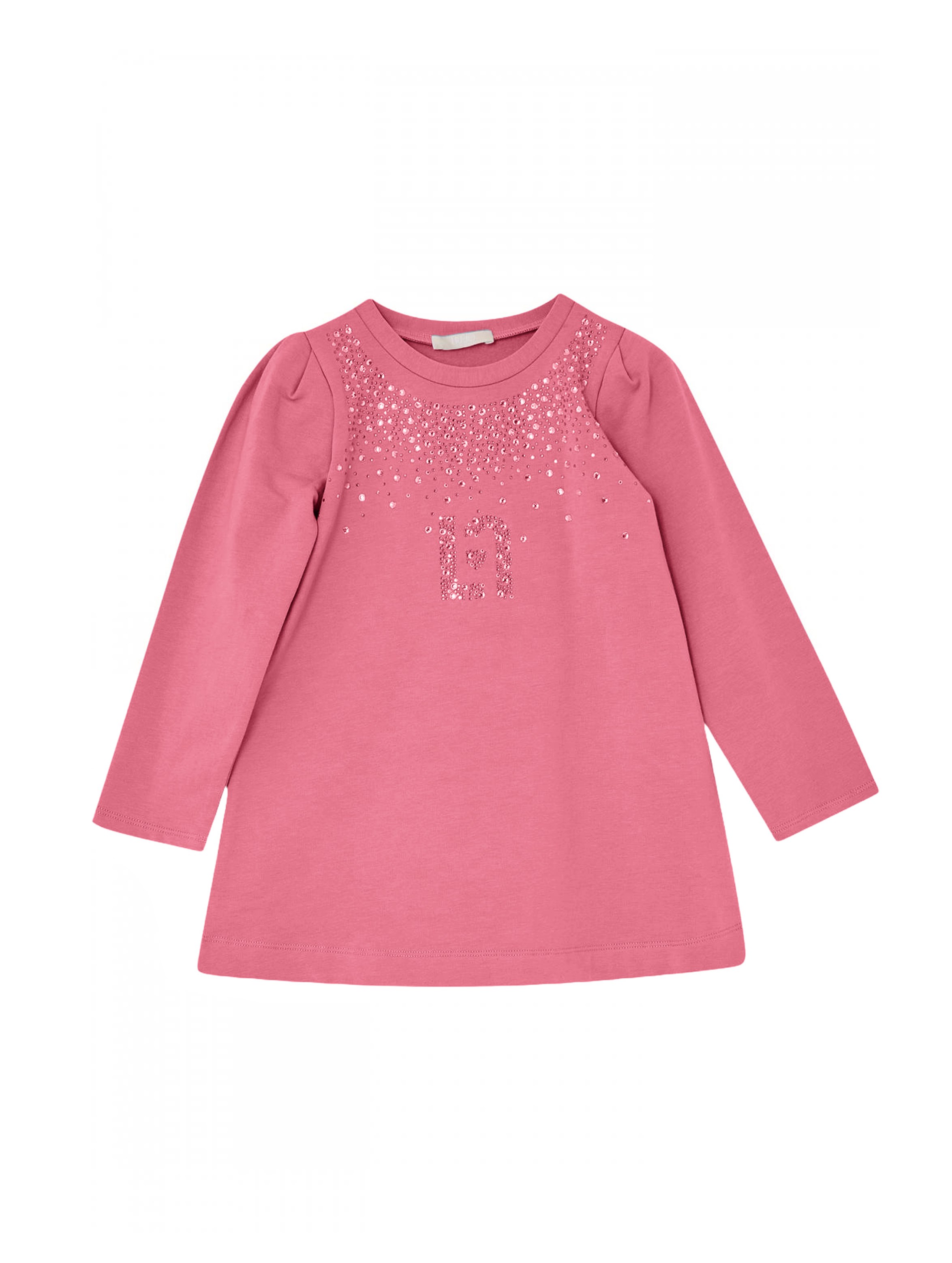 Abito in felpa di cotone stretch, a maniche lunghe, con collo rotondo, a tinta unita, dal design A-line, con strass applicati e logo LJ con strass. Per un look trendy e fashion. LIU.JO