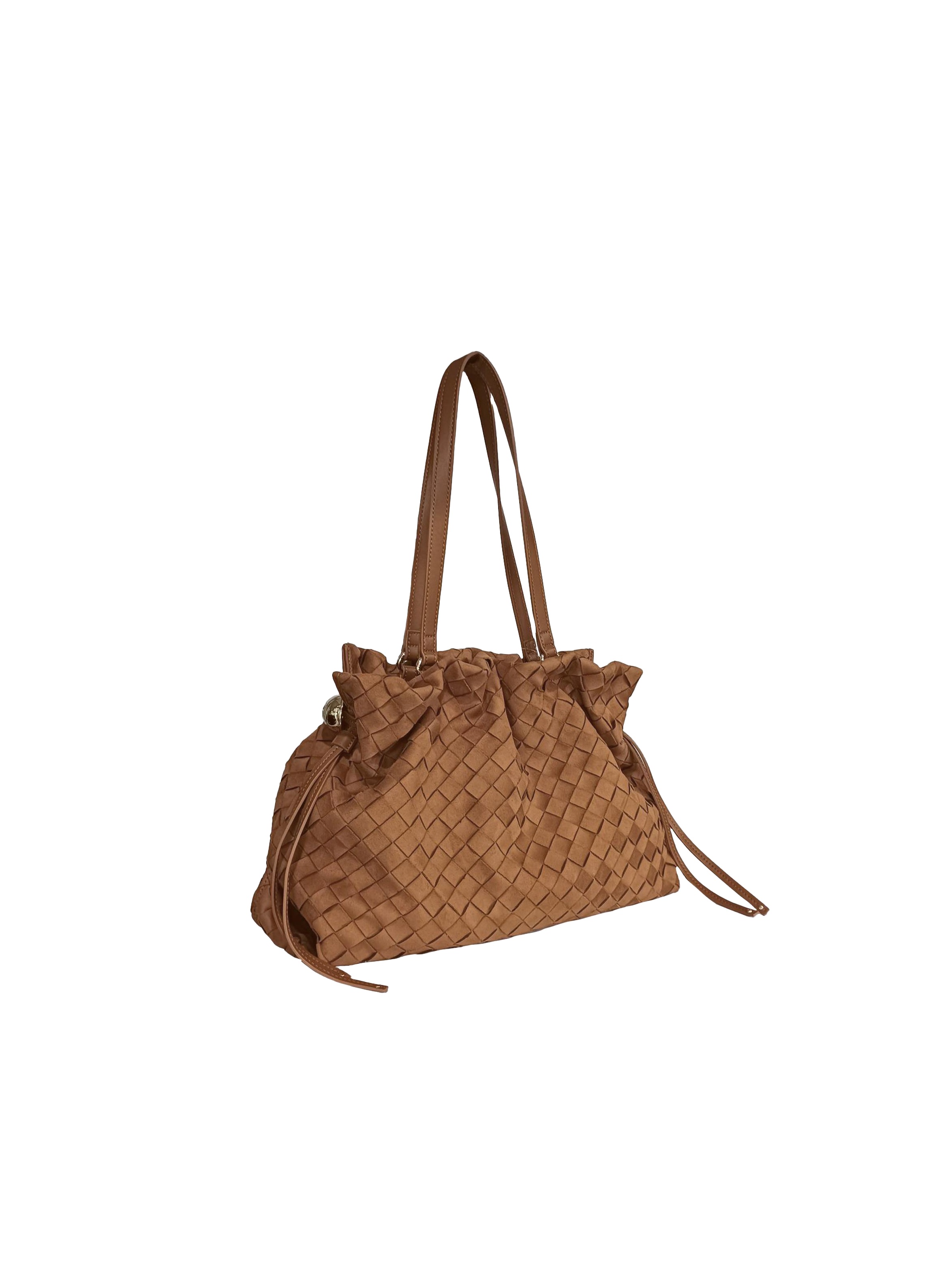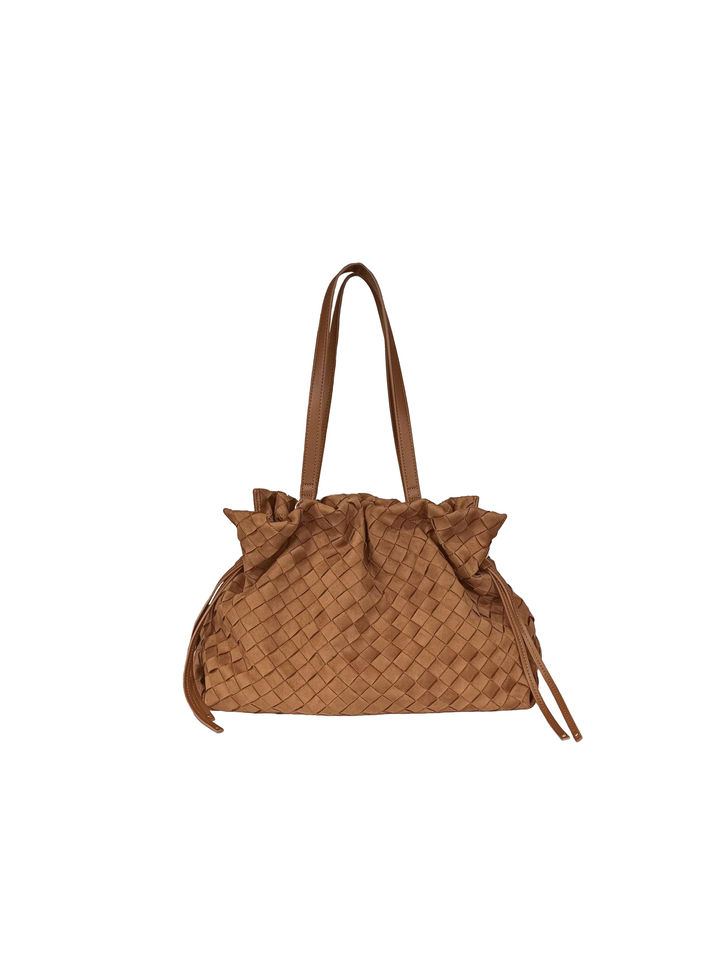 Borsa a spalla grande, dal particolare design intrecciato, con fodera interna logata, ampio scomparto centrale, tasca interna con zip, chiusura con bottone magnetico e coulisse che donano una particolare arricciatura alla borsa, doppi manici e particolari dettagli bold laterali che conferiscono un tocco glam e riflettono la luce ad ogni passo. Per un look unico e chic. LIU.JO
