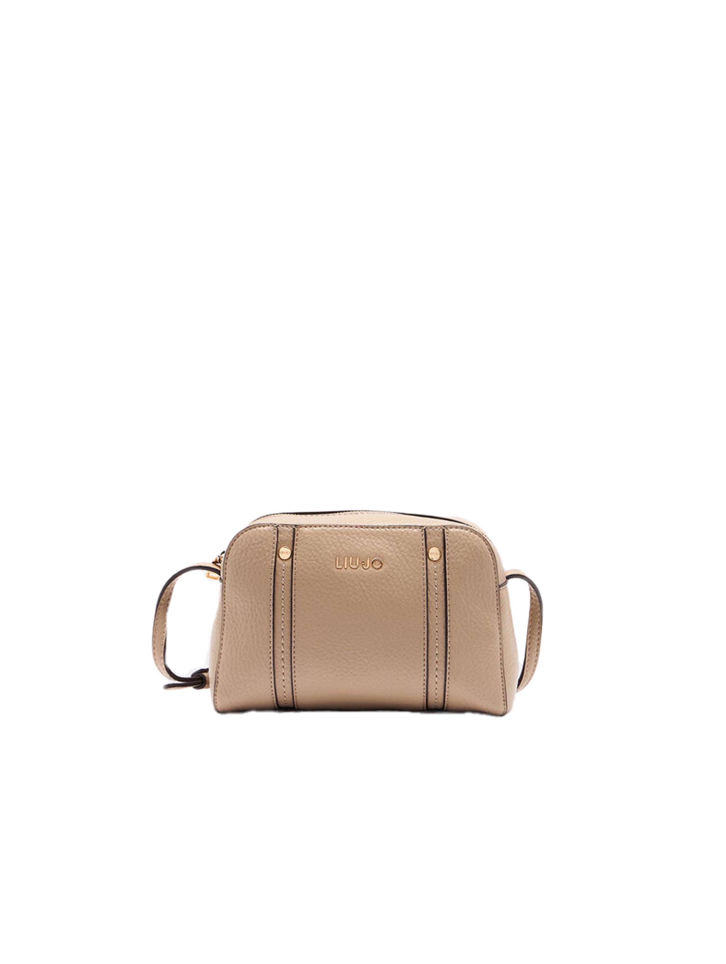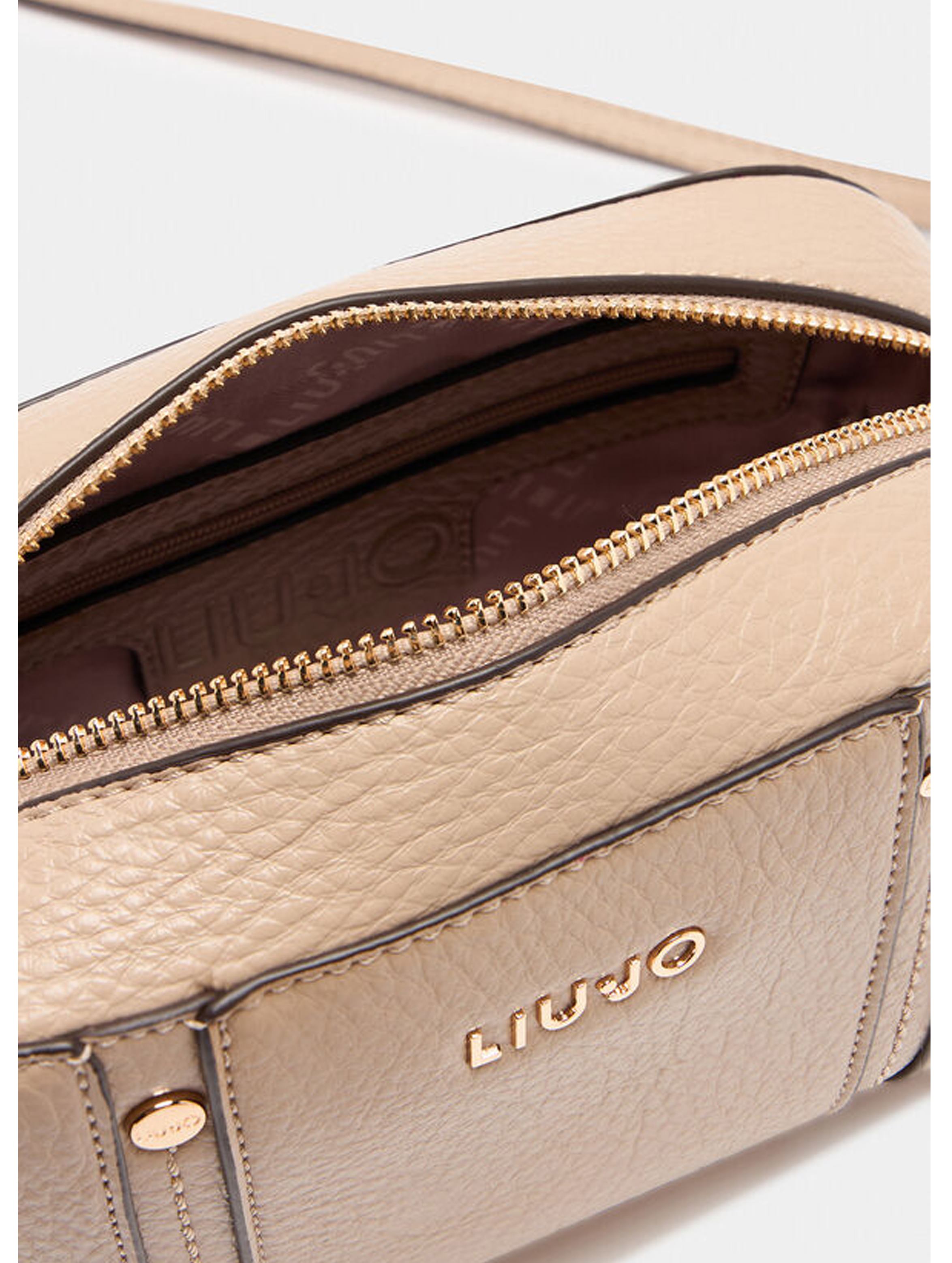 Borsa a tracolla effetto bottalato, con scomparto centrale, fodera interna logata, tasca interna con zip, tracolle regolabile con fibbia, chiusura con zip, cuciture decorative con bottoncino sul davanti e logo lettering in metallo. Per un look trendy e fashion. LIU.JO