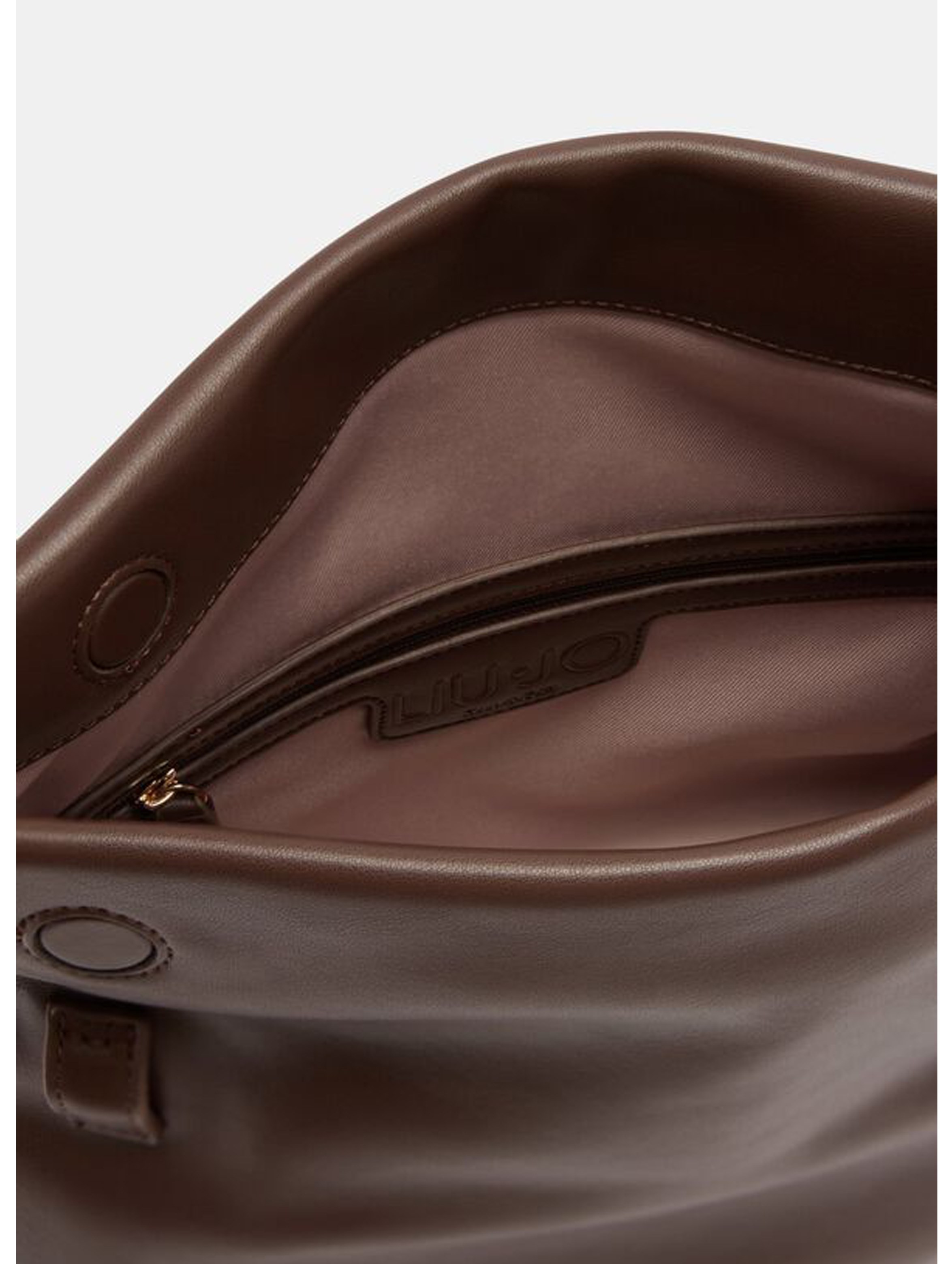 Borsa a spalla grandezza media, con comodo manico, borchie in metallo dorato sui lati, tasca interna con zip e logo in metallo sul davanti. Per un look trendy e fashion. LIU.JO