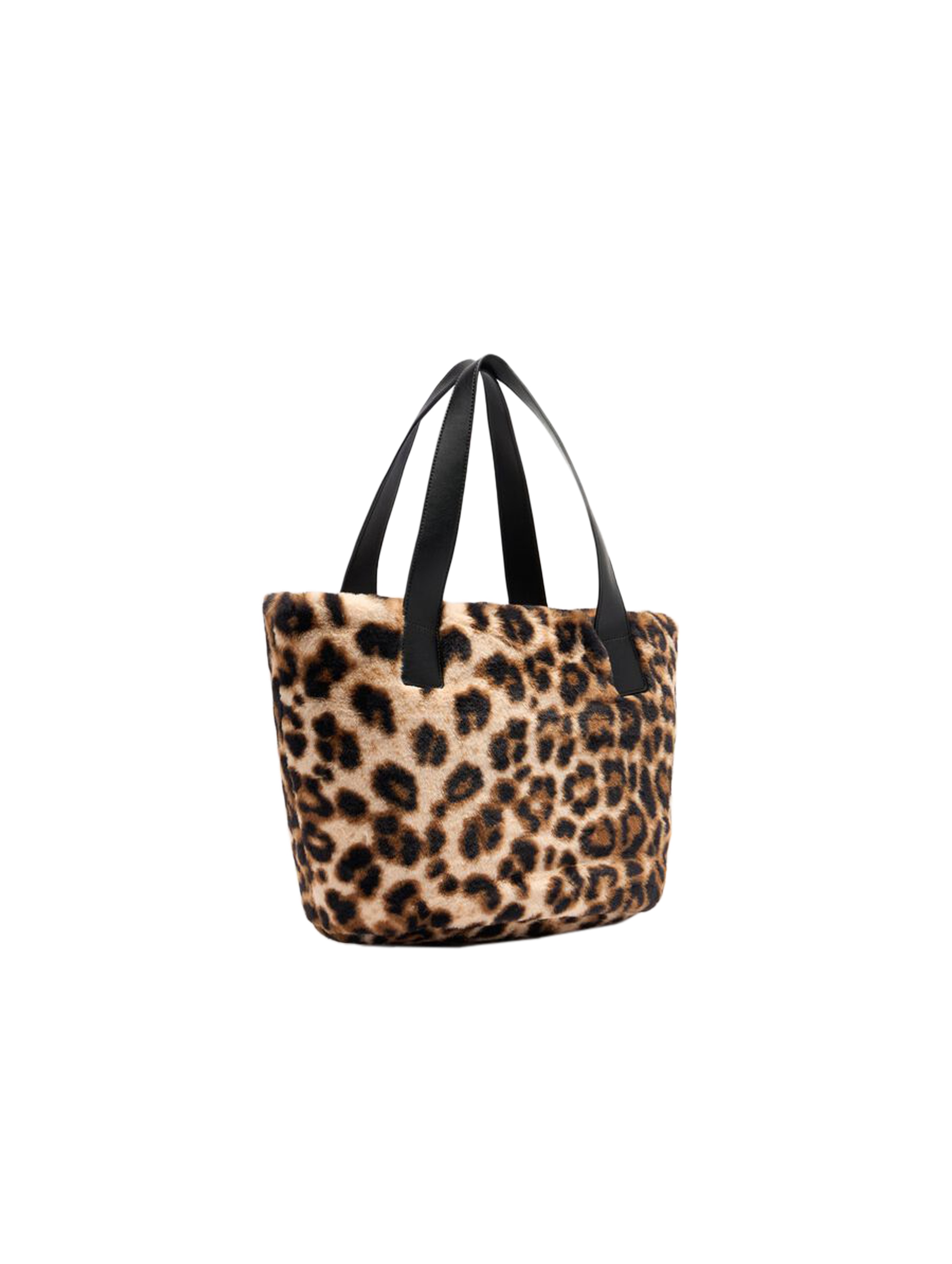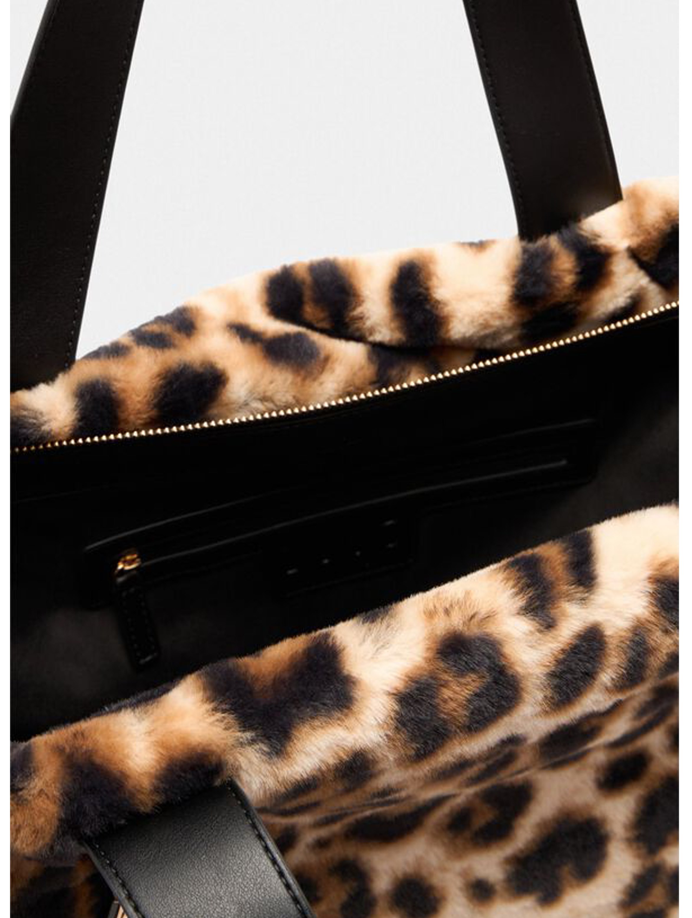 Borsa modello shopping in pelliccia sintetica, con fantasia animalier, con comodi manici, tasca interna con zip, etichetta interna logata, interno foderato, chiusura con zip e charm logato in metallo. Per un look trendy e cool. LIU.JO