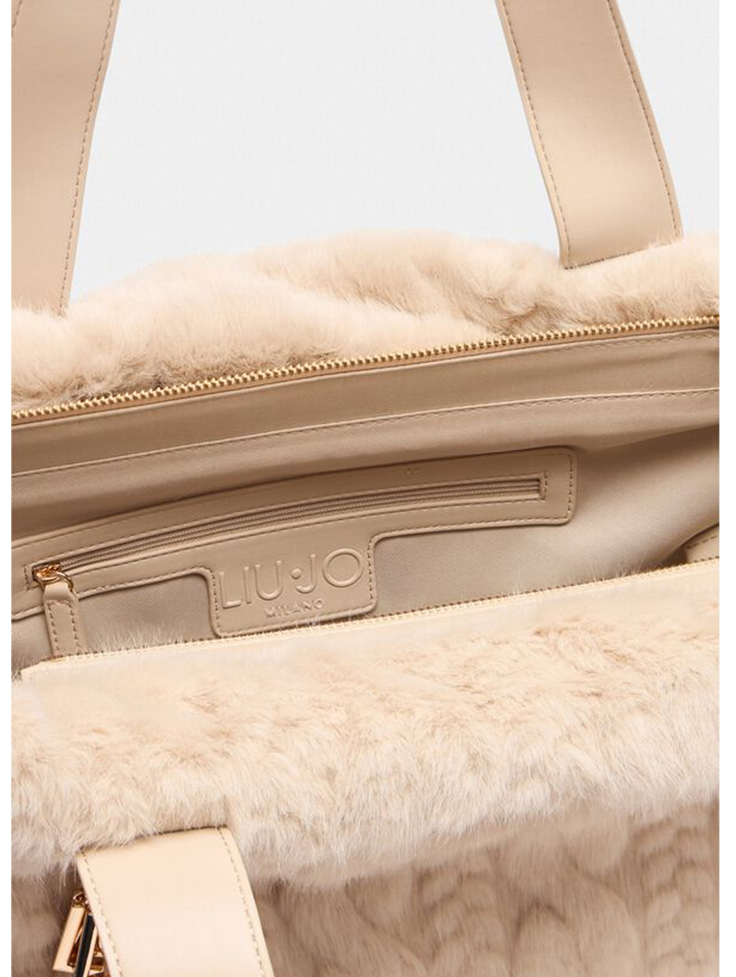 Borsa modello shopping in pelliccia sintetica, con comodi manici, tasca interna con zip, etichetta interna logata, interno foderato, chiusura con zip e charm logato in metallo. Per un look trendy e cool. LIU.JO
