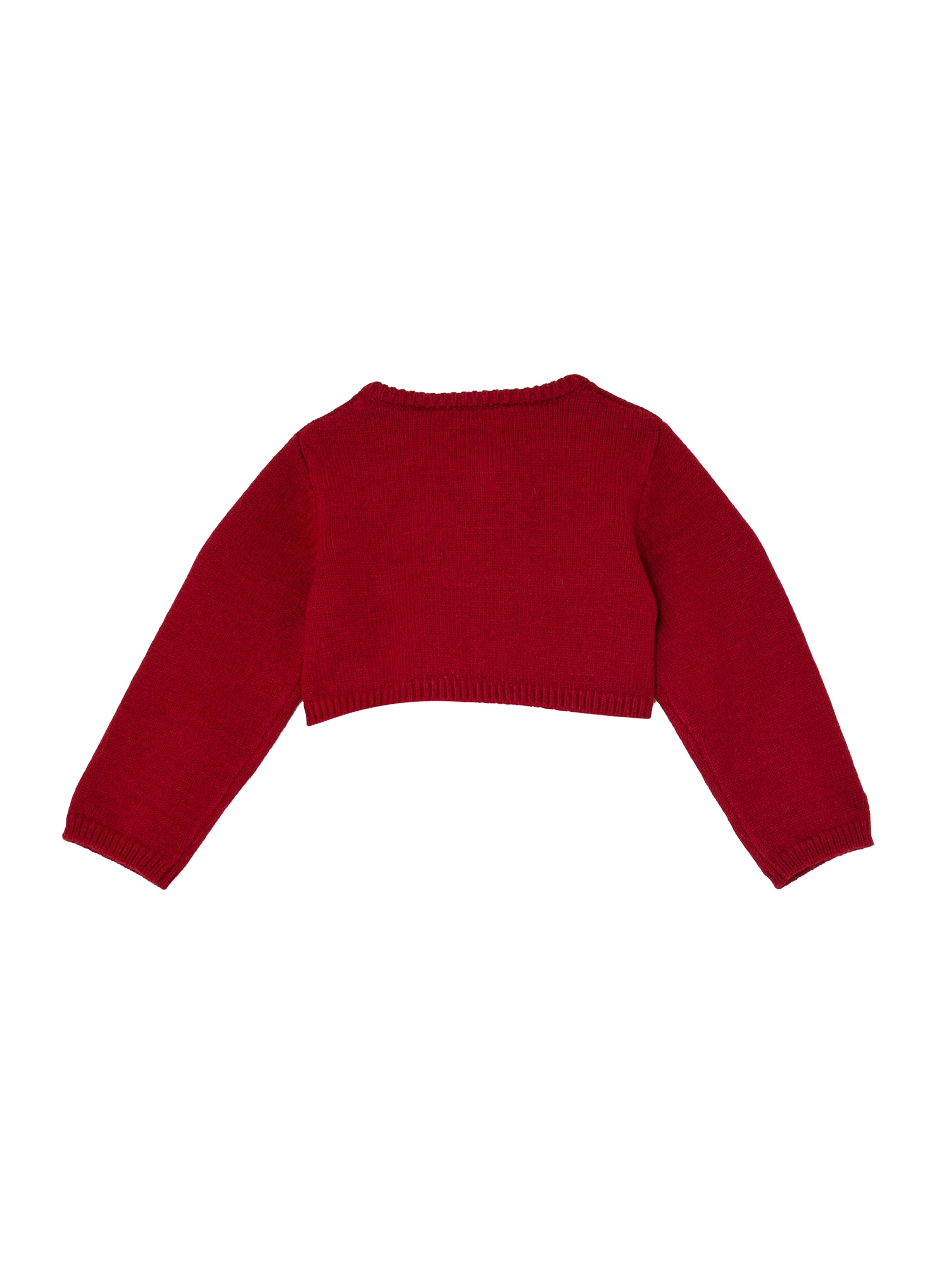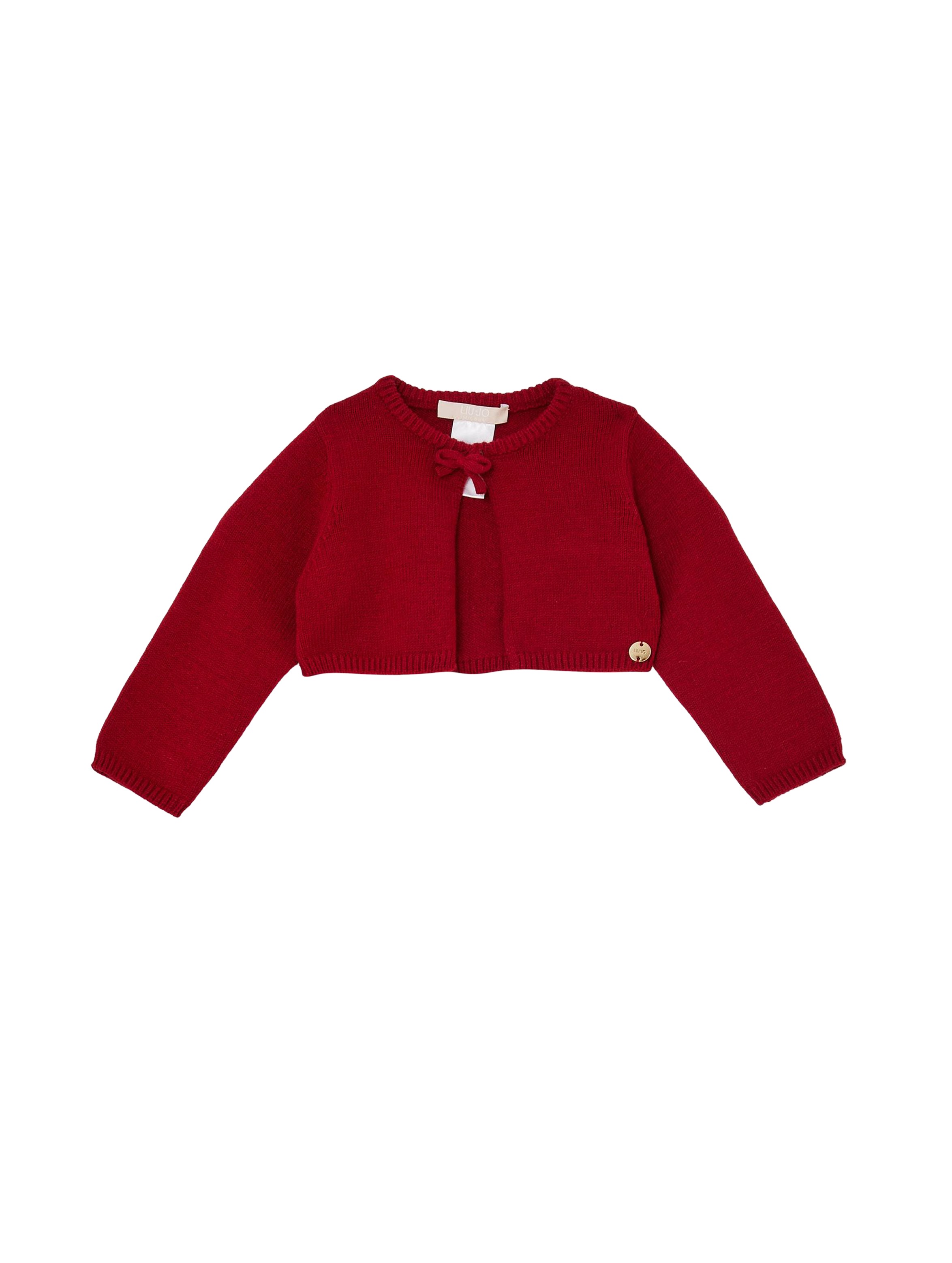 Cardigan in maglia tricot, con profili a costine, a maniche lunghe, a tinta unita, girocollo, con chiusura superiore con fiocchetto e medaglietta con logo metallica sul lato. Per un look raffinato e chic. LIU.JO