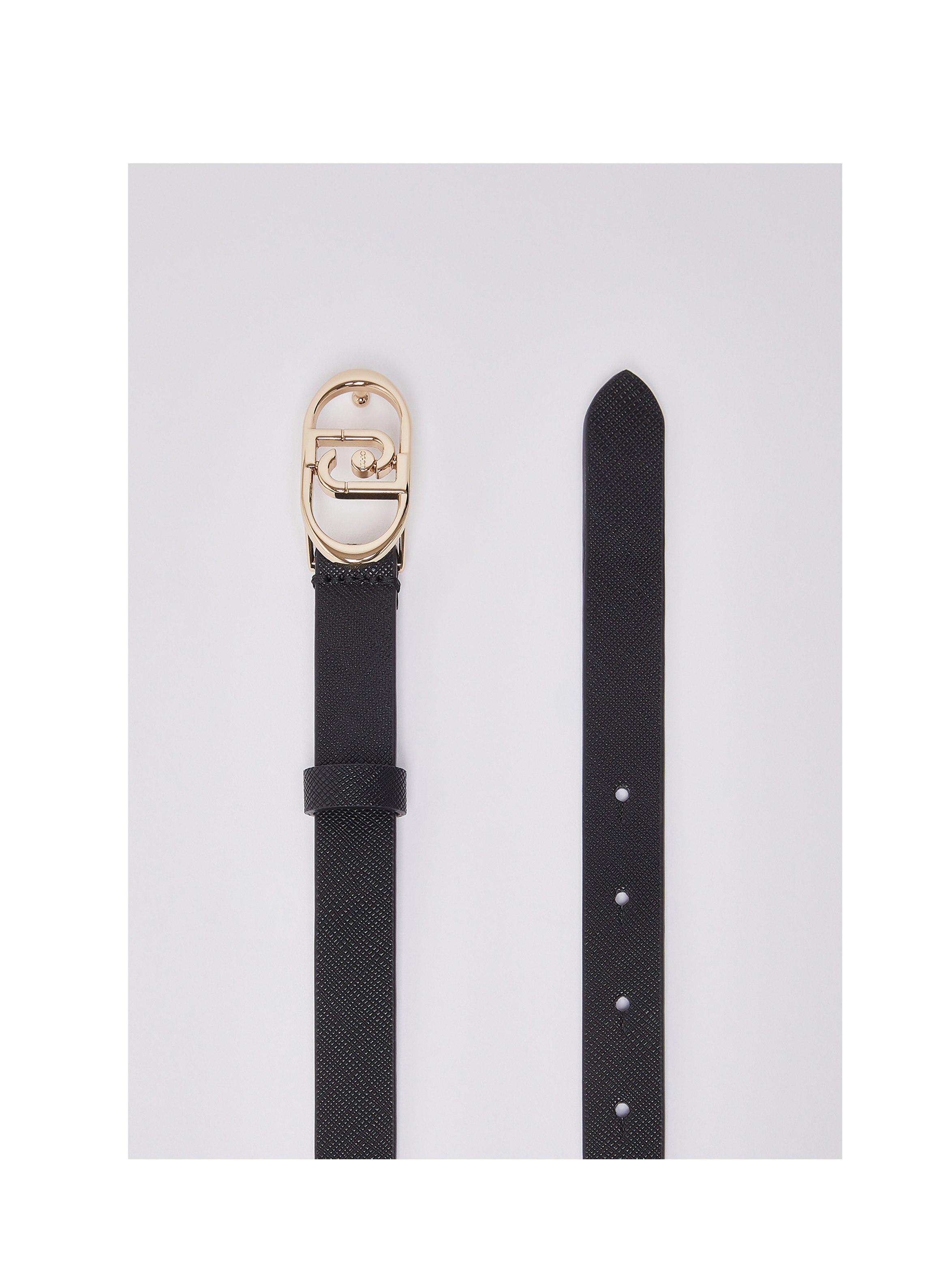 Cintura da donna sottile, da 2 cm di altezza, a tinta unita con stampa effetto saffiano e fibbia regolabile con logo monogram in metallo. Per un look fashion e chic. LIU.JO
