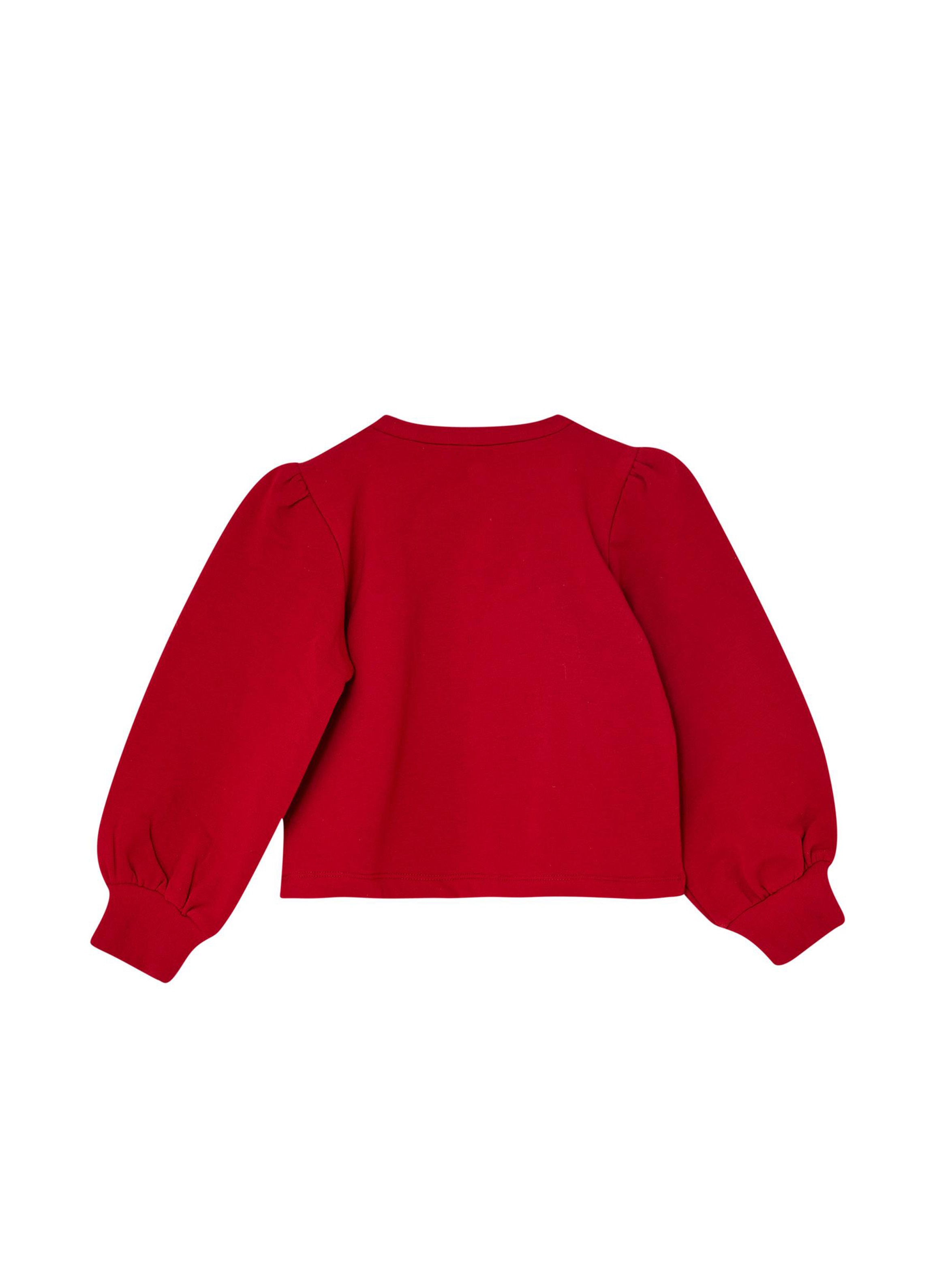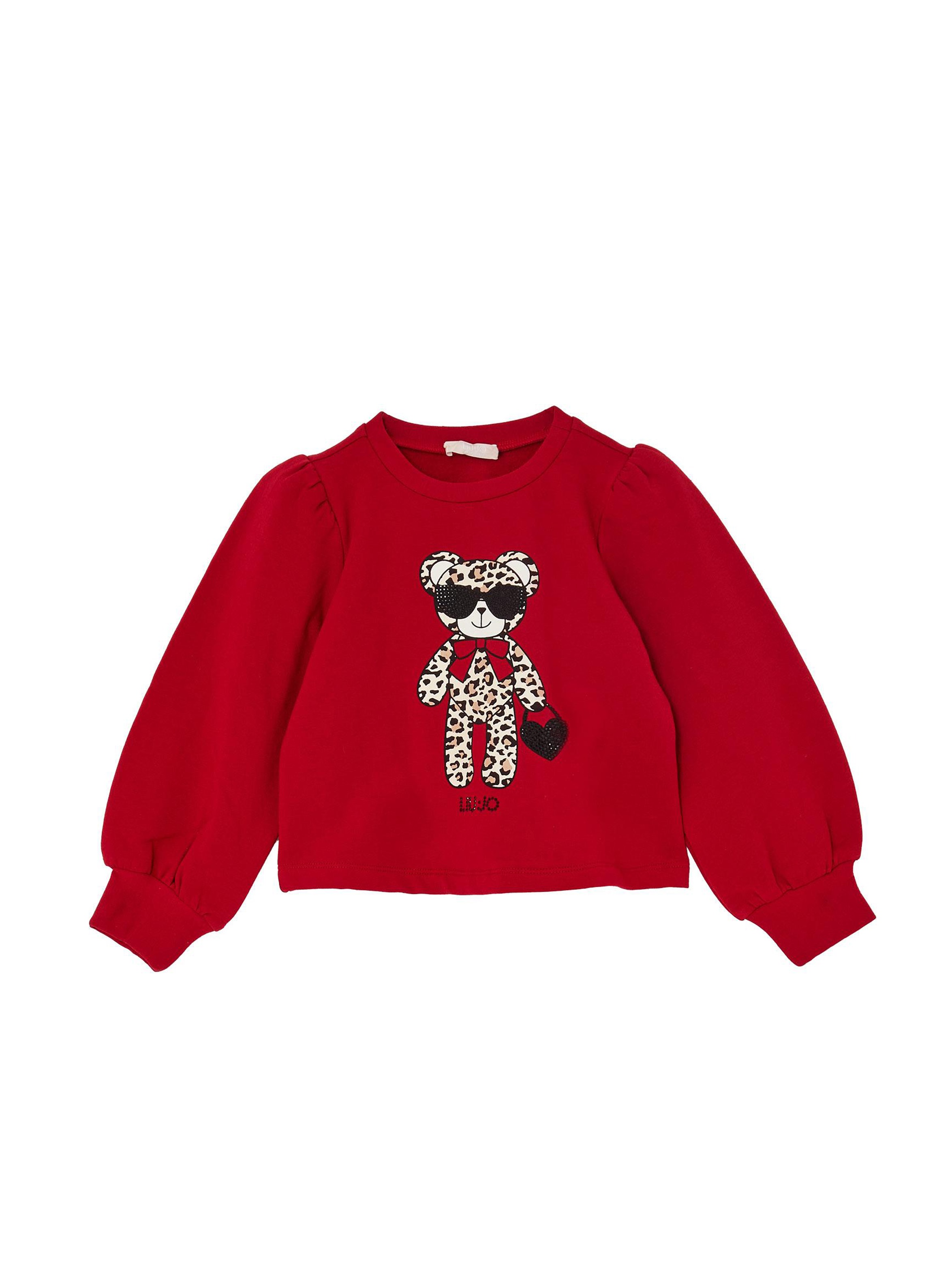 Felpa a maniche lunghe, a tinta unita, con scollo rotondo, realizzata in cotone stretch, con maniche leggermente a palloncino e stampa grafica con logo e strass sul davanti. Per un look trendy e chic. LIU.JO