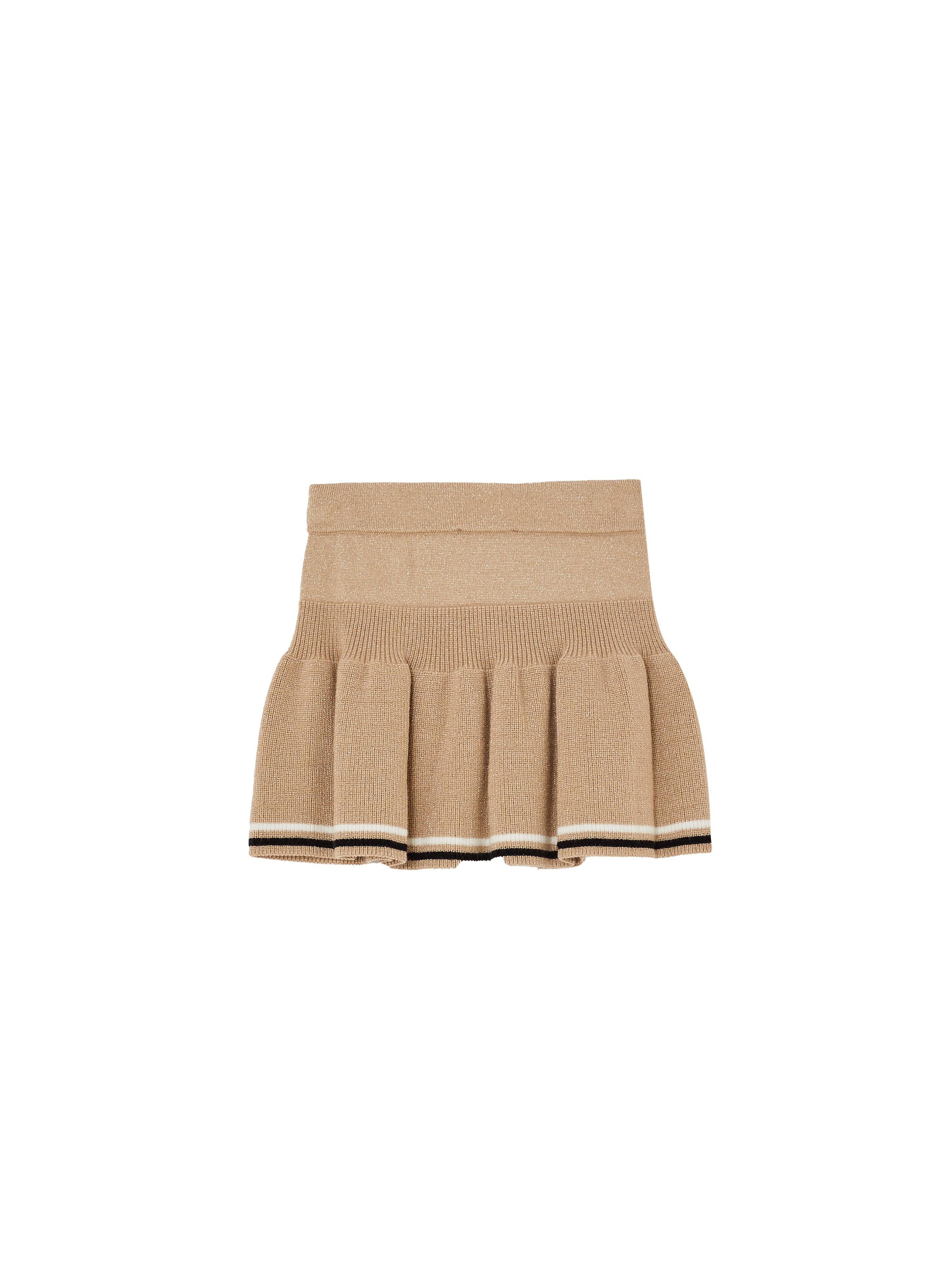 Gonna in maglia di misto viscosa e lurex, con motivo a pieghe, cintone elastico in vita, motivo a righe e logo in metallo in vita. Per un look trendy e fashion. LIU.JO