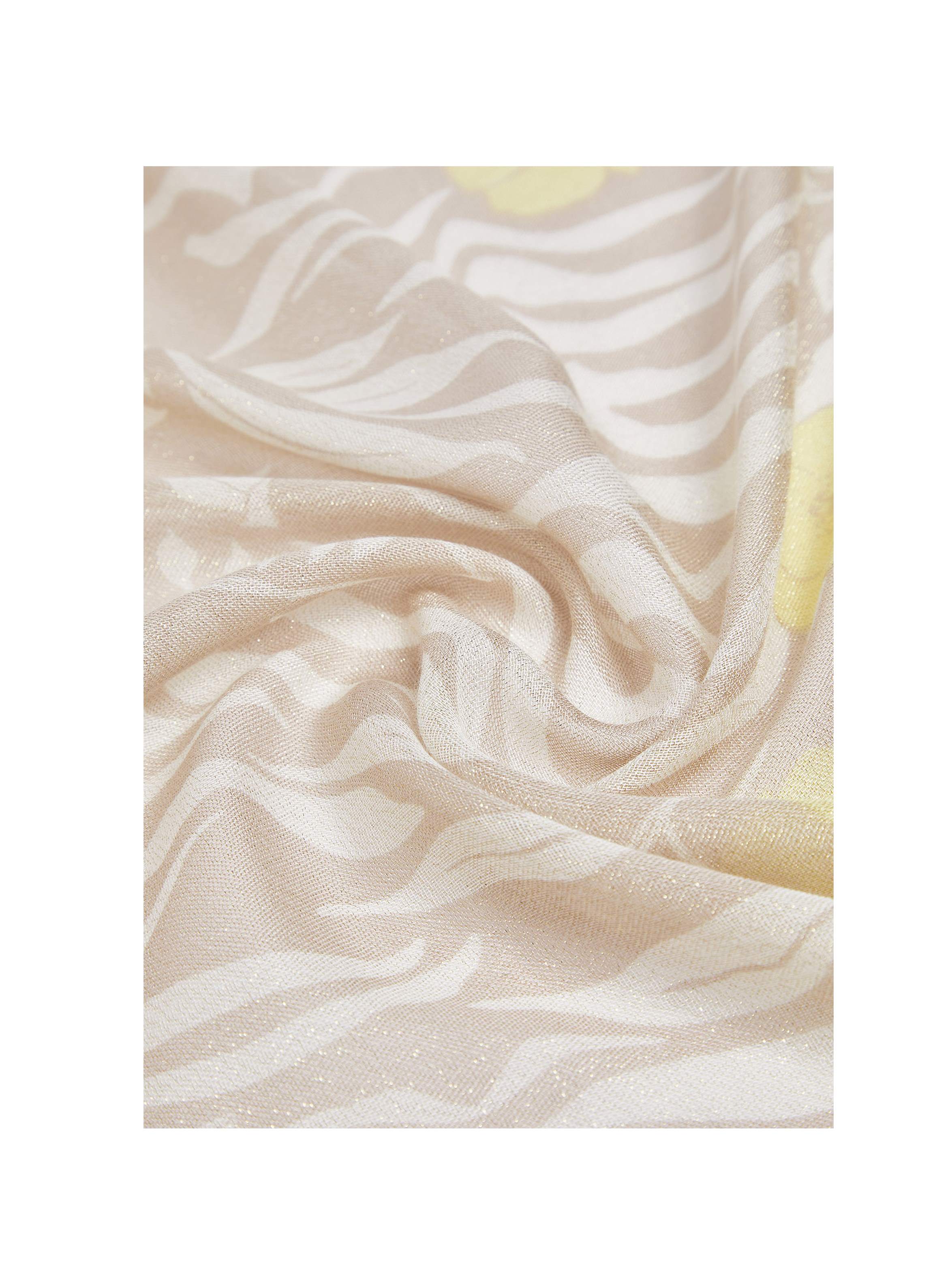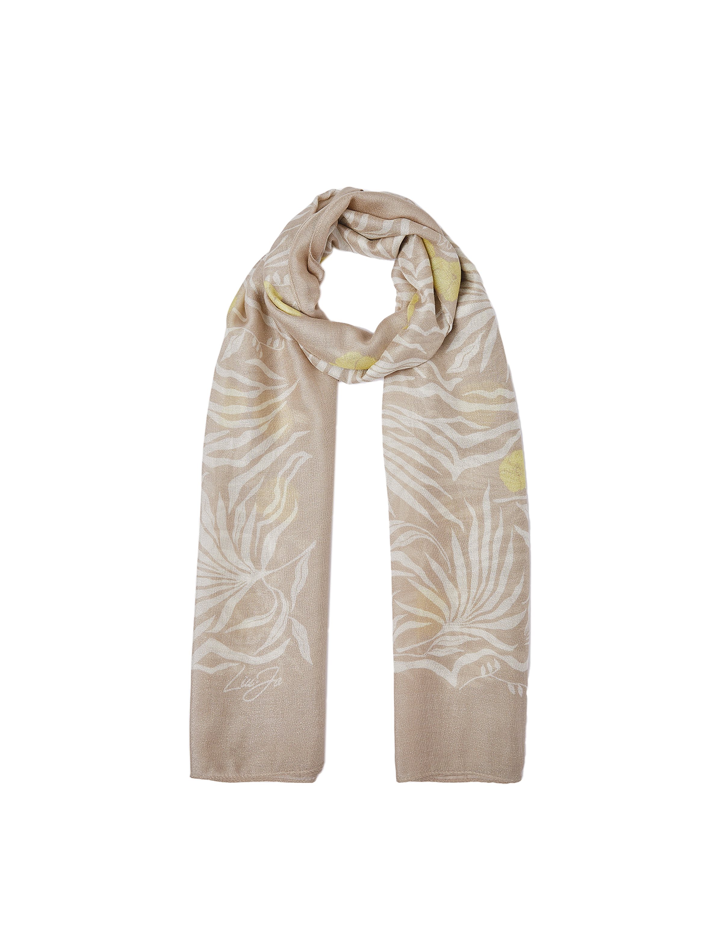 Stola rettangolare realizzata in filati di misto viscosa, con una particolare stampa zebrata con fiori. Per un look fashion e trendy. LIU.JO