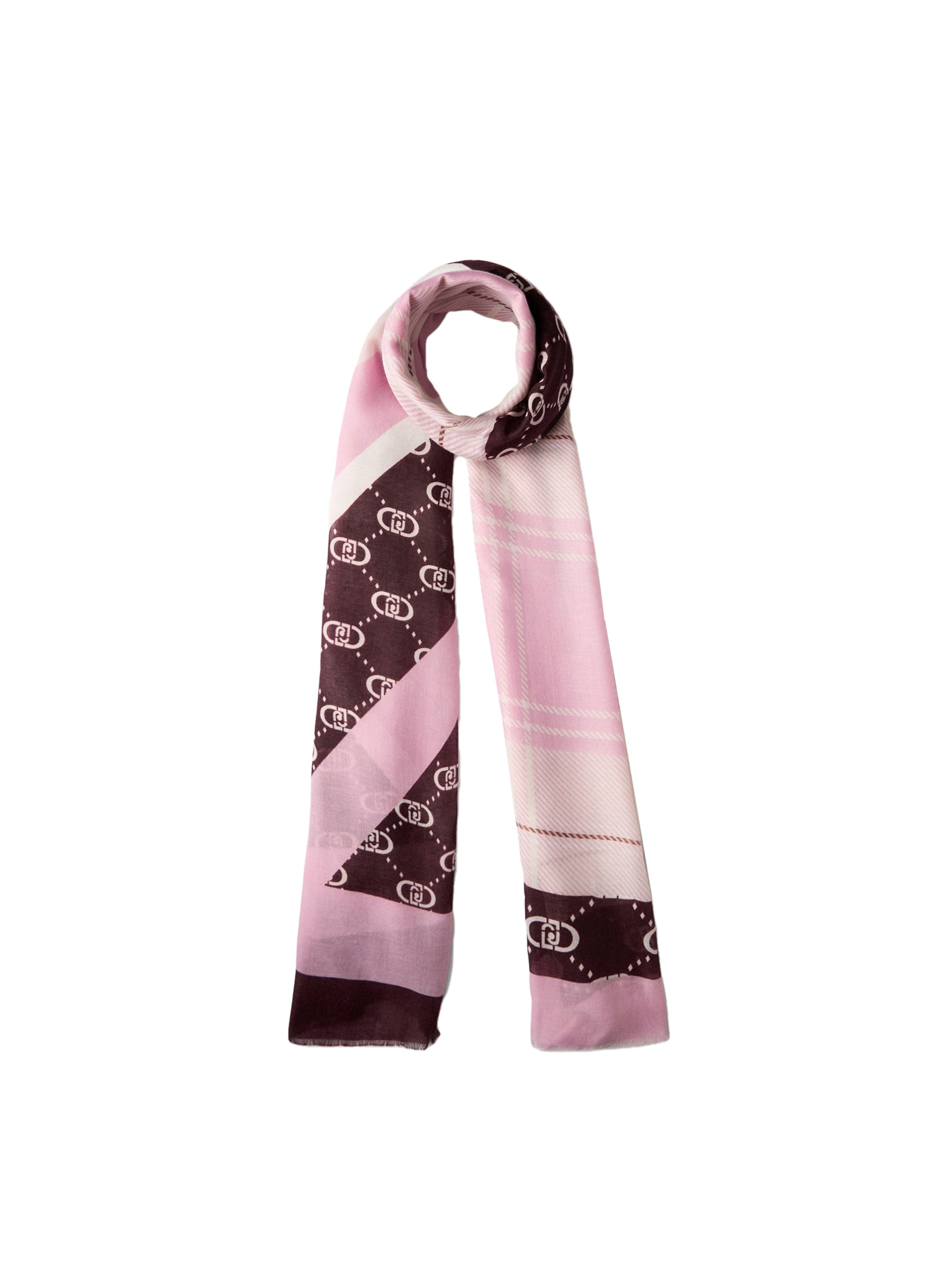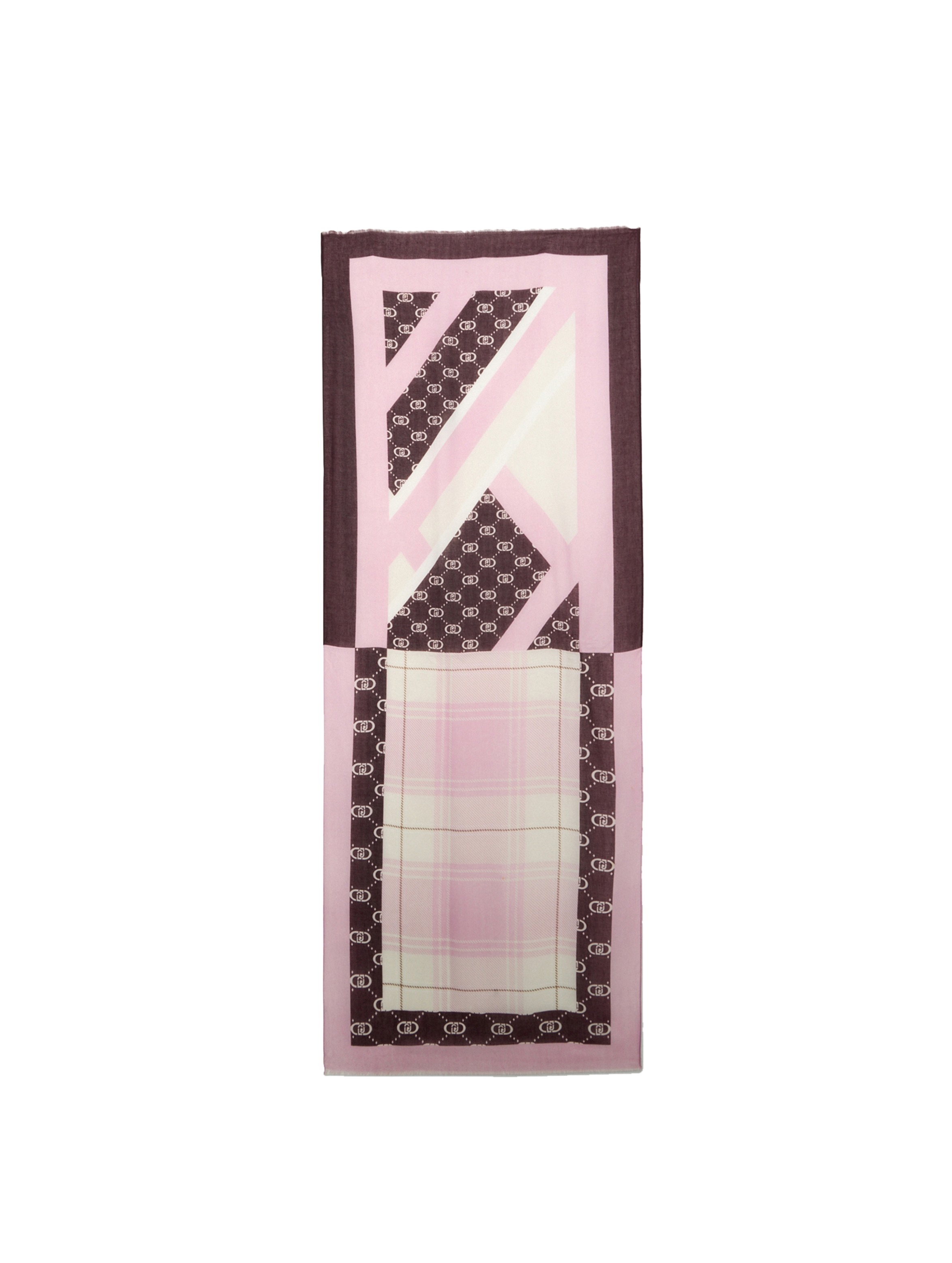Stola rettangolare 70x180, con bordi sfrangiati e stampa check con logo. L'articolo si presenta con pochette logata. Fashion e trendy. LIU.JO