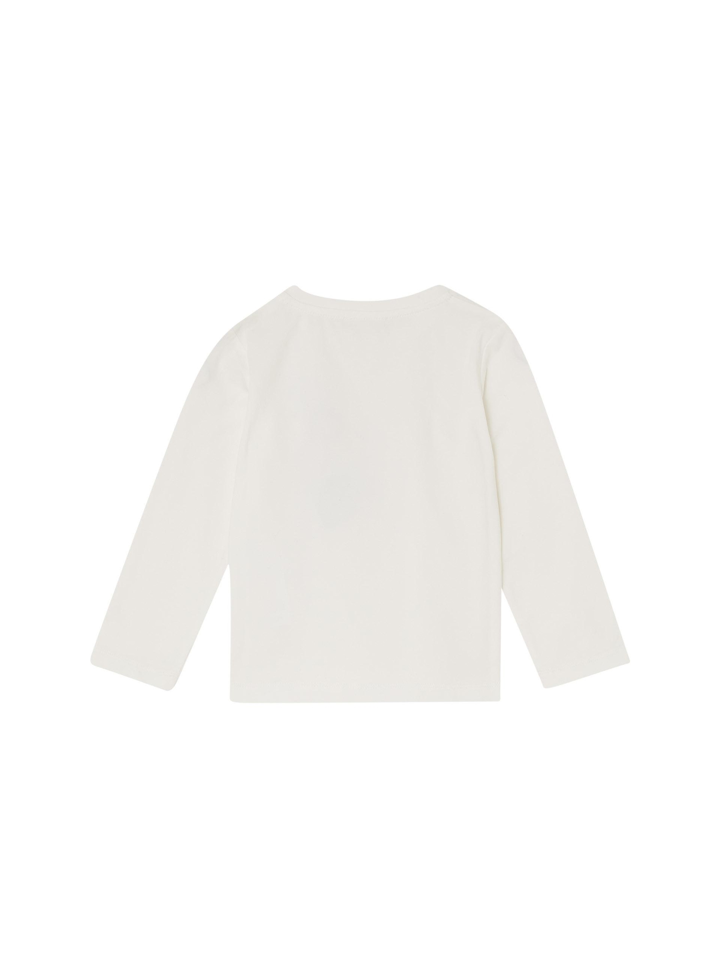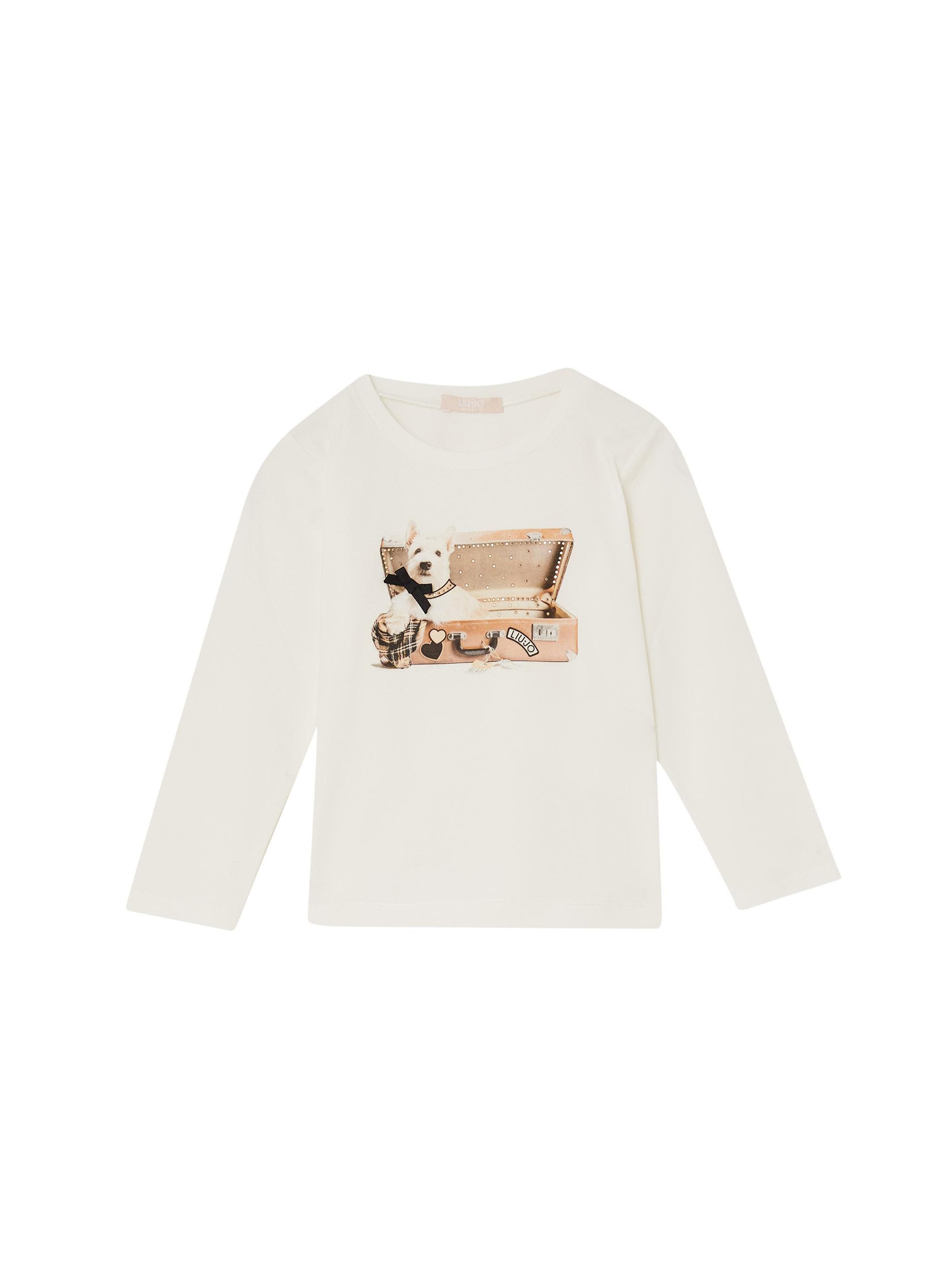 T-shirt in jersey di cotone stretch, a maniche lunghe, con scollo rotondo, a tinta unita, con stampa grafica con logo, strass e fiocchetto sul davanti. Per un look trendy e chic. LIU.JO