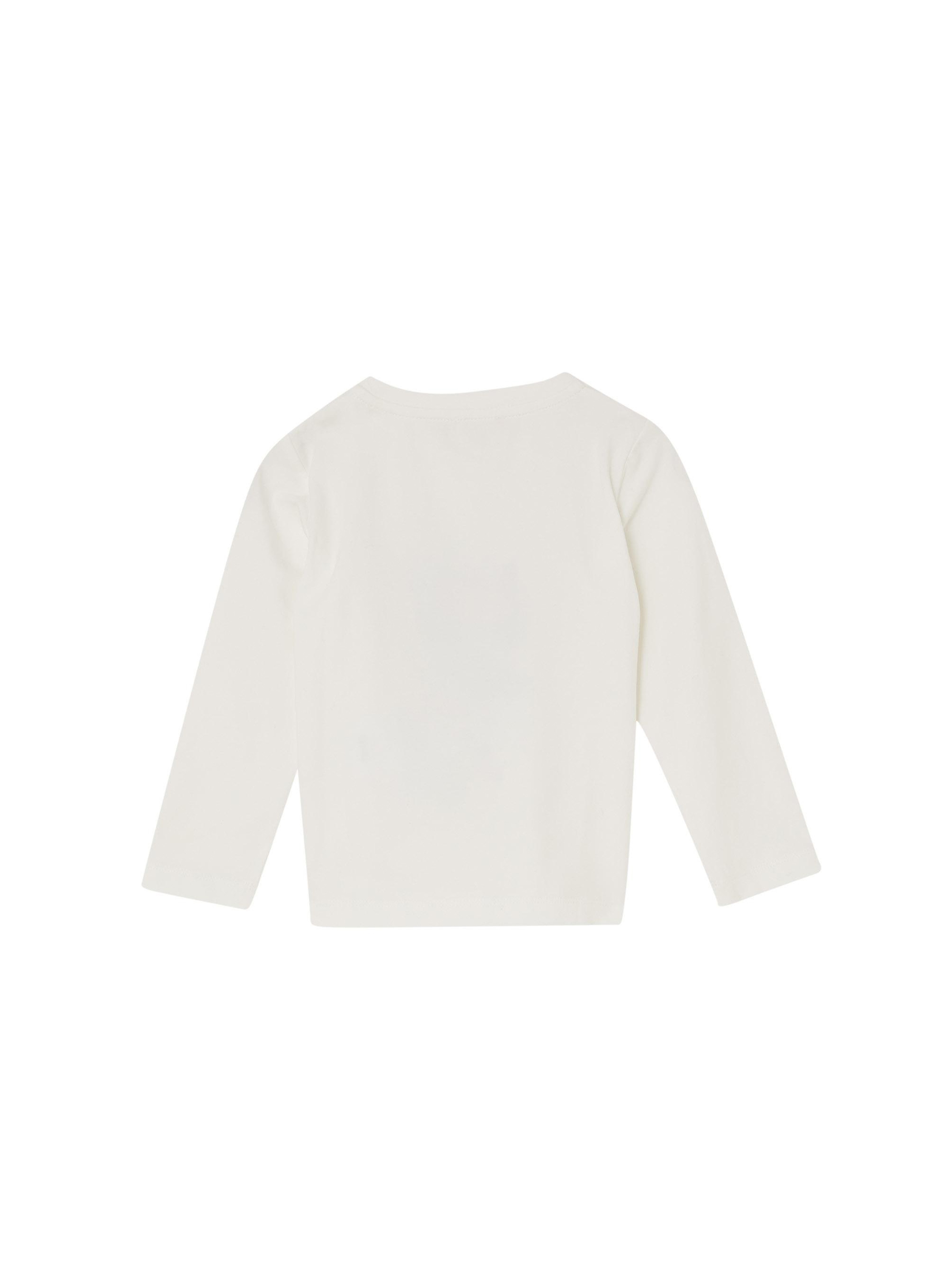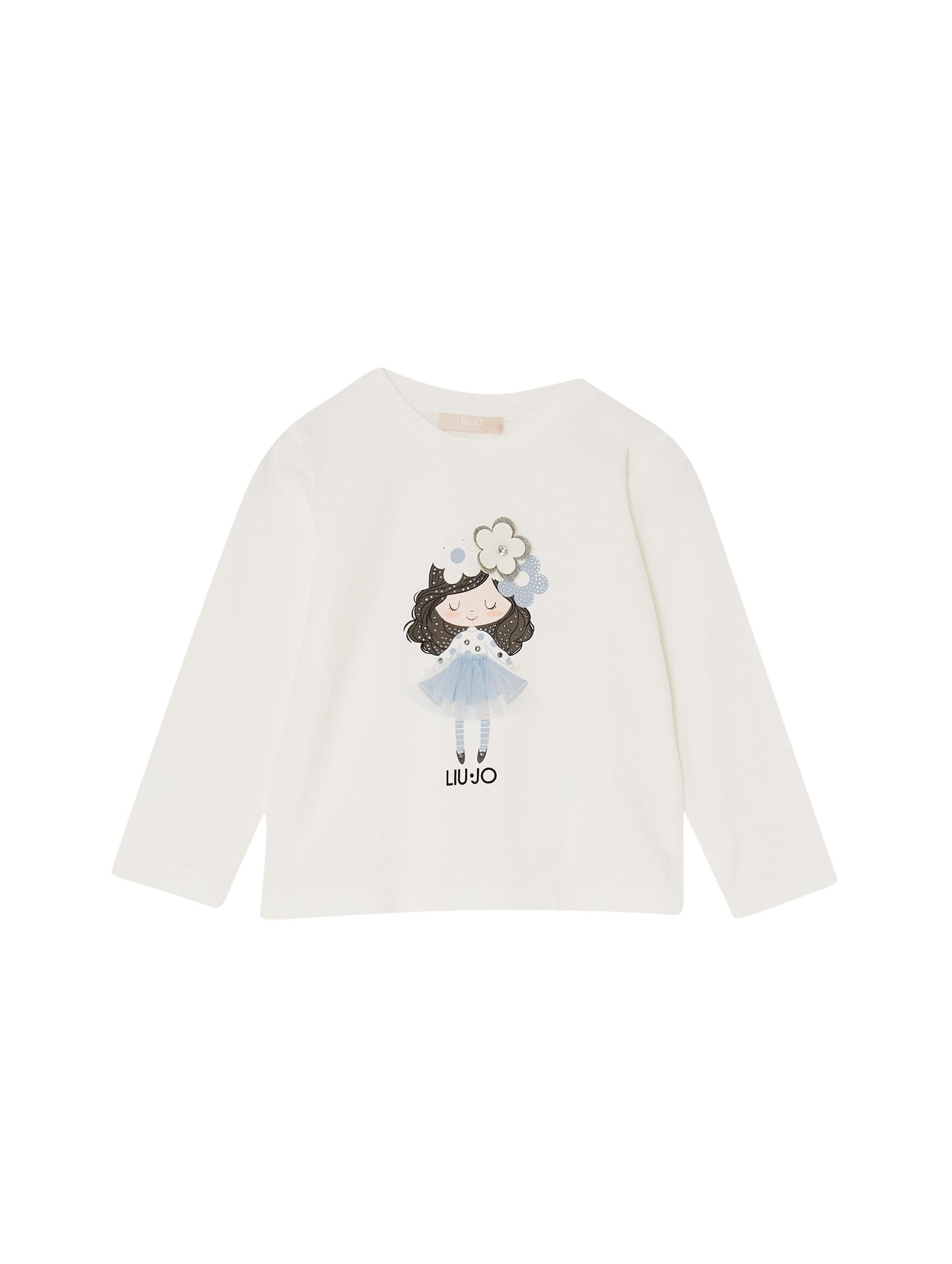 T-shirt in jersey di cotone stretch, a maniche lunghe, con collo rotondo, a tinta unita, con stampa grafica con strass e logo sul davanti. Per un look casual a chic. LIU.JO