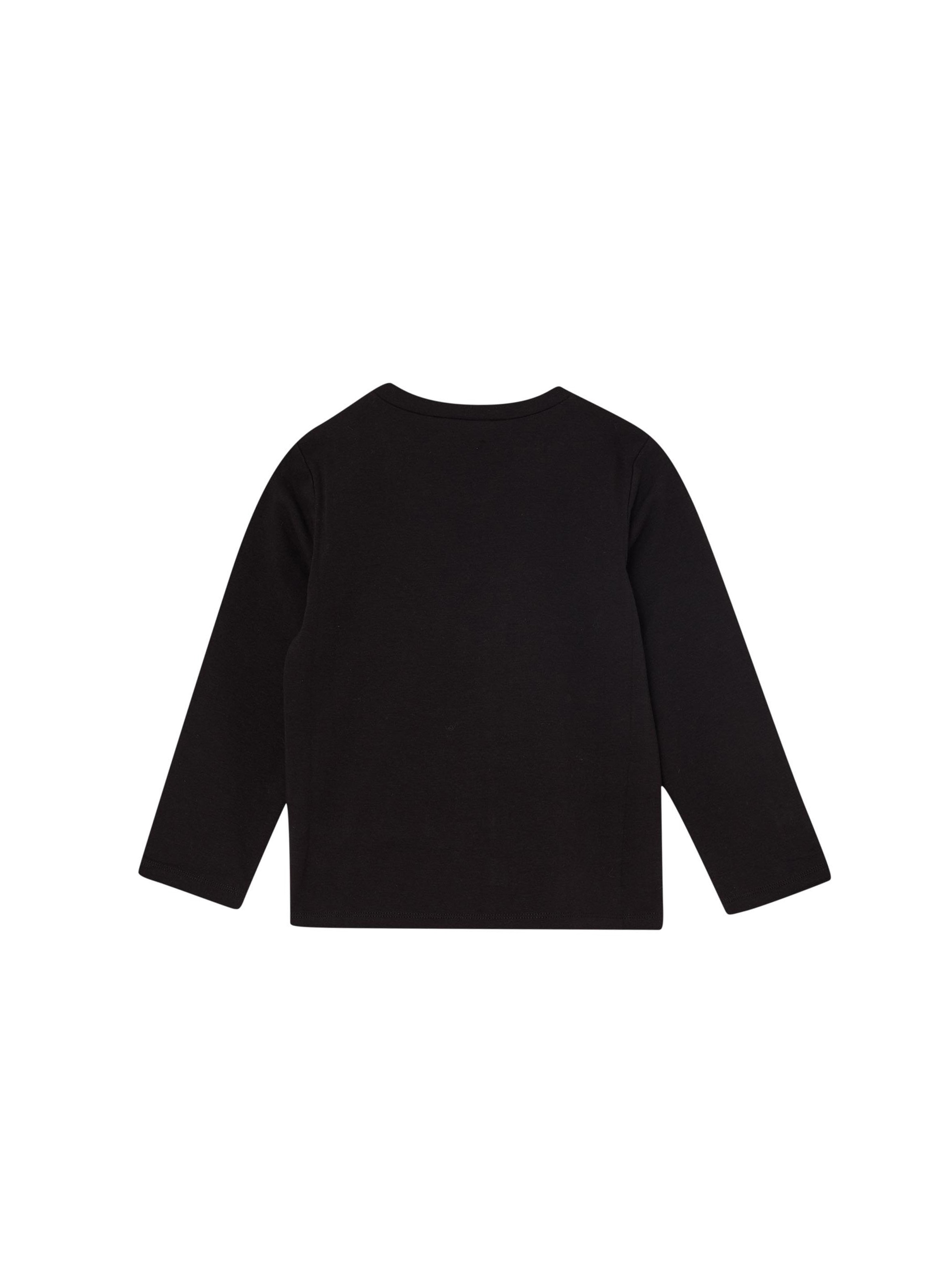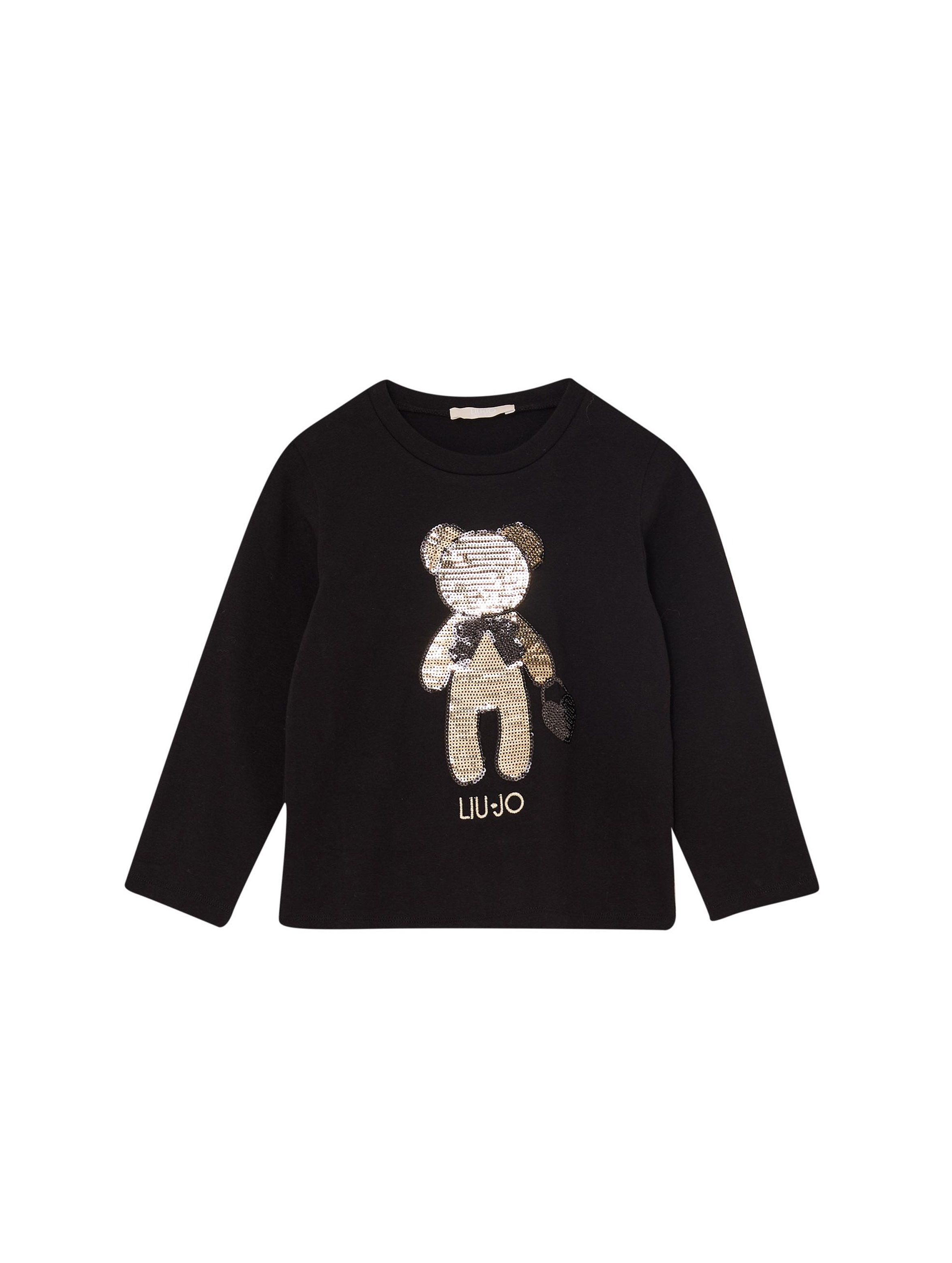 T-shirt in jersey di cotone stretch, a maniche lunghe, tinta unita, con scollo rotondo e motivo grafico con logo e paillettes sul davanti. Per un look trendy e scintillante. LIU.JO