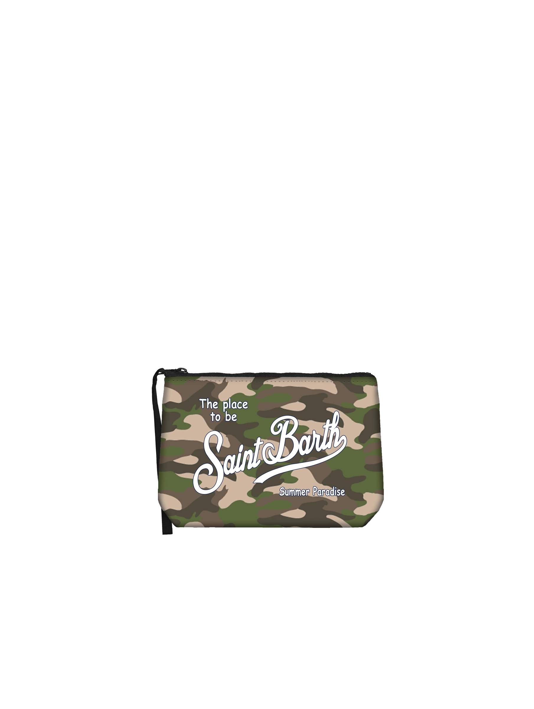 Pochette realizzata in tessuto Scuba, con un'audace stampa camouflage che dona un tocco di grinta, con chiusura con zip, manicotto laterale in gros grain e maxi logo stampato a contrasto. Versatile e dal design contemporaneo MC2 SAINT BARTH