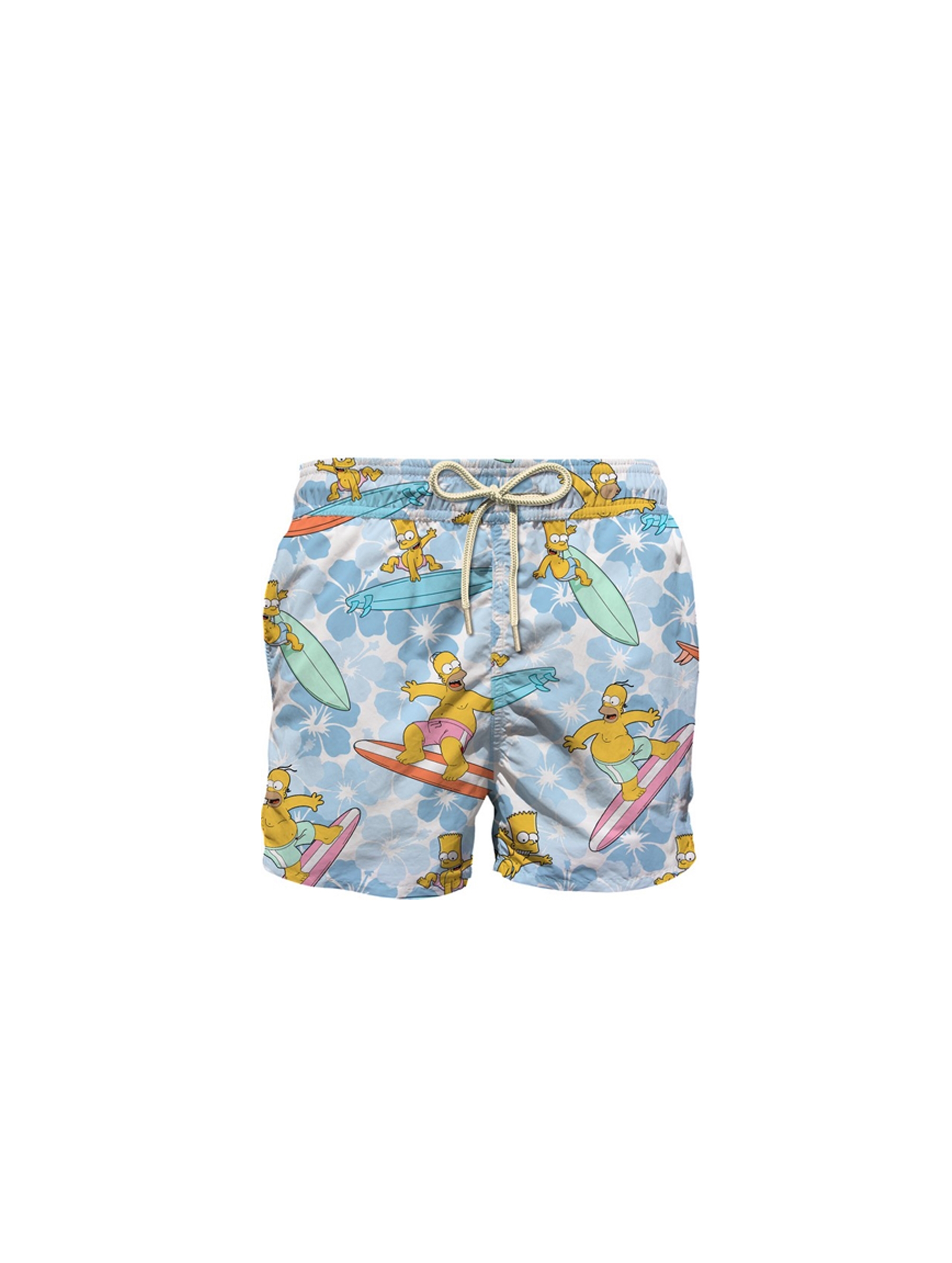 Costume da bambino modello shorts, realizzato in tessuto leggero e traspirante, con vita elasticizzata con coulisse regolabile che garantisce una vestibilità confortevole, tasche laterali e particolare stampa dei simpatici Simpson. Per un look trendy e fashion. MC2 SAINT BARTH