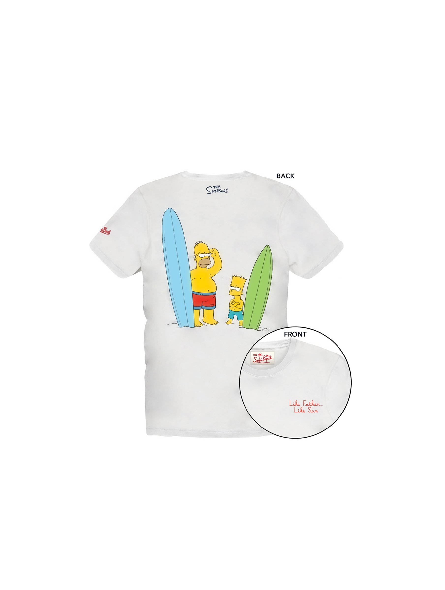T-shirt in cotone a maniche corte, dalla vestibilità regular, con scollo rotondo, a tinta unita, logo lettering a contrasto sulla manica sinistra, piccola decorazione lettering sul petto e maxi stampa grafica di Homer e Bart Simpson con tavola da surf sul retro. Per un look casual e trendy. MC2 SAINT BARTH