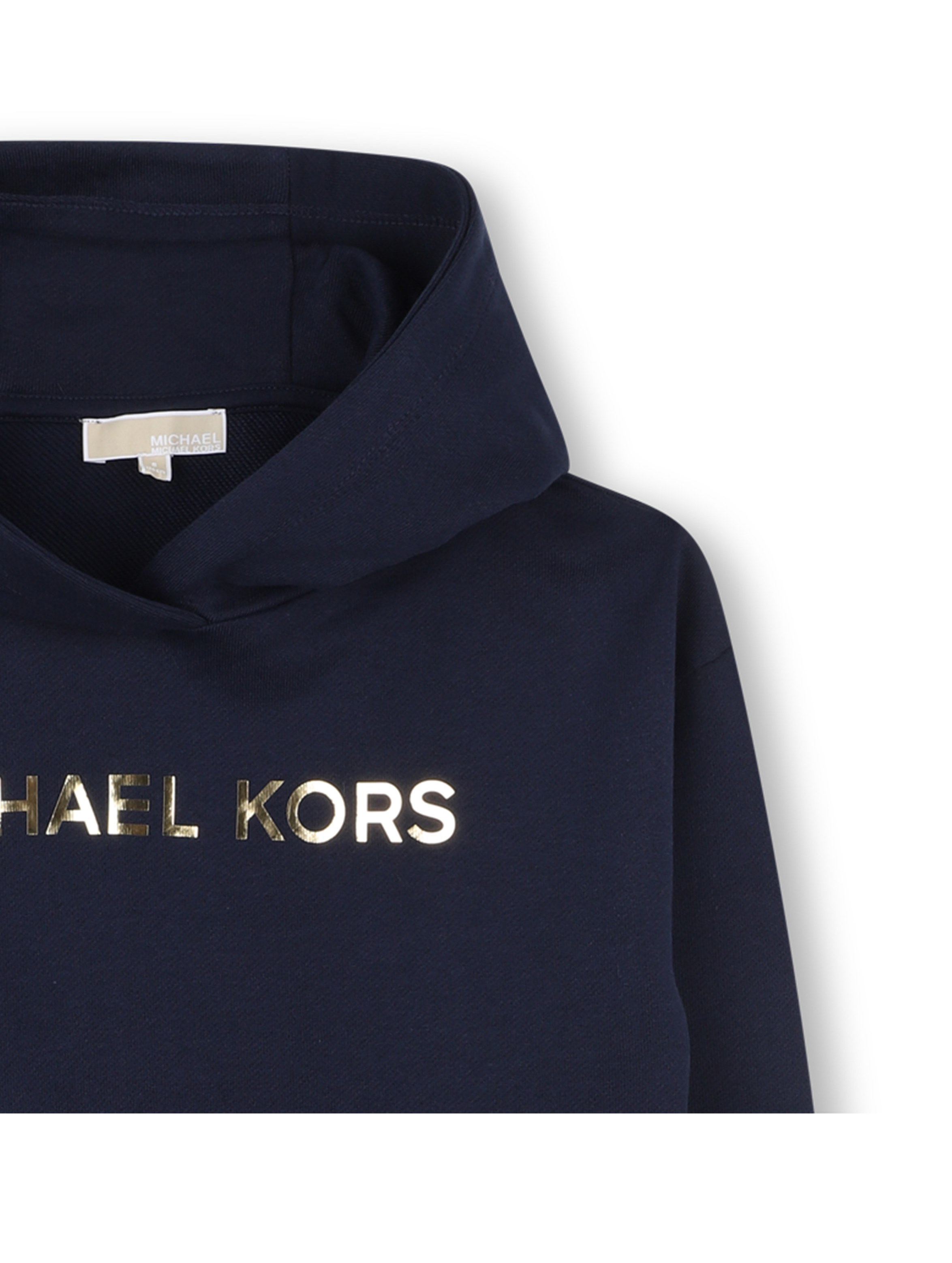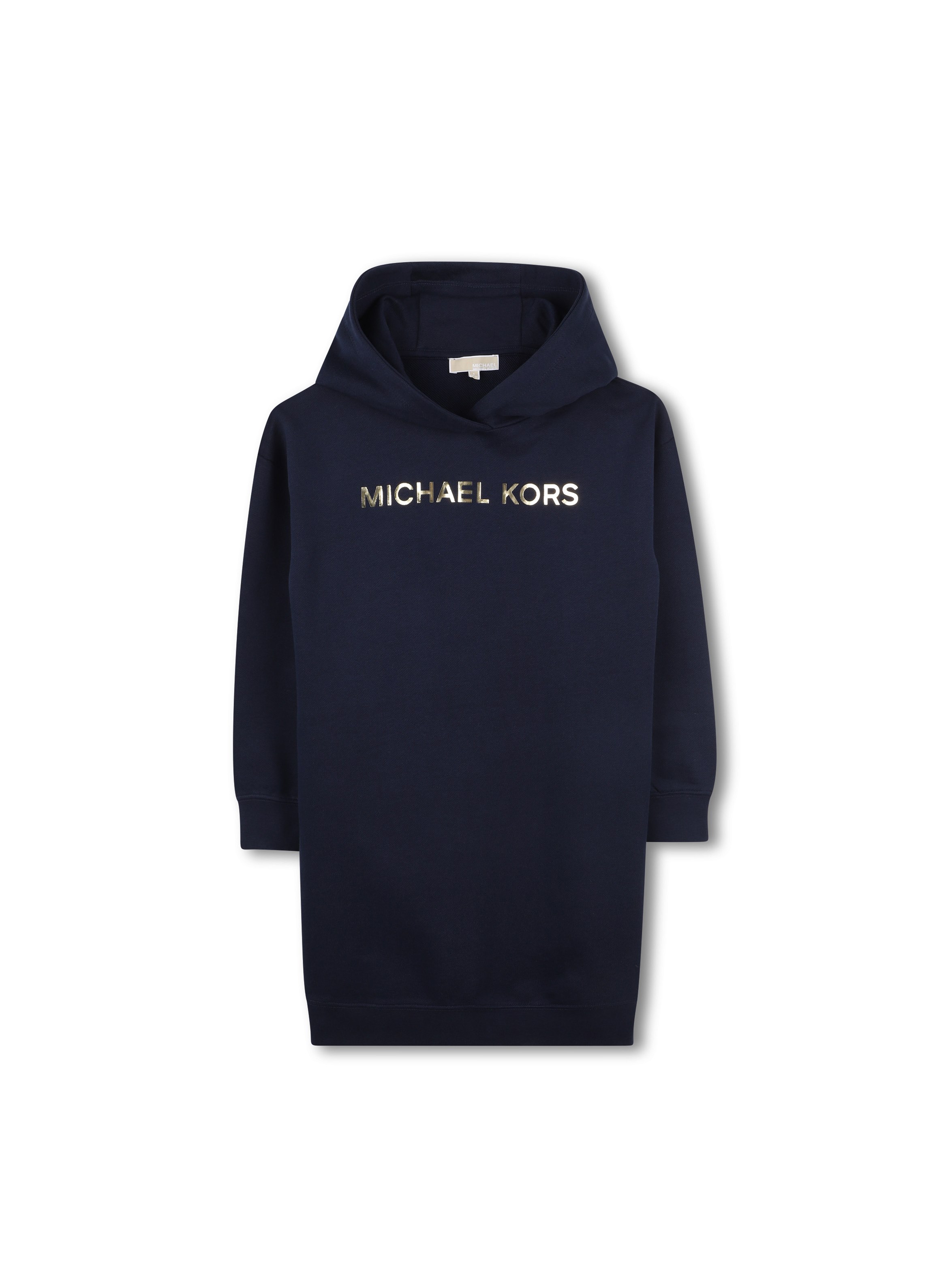 Abito in felpa a maniche lunghe, con cappuccio, a tinta unita, con bordo e polsini a costine, dal design comodo e dritto, con maxi logo lettering in laminato gold sul fronte. Per un look casual e chic. MICHAEL KORS