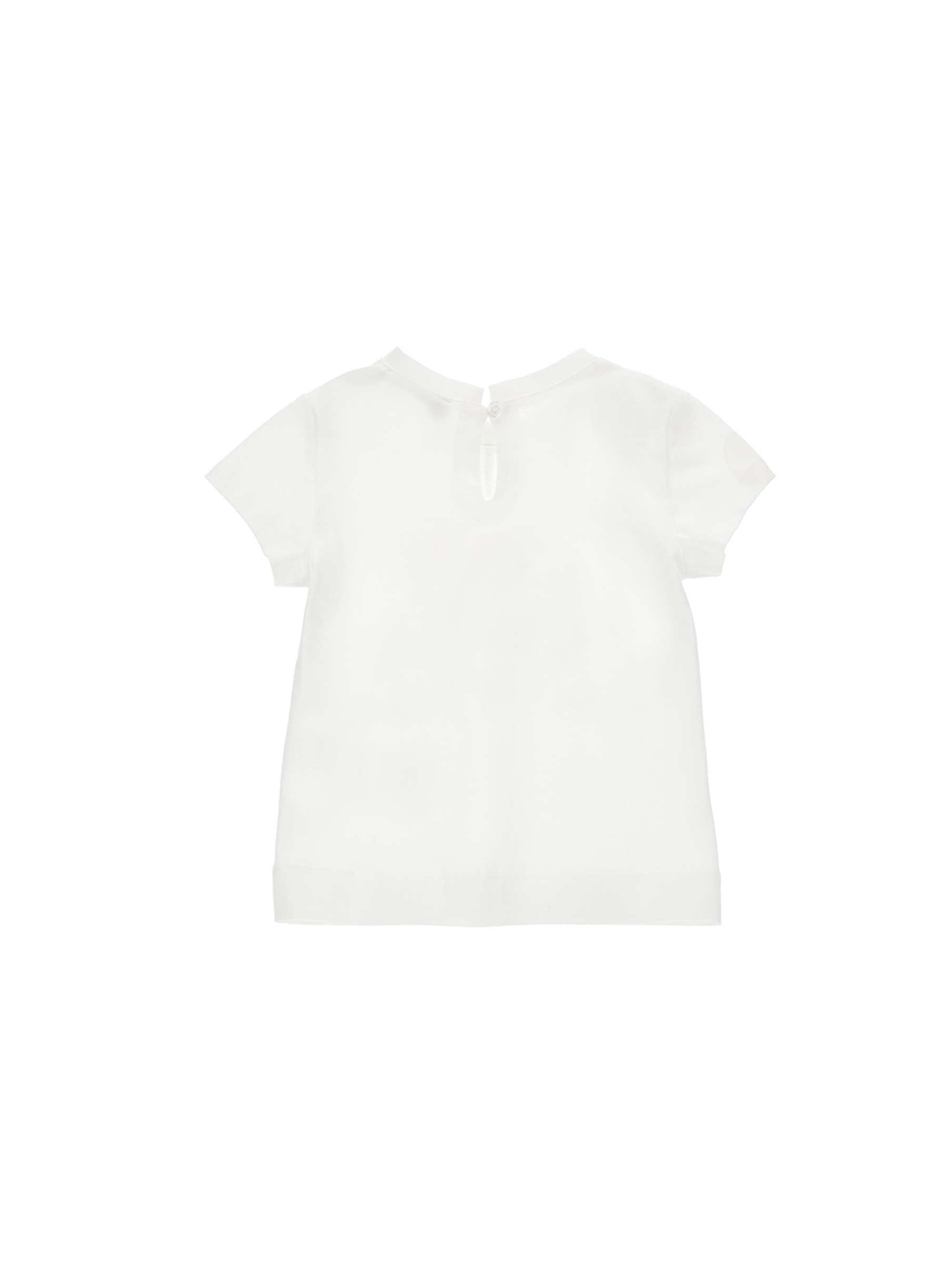 T-shirt a maniche corte, in morbido e confortevole jersey di cotone, con adorabile stampa di coniglio con fiocco e farfalle sulla parte centrale e apertura posteriore con bottone per indossarla facilmente. Per look casual chic. MONNALISA