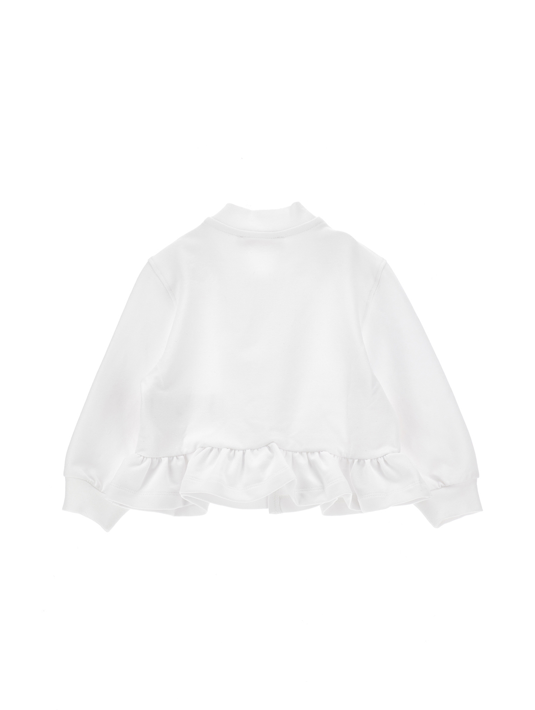 Felpa a maniche lunghe, a tinta unita, con zip frontale facile da indossare, cursore logato, stampa ai lati di fragole, logo a contrasto sul petto, colletto leggermente rialzato per protezione aggiuntiva dai venti freschi e dettaglio voltants sul fondo per un tocco romantico. Ideale per look casual chic. MONNALISA