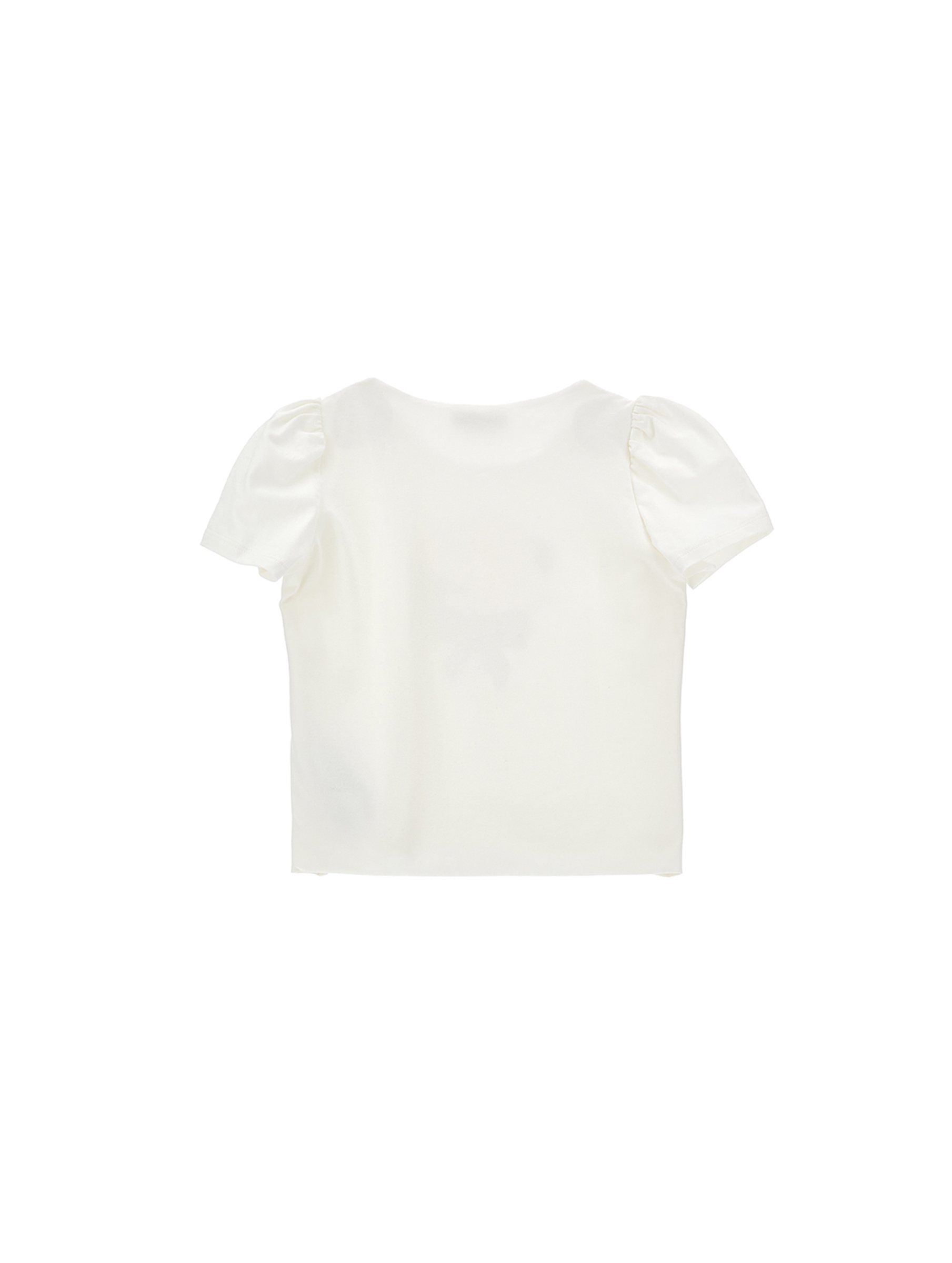 T-shirt a maniche corte in jersey di cotone, morbido e confortevole, a tinta unita, scollo rotondo, con stampa mazzolino di fiori nel centro davanti, maniche dal taglio elegante e dettagli in strass. Perfetta per look casual chic. MONNALISA