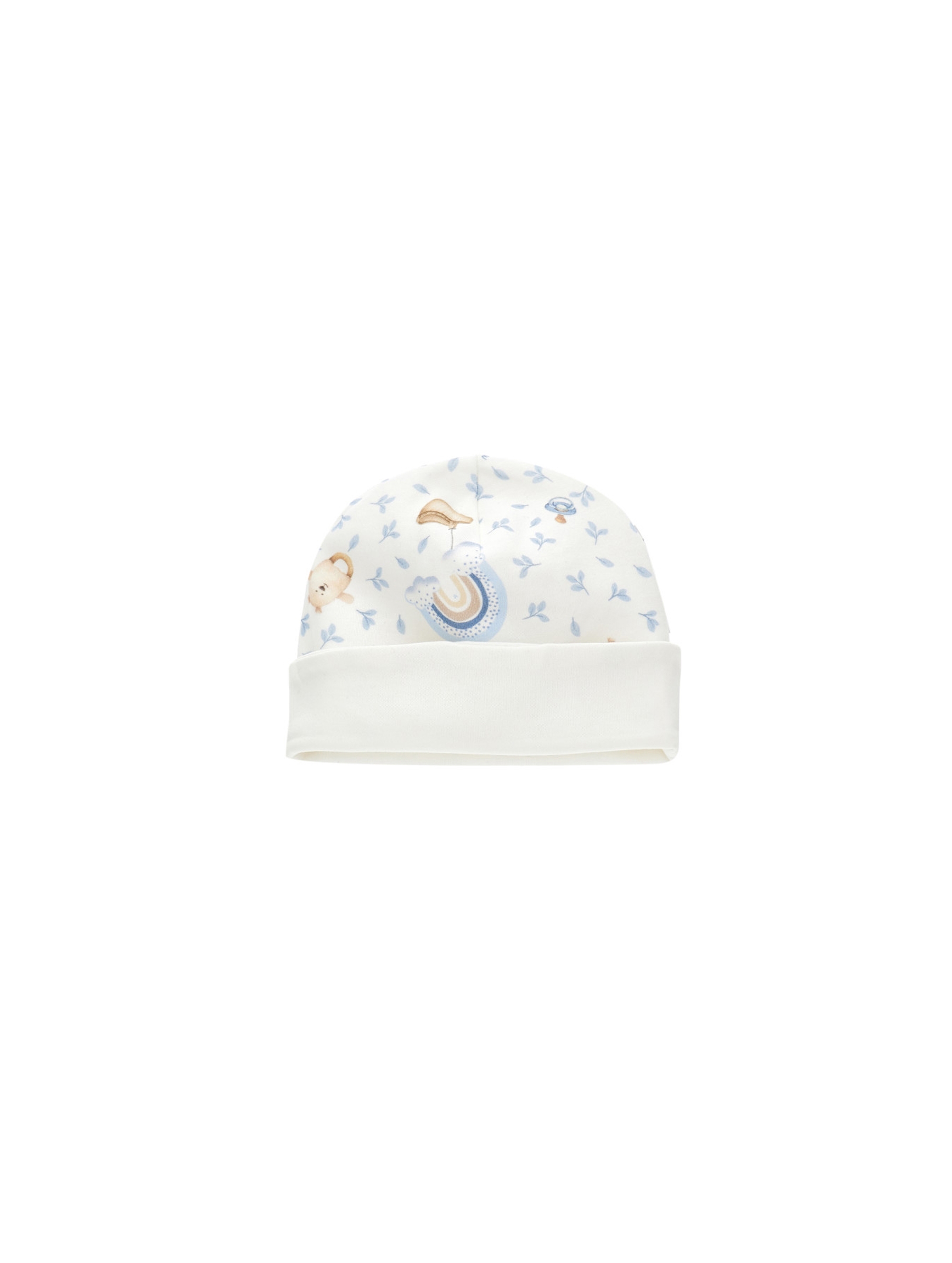 Cappello neonato, in cotone, con risvoltino, simpatica stampa e scritta logo. MONNALISA