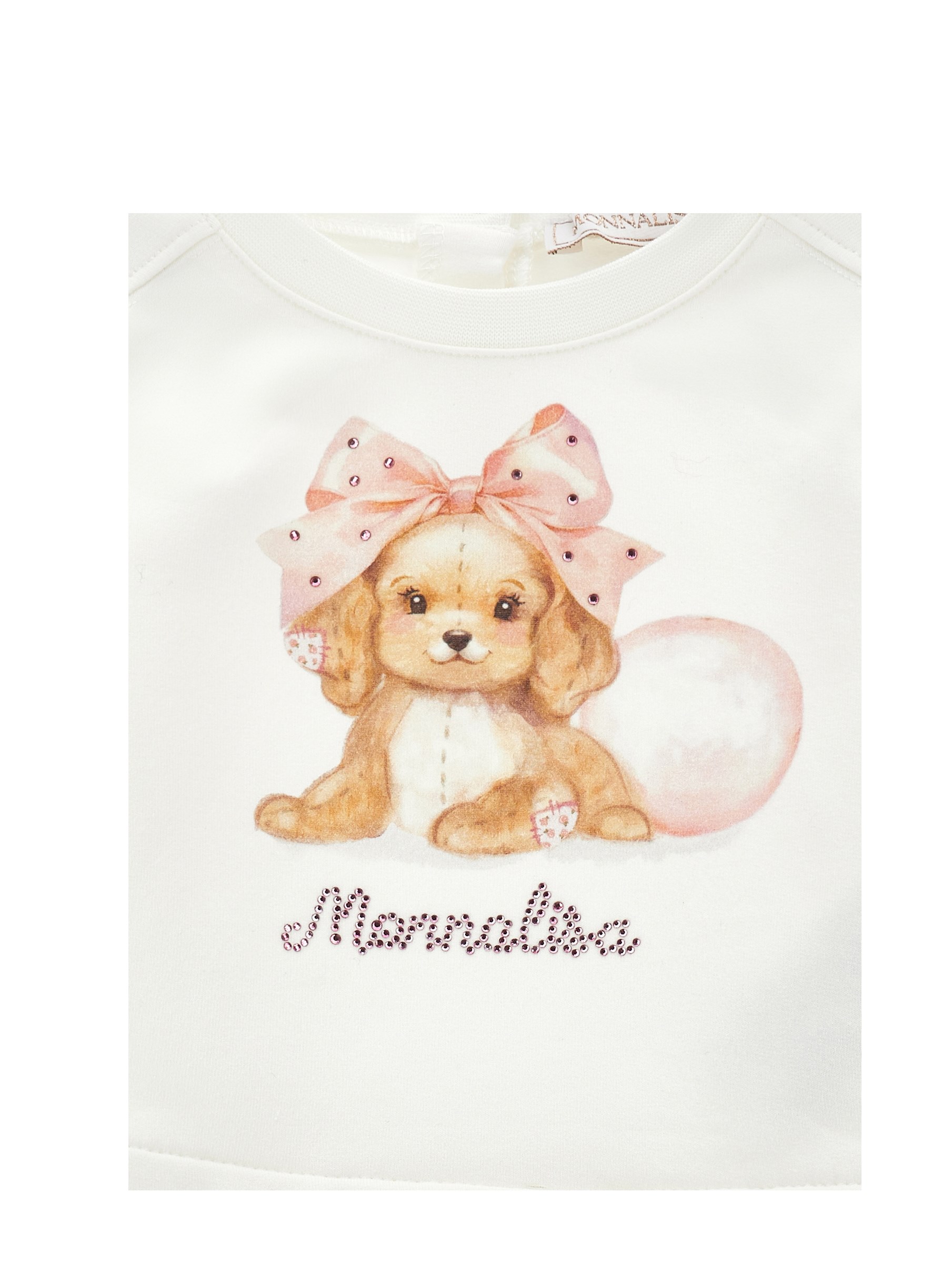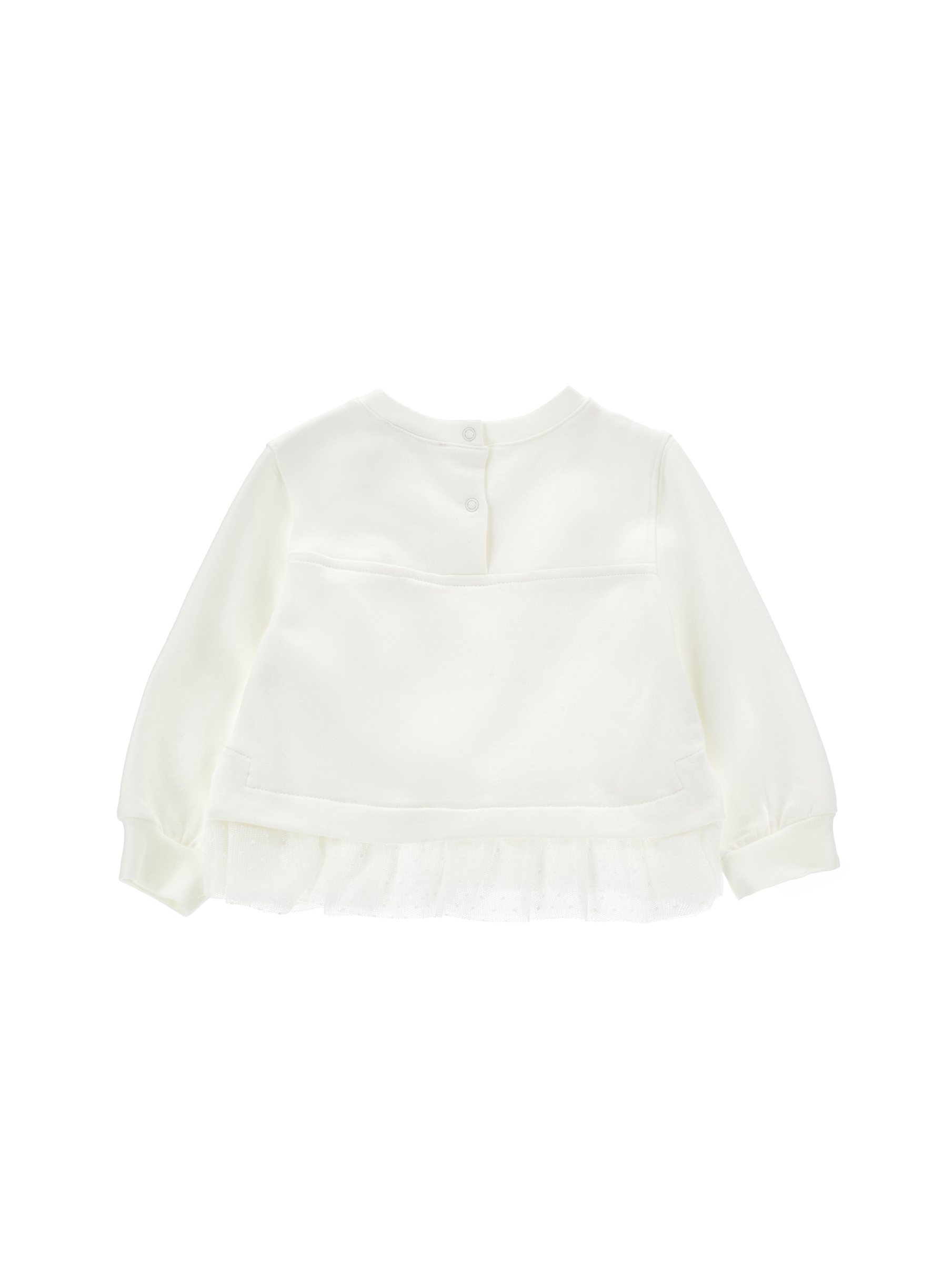 La felpa con stampa cucciolo e dettagli in tulle per un look dolce e raffinato. Perfetta per momenti speciali o una passeggiata nel parco. Comoda da indossare grazie all'apertura posteriore. Indossala con una gonna per un outfit elegante o con jeans per un stile casual. Dettaglio di tulle sul bordo inferiore che aggiunge un tocco femminile. MONNALISA