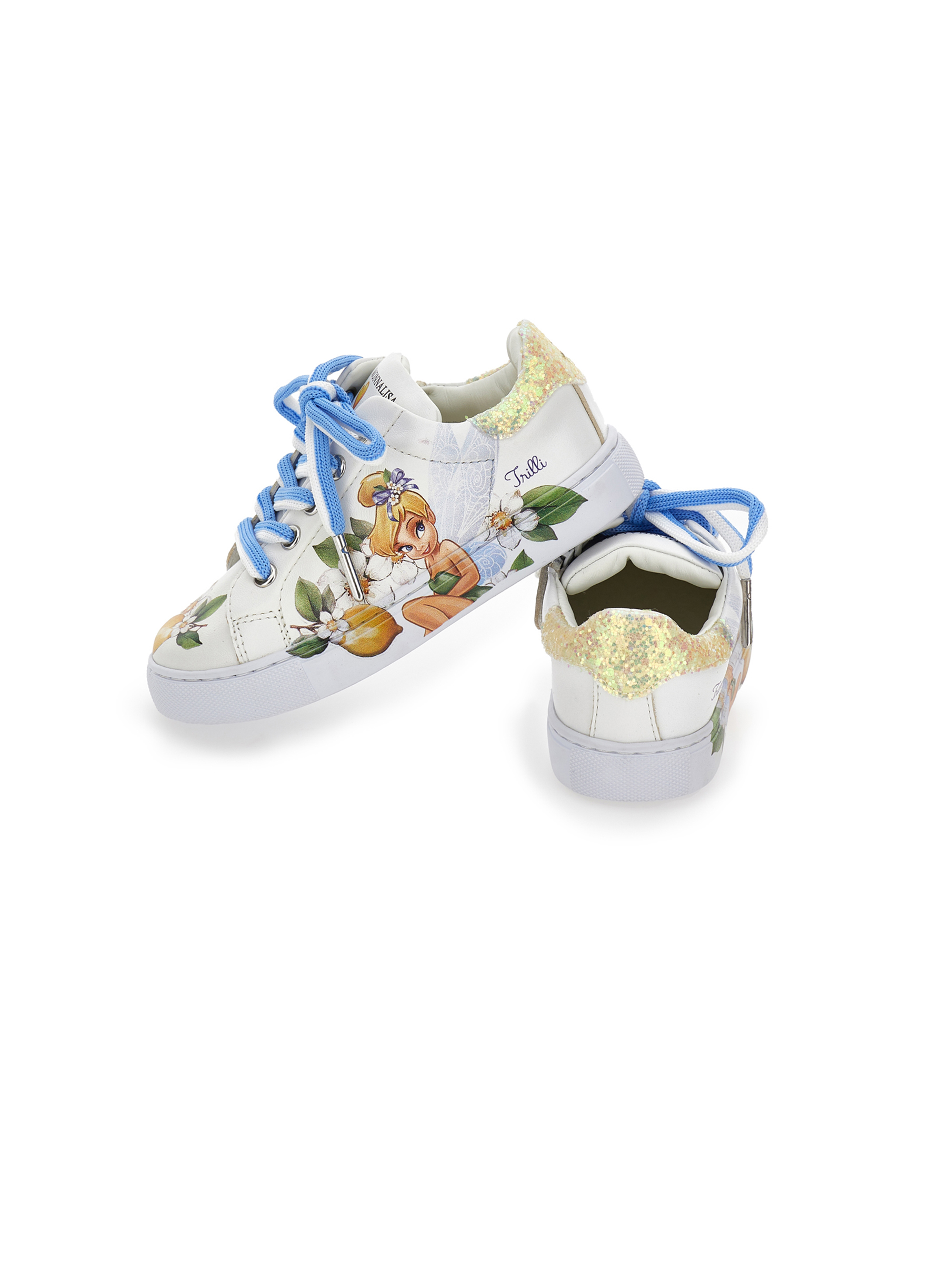 Sneakers realizzate con materiali di alta qualità, decorate con stampa di Trilli e limoni per un tocco fiabesco ed estivo, con inserto in glitter sul tallone per una brillantezza extra, chiusura con lacci frontali per una calzata facile e suola in gomma per maggiore comfort. Perfette per look fashion e chic. MONNALISA