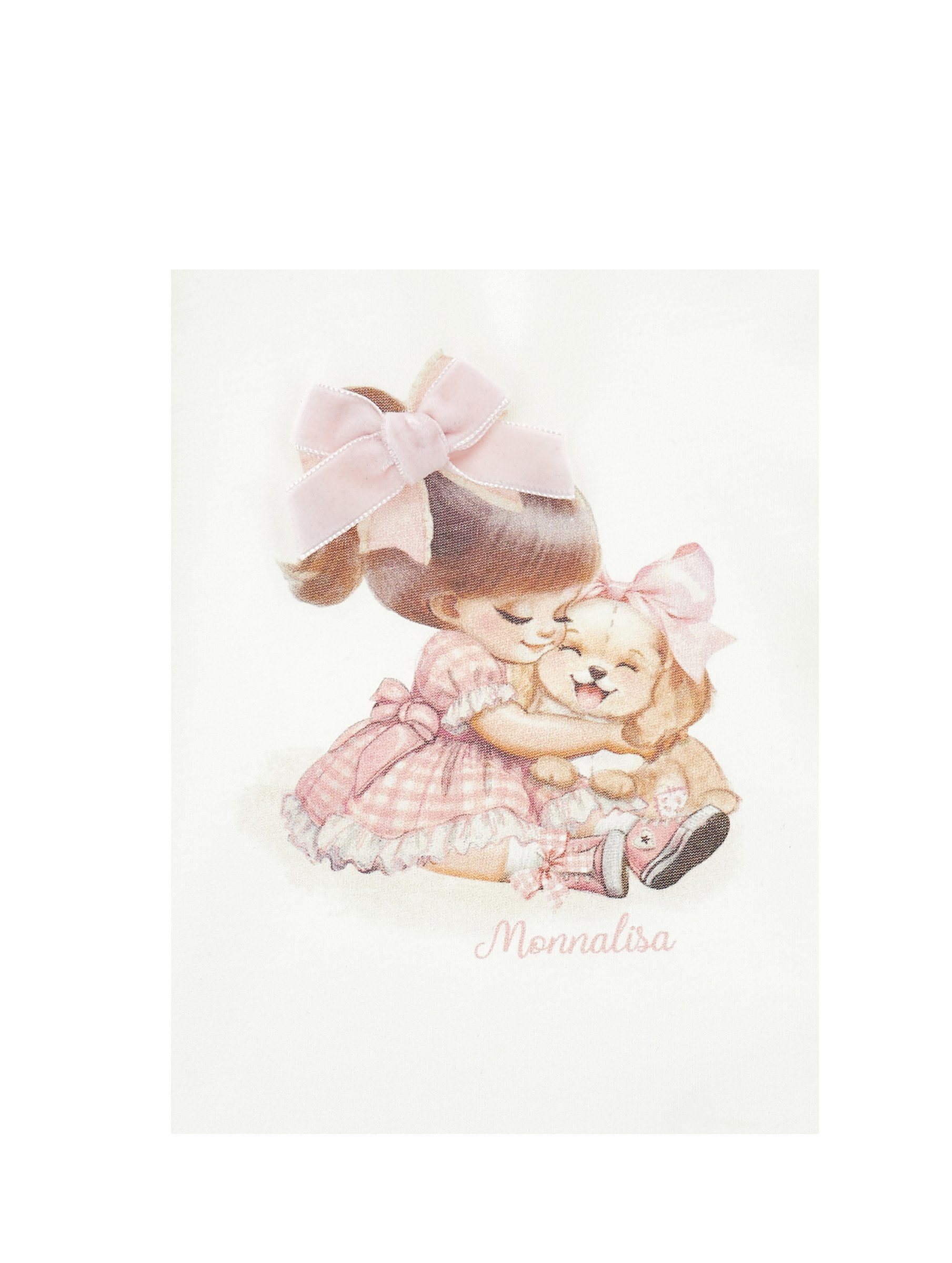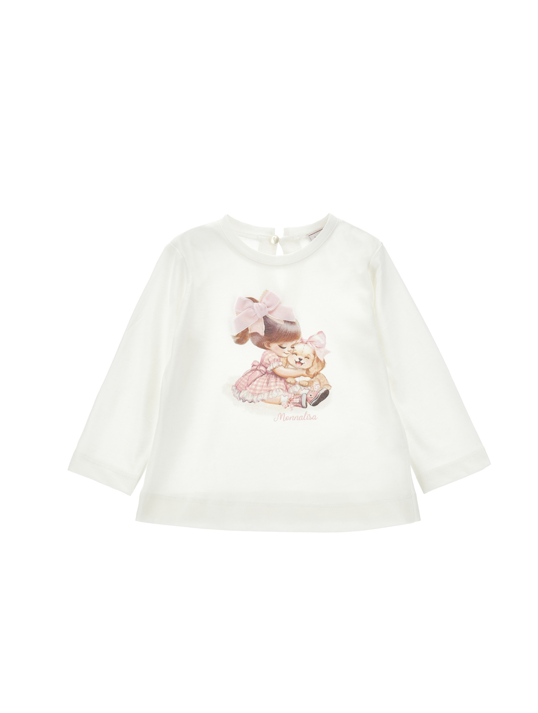 La maglia perfetta per la tua bimba con un dolce disegno di bambina e cagnolino. Ideale per le giornate di gioco o una merenda speciale. Facile da abbinare a jeans o gonna per un look casual chic. Maniche lunghe ideali per i giorni più freschi