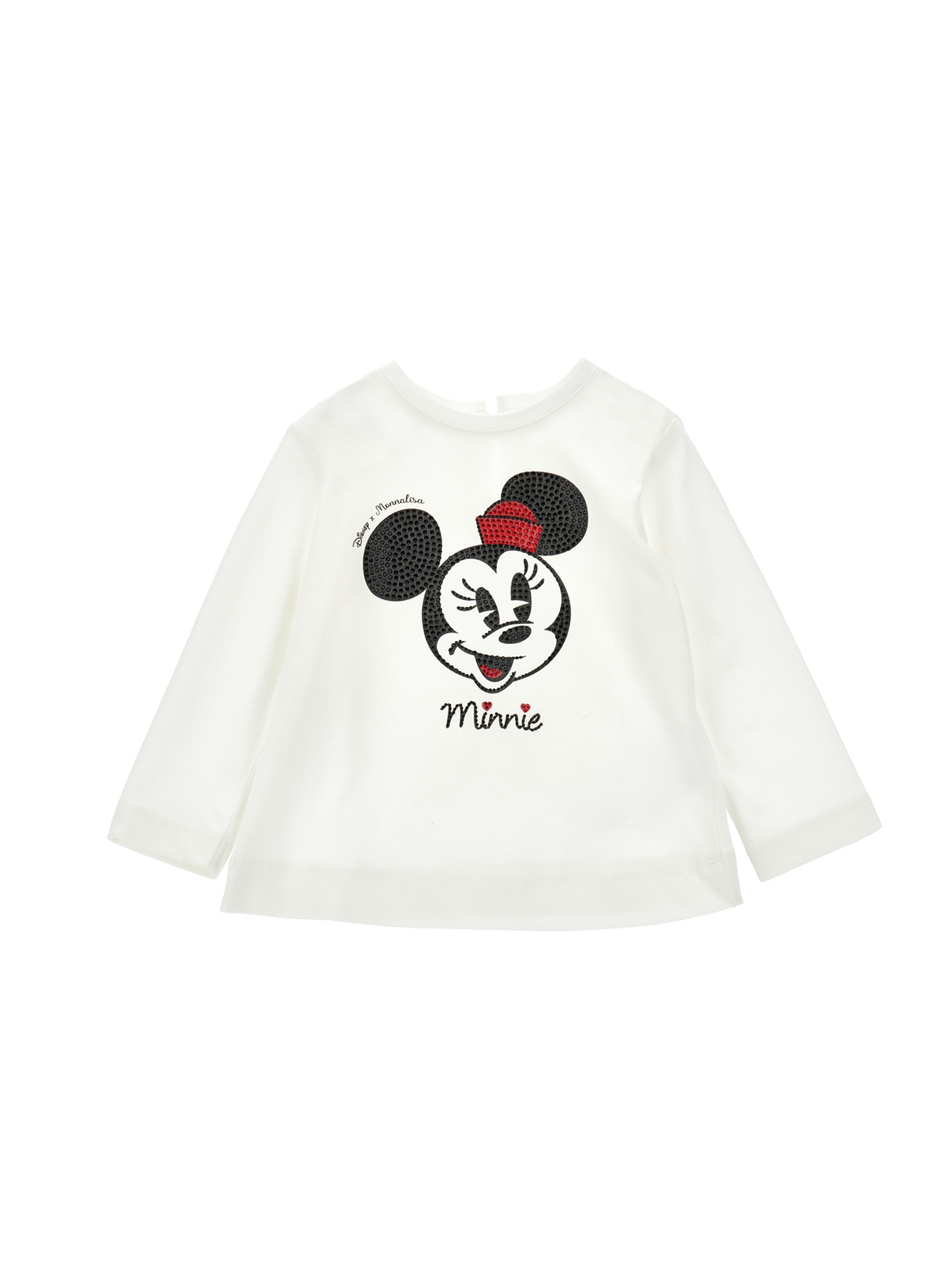 La T-shirt perfetta per le piccole amanti di Minnie, arricchita da dettagli in strass per un tocco di eleganza. Ideale per feste, scuola o una giornata al parco, abbinata a jeans o gonne. Apertura posteriore con bottone per facilitare l'indossamento. Realizzata in morbido jersey per il massimo comfort. MONNALISA