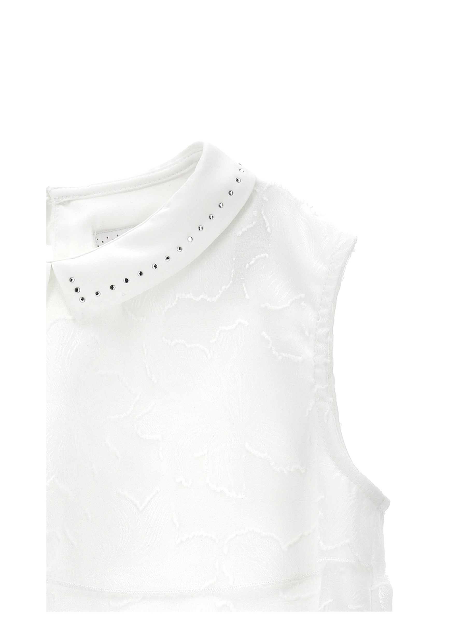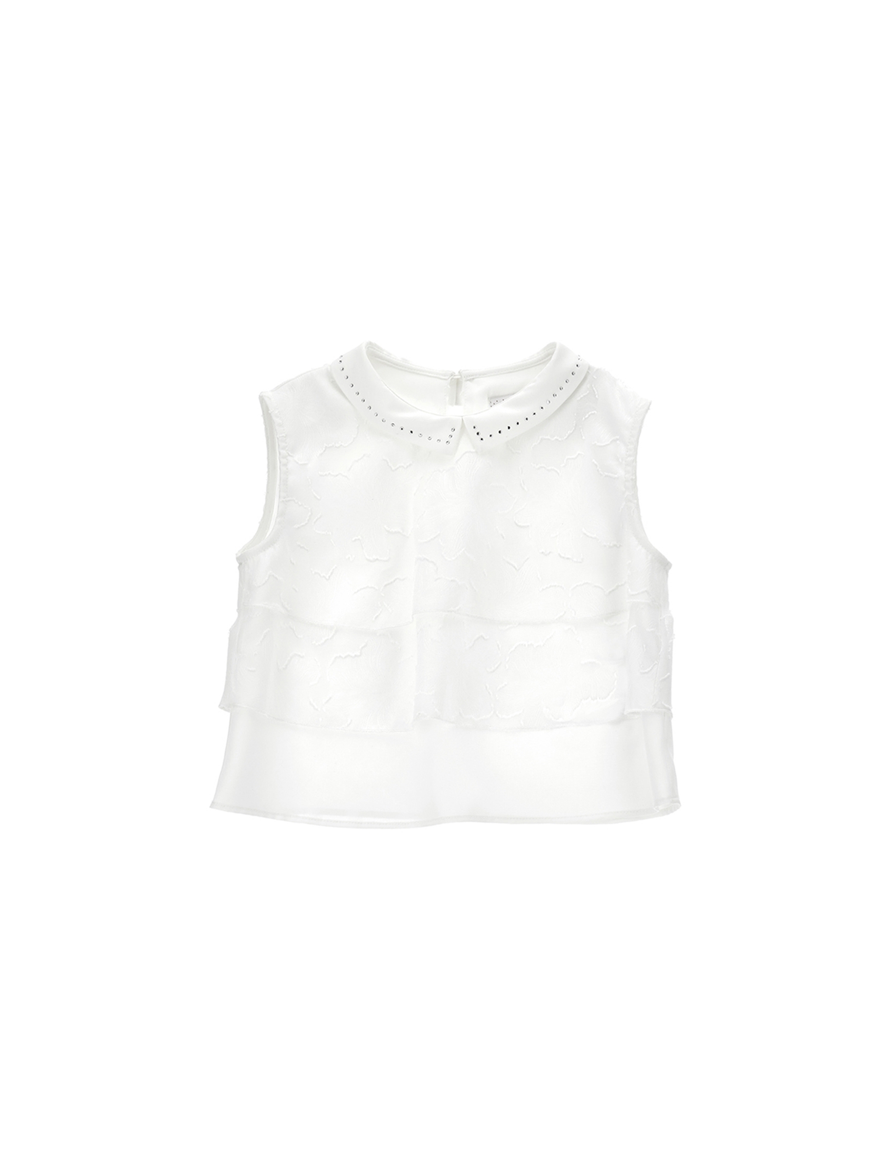 Top senza maniche con ricamo floreale, con colletto impreziosito da strass, dal tessuto leggero e confortevole e balze per un tocco chic. Perfetto per look eleganti e raffinati. MONNALISA
