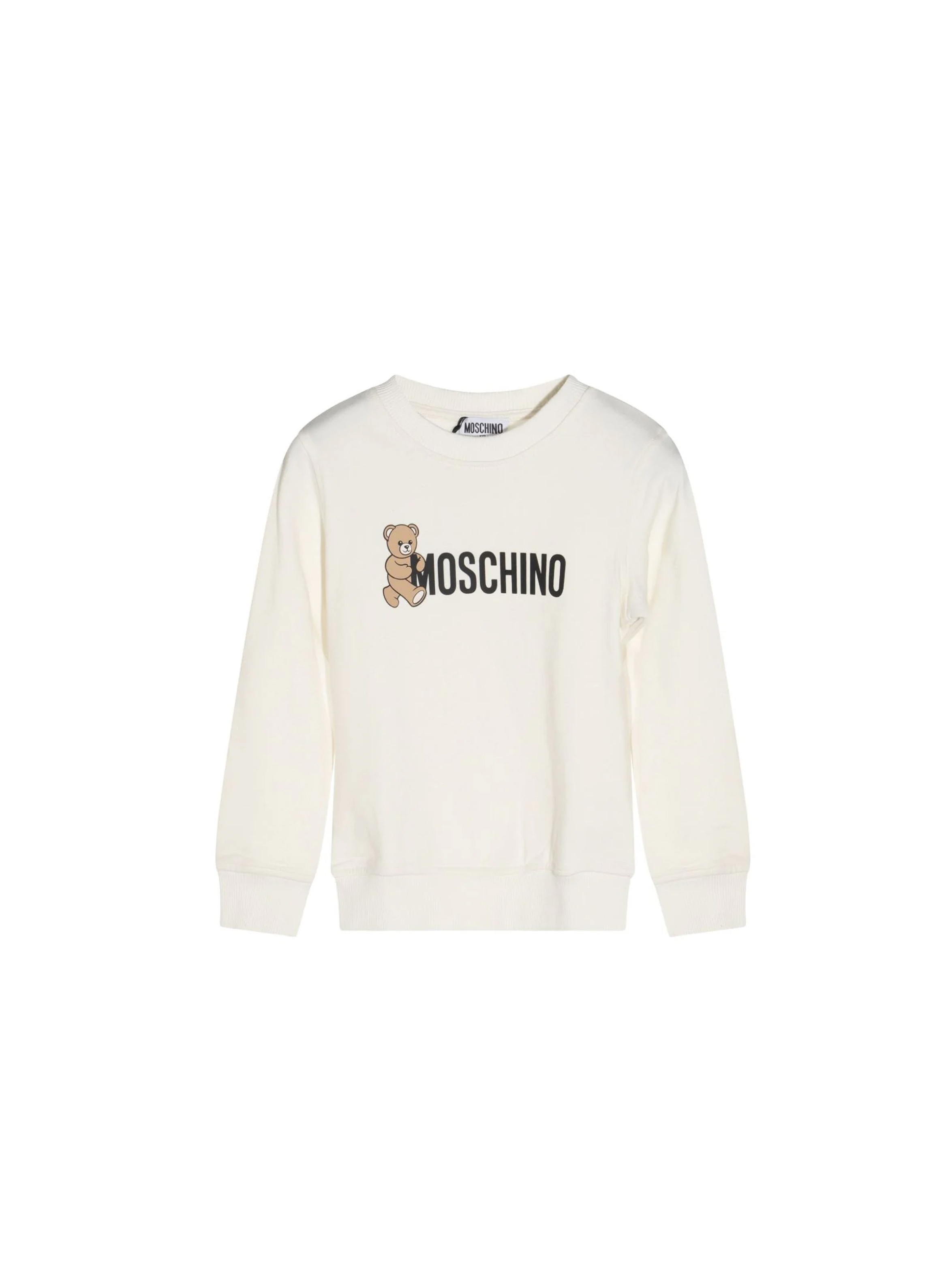 Felpa a maniche lunghe, con scollo rotondo, a tinta unita, con bordi e polsini a costine, con maxi logo a contrasto e iconico Teddy bear sul fronte. Per un look casual e trendy. MOSCHINO