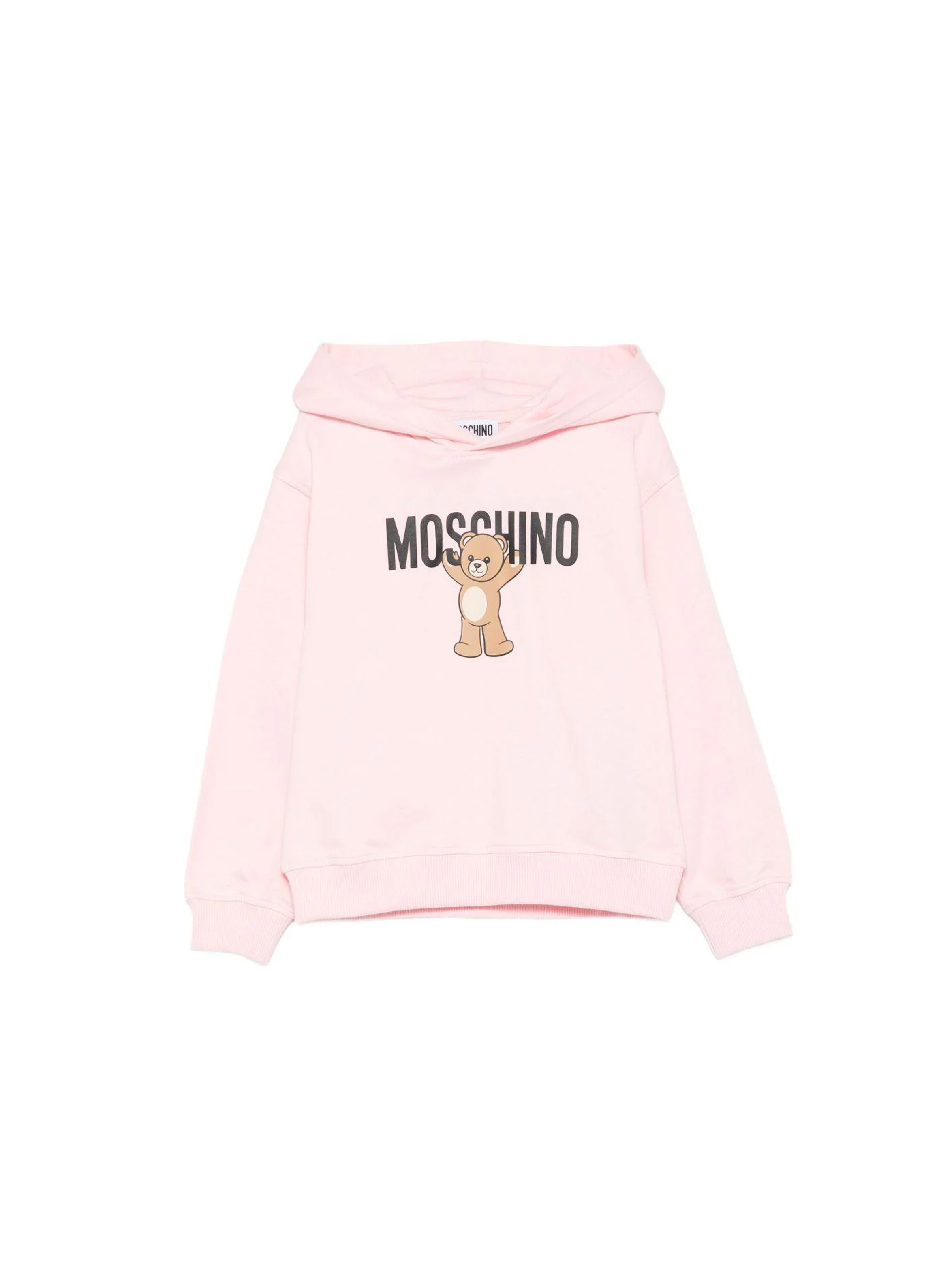 Felpa con cappuccio a maniche lunghe, a tinta unita, con bordo e polsini a costine, con maxi logo a contrasto e iconico Teddy bear sul fronte. Per un look casual e trendy. MOSCHINO
