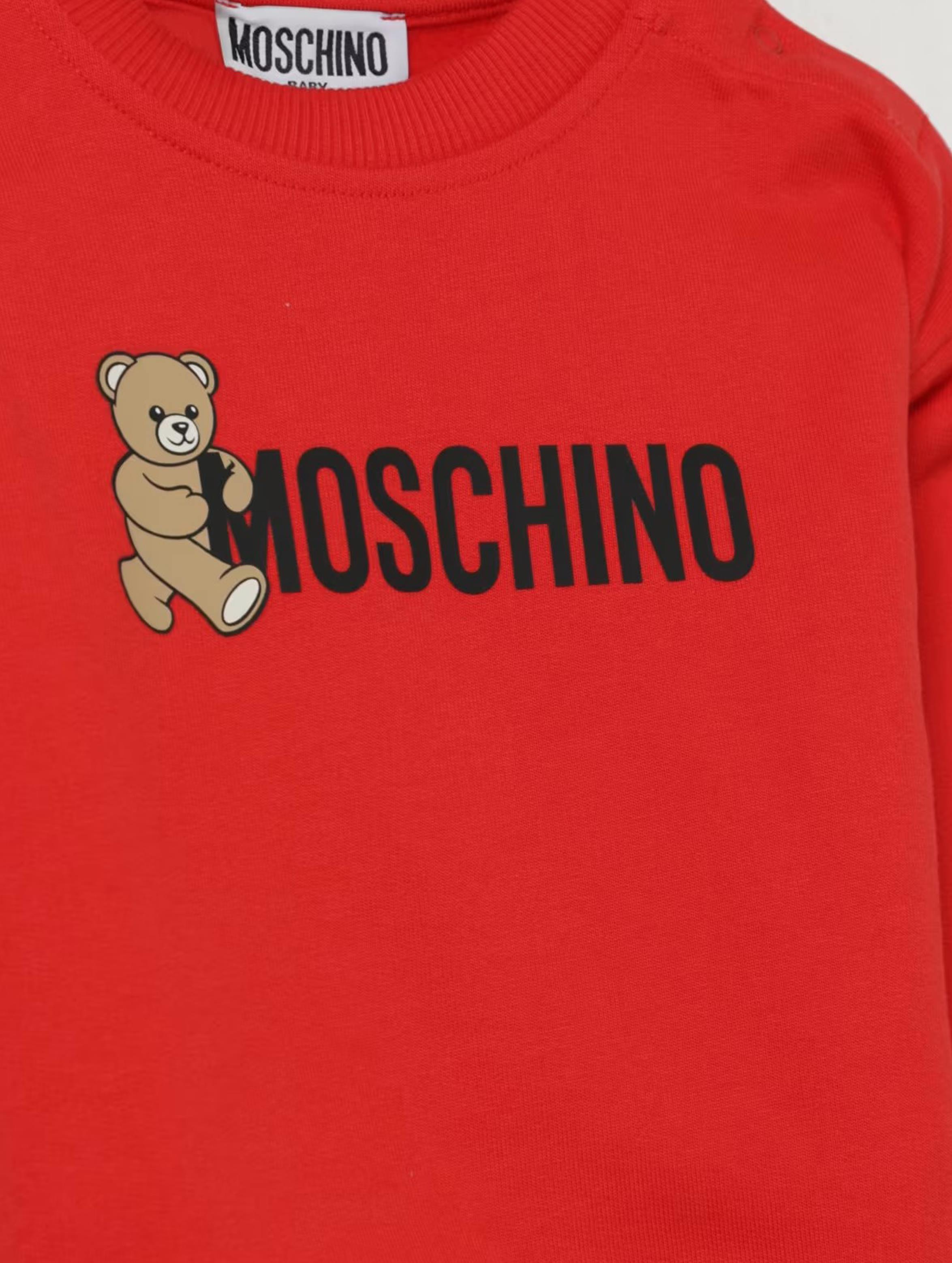 Felpa a maniche lunghe, con scollo rotondo, a tinta unita, con apertura con bottoni sulla spalla, bordi e polsini a costine, maxi logo a contrasto e iconico Teddy bear sul fronte. Per un look casual e trendy. MOSCHINO