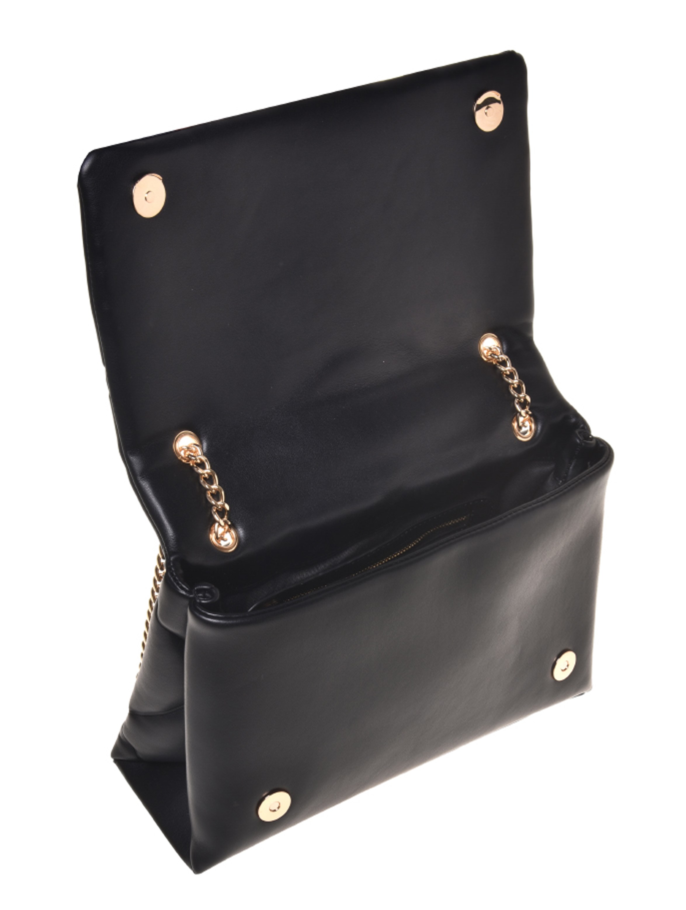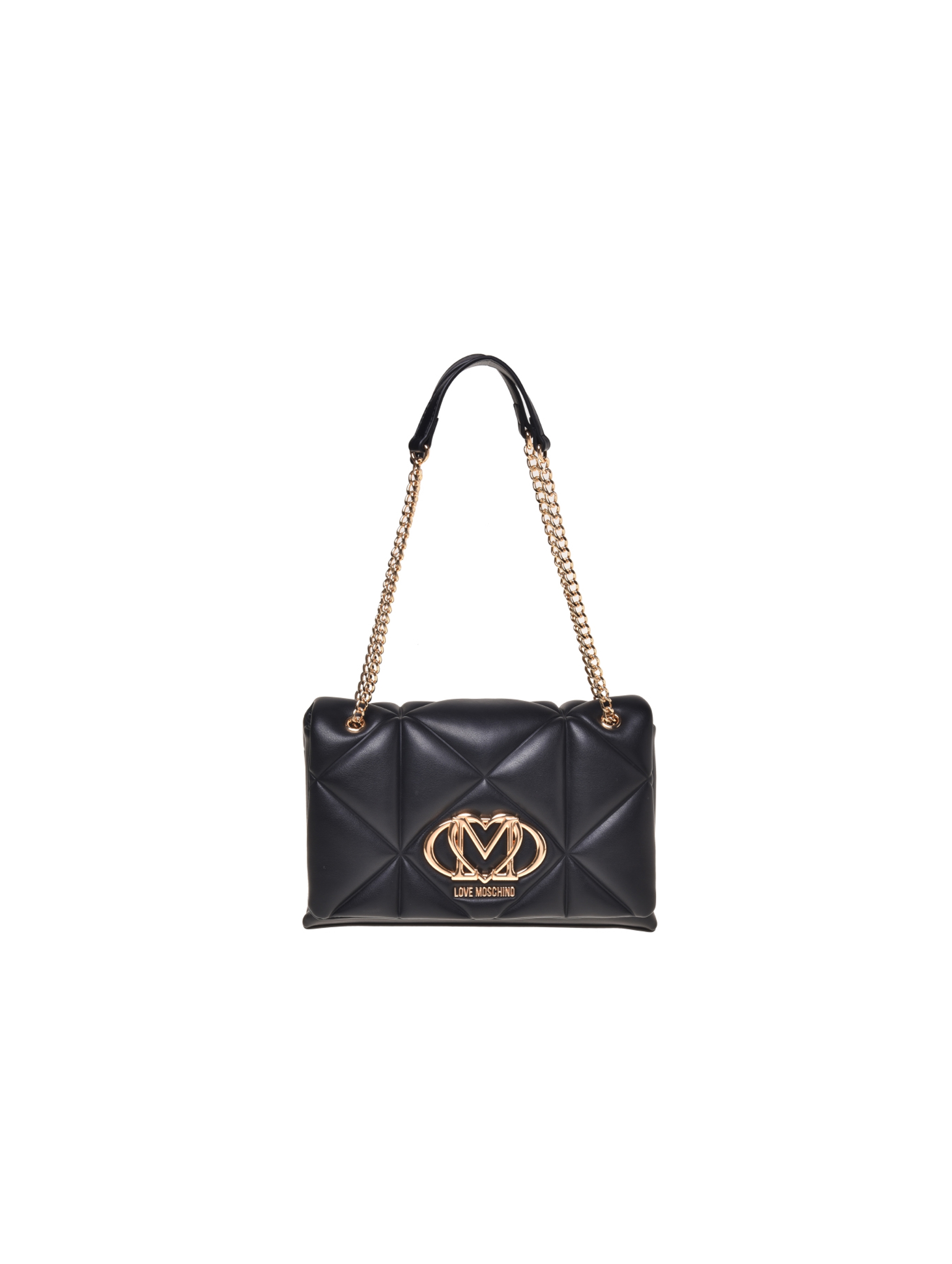 Borsa a spalla trapuntata, con doppi manici con inserti in catena, chiusura con patta e doppio bottone magnetico, interno foderato, tasca interna con zip e logo LM e logo lettering in galvanica oro. Per un look trendy e chic. MOSCHINO LOVE