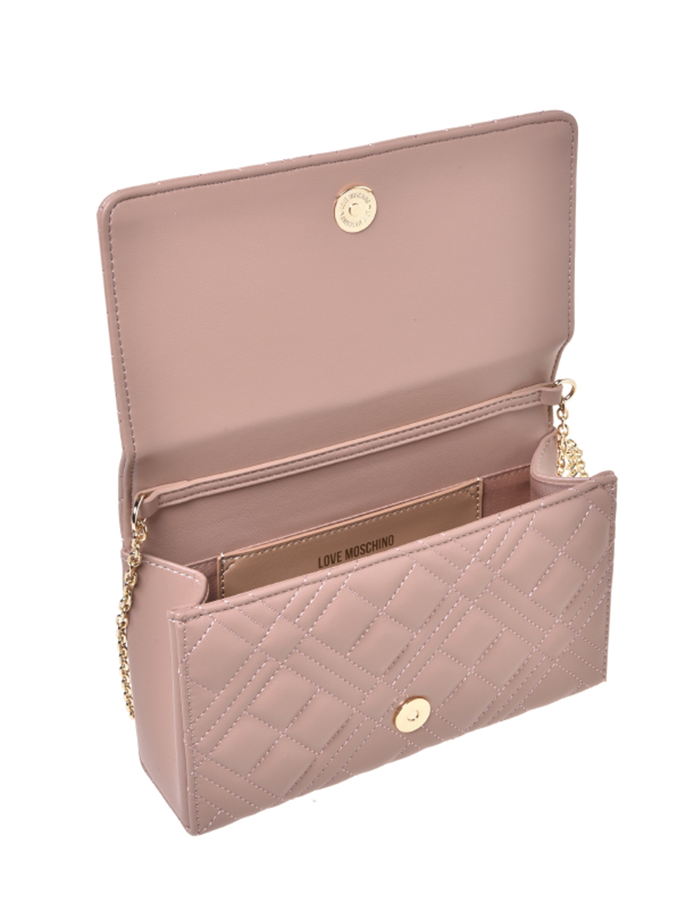Borsa a tracolla in PU trapuntata, con logo lettering in metallo sul davanti, tracolla a catena, impunture in tinta, chiusura magnetica e interno foderato con tasca. Per un look fashion e chic. MOSCHINO LOVE