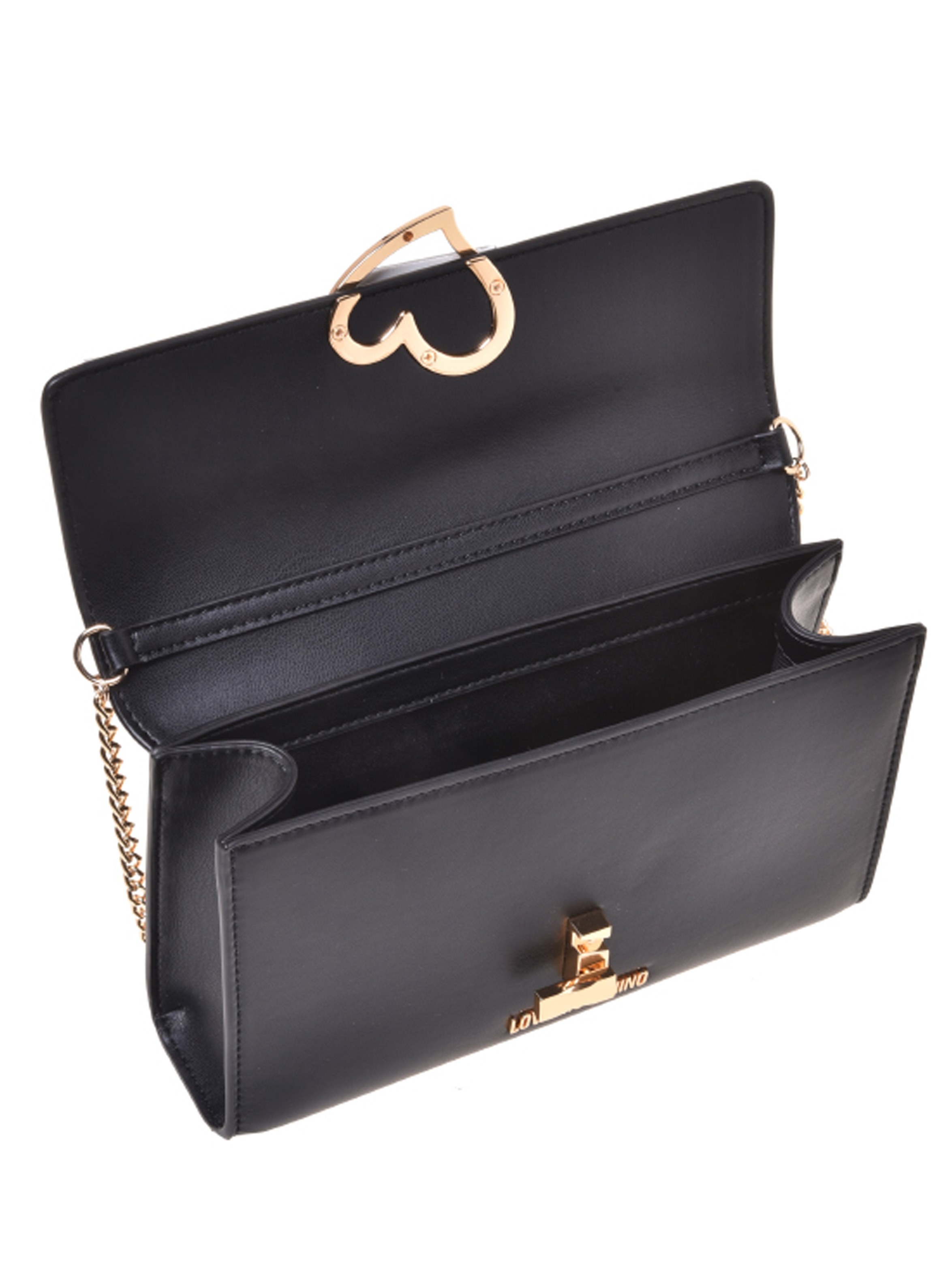 Borsa a tracolla in PU, con tracolla in catena, chiusura con patta e sistema di blocco, scomparto unico interno e logo e dettaglio cuore in galvanica oro sul davanti. Per un look raffinato e fashion. MOSCHINO LOVE