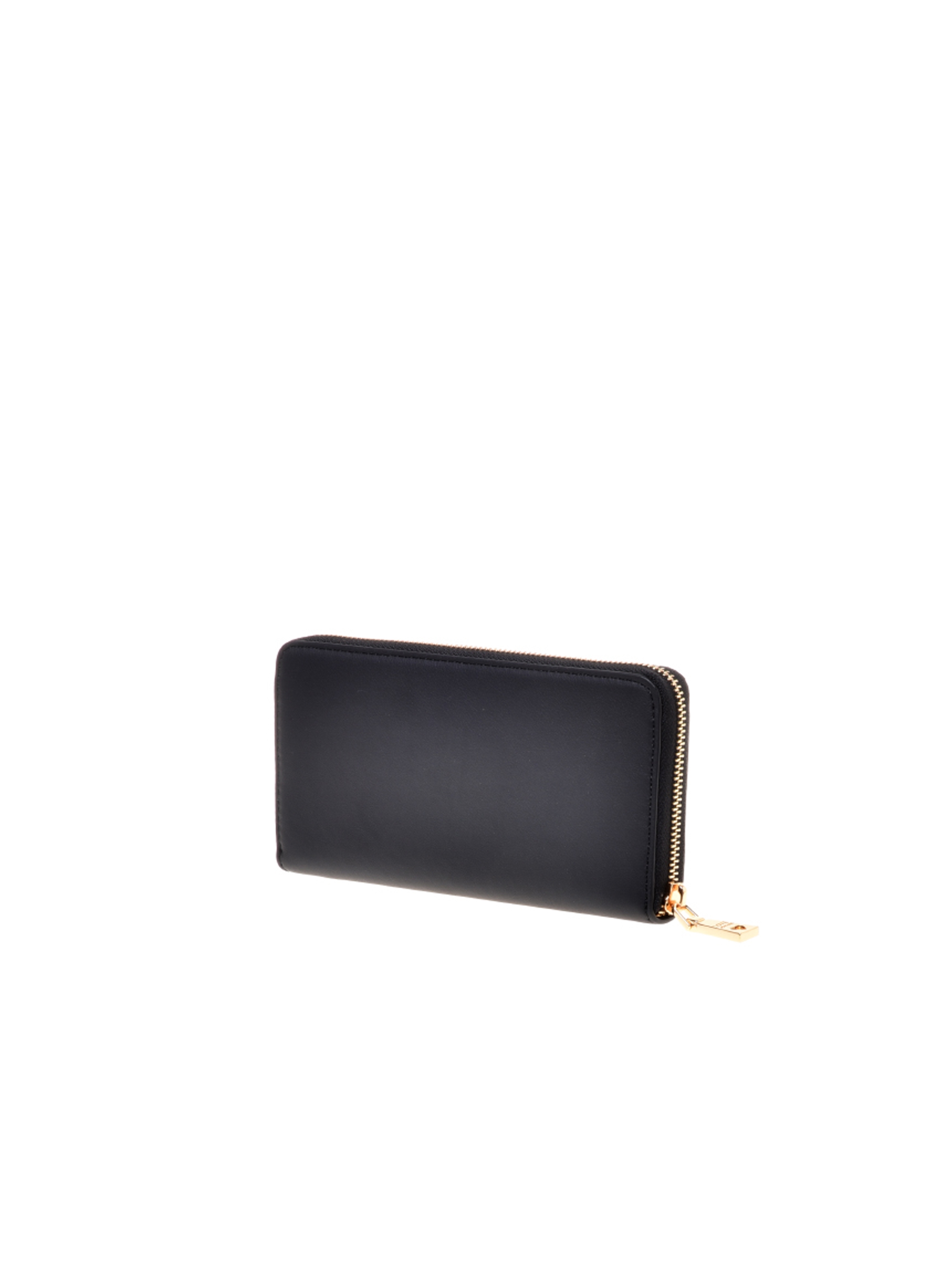 Portafogli in pelle PU liscio, con zip around, scomparti interni per banconote e card, scomparto interno per monete con zip e maxi logo lettering metallico sul fronte. Pratico e trendy. MOSCHINO LOVE