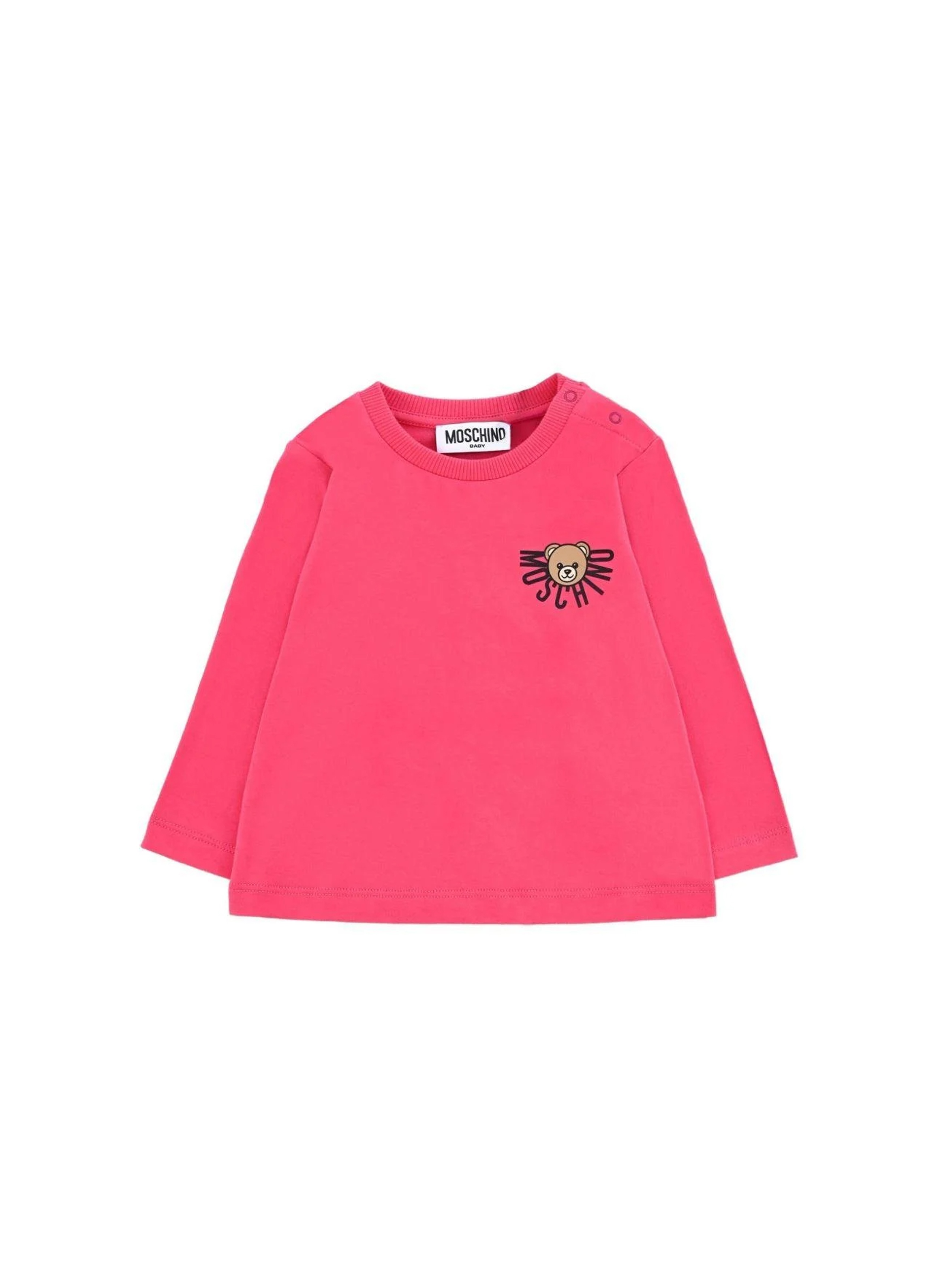 T-shirt a maniche lunghe, a tinta unita, con scollo rotondo, apertura con bottoncini sulla spalla e iconico Teddy con logo sul petto. Per un look casual e trendy. MOSCHINO