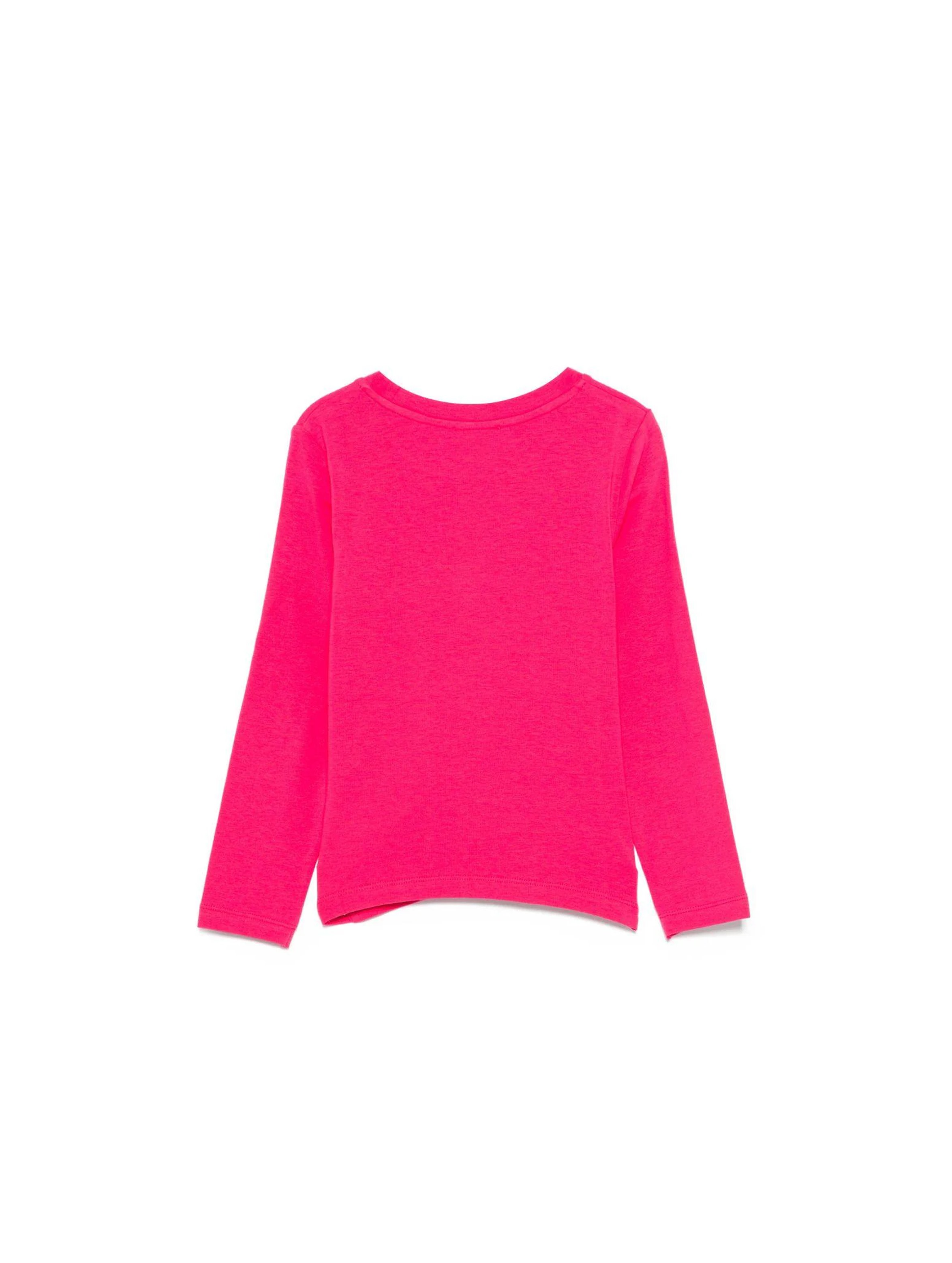 T-shirt a maniche lunghe, con scollo rotondo, a tinta unita e maxi iconico Teddy Bear con logo stampati sul davanti. Per un look easy e trendy. MOSCHINO