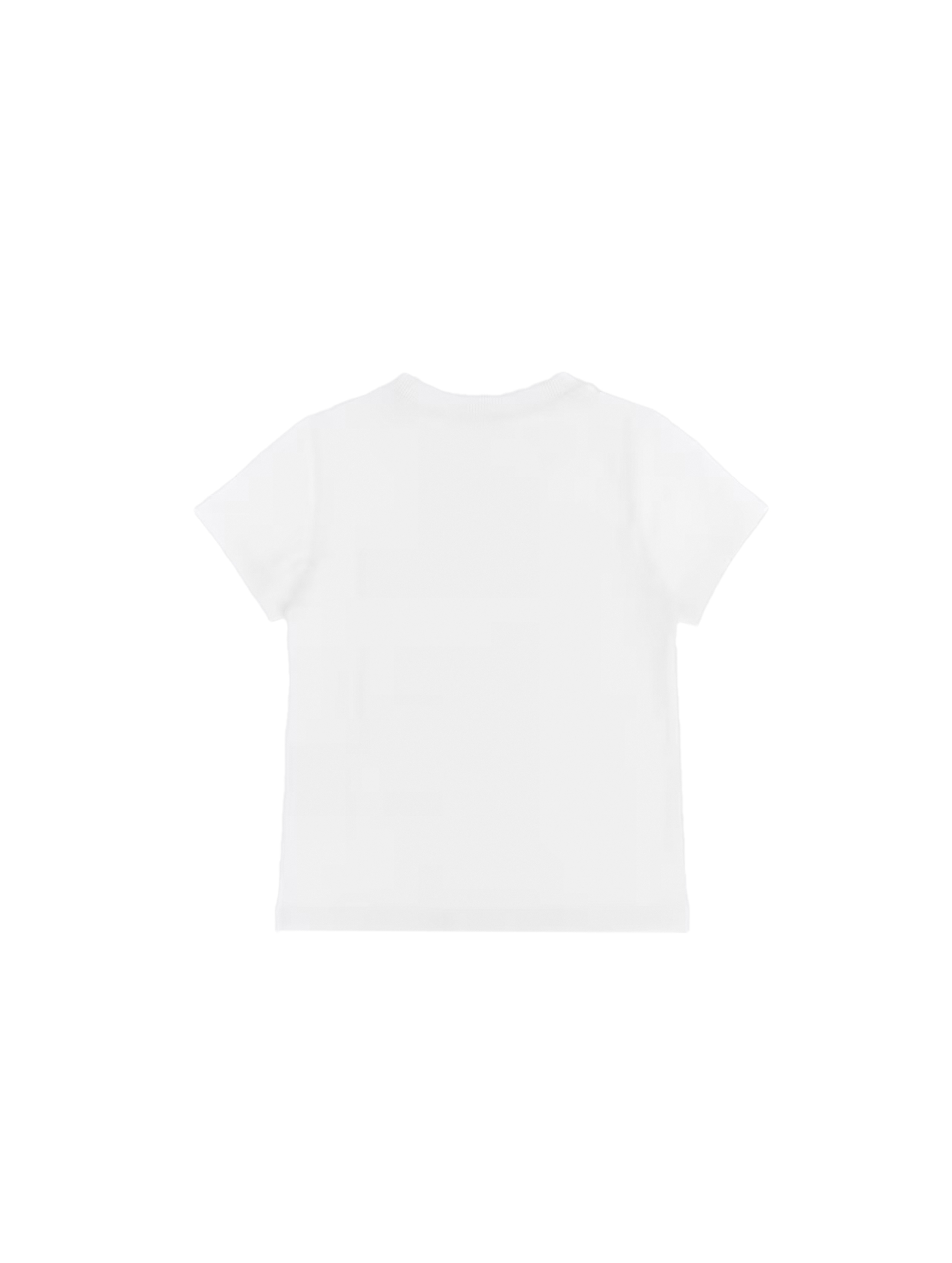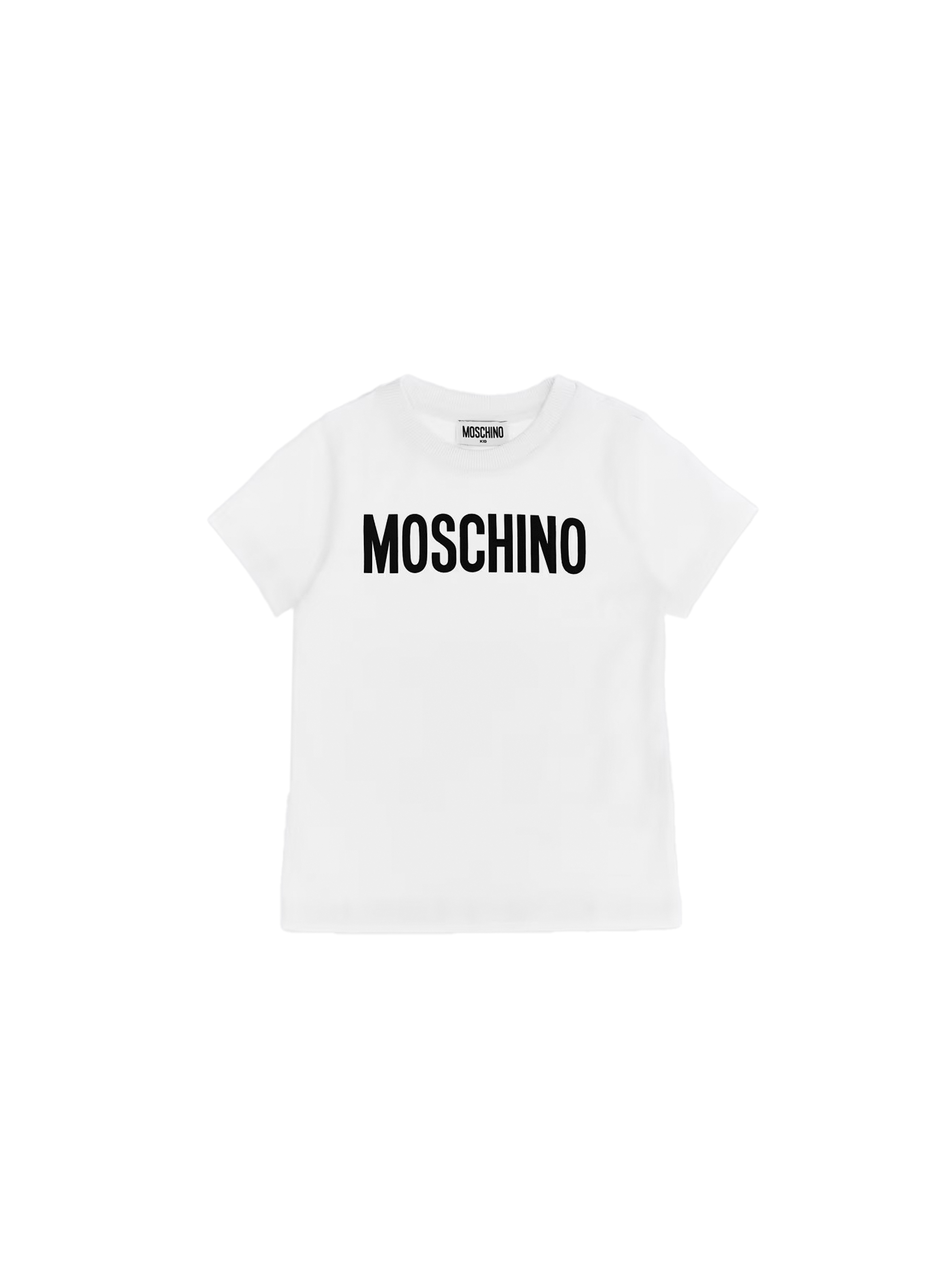 T-shirt a maniche corte, con scollo rotondo a costine, a tinta unita e maxi logo a contrasto sul fronte. Per un look basic e casual. MOSCHINO