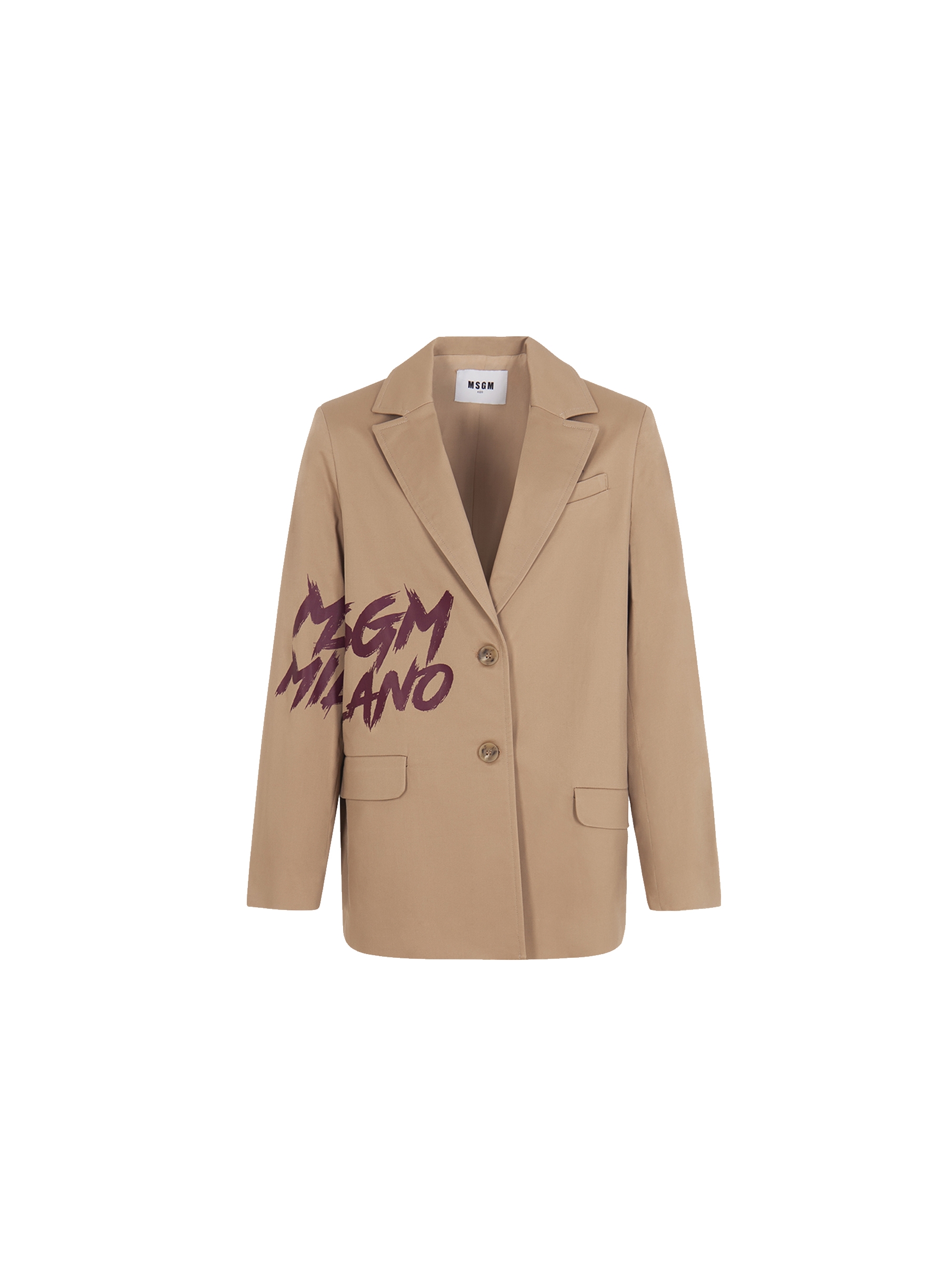 Giacca in gabardine, con scollo a V, tinta unita, con stampa scritta logo a contrasto laterale e chiusura a bottoni. Stay cool. MSGM
