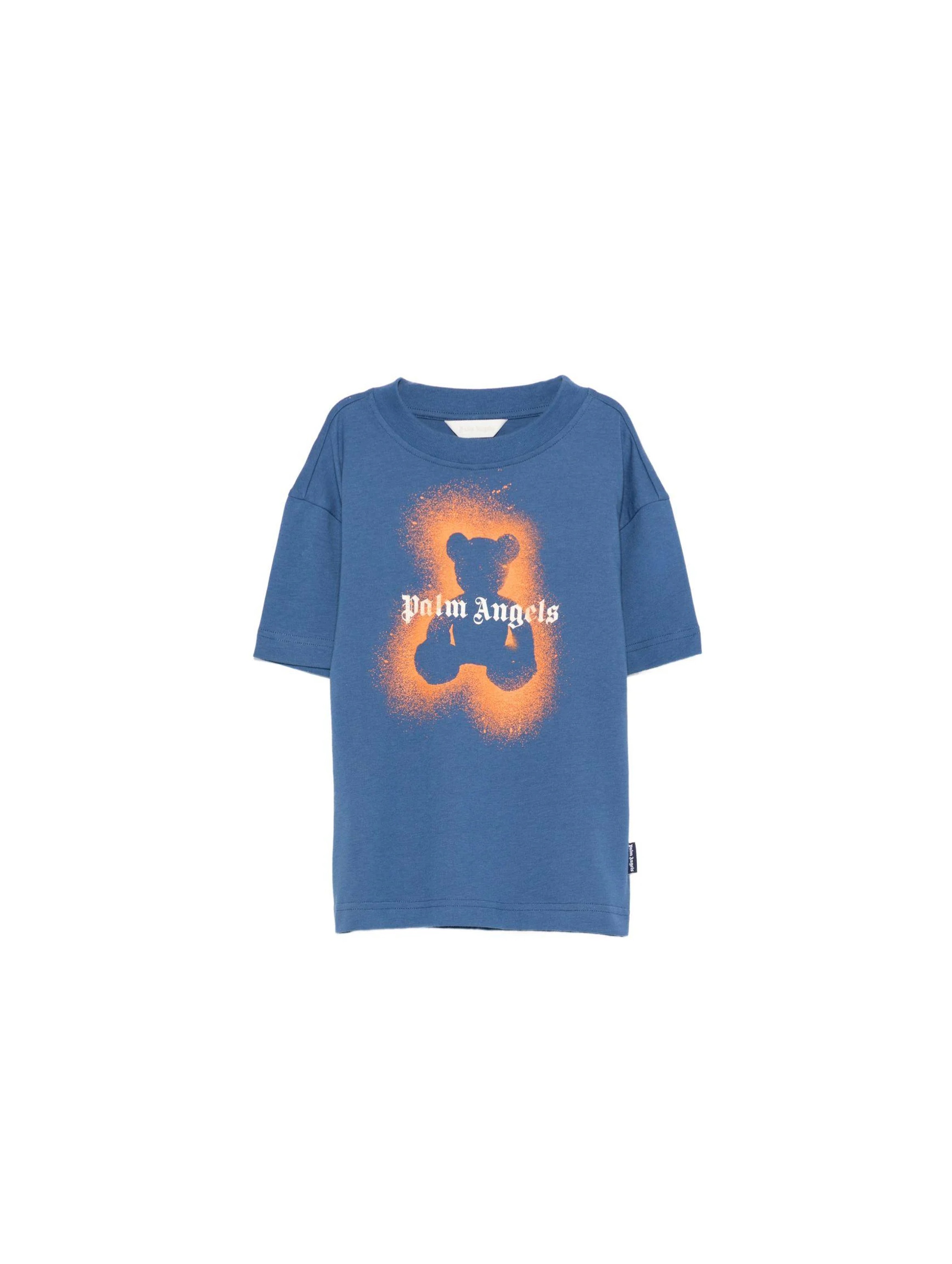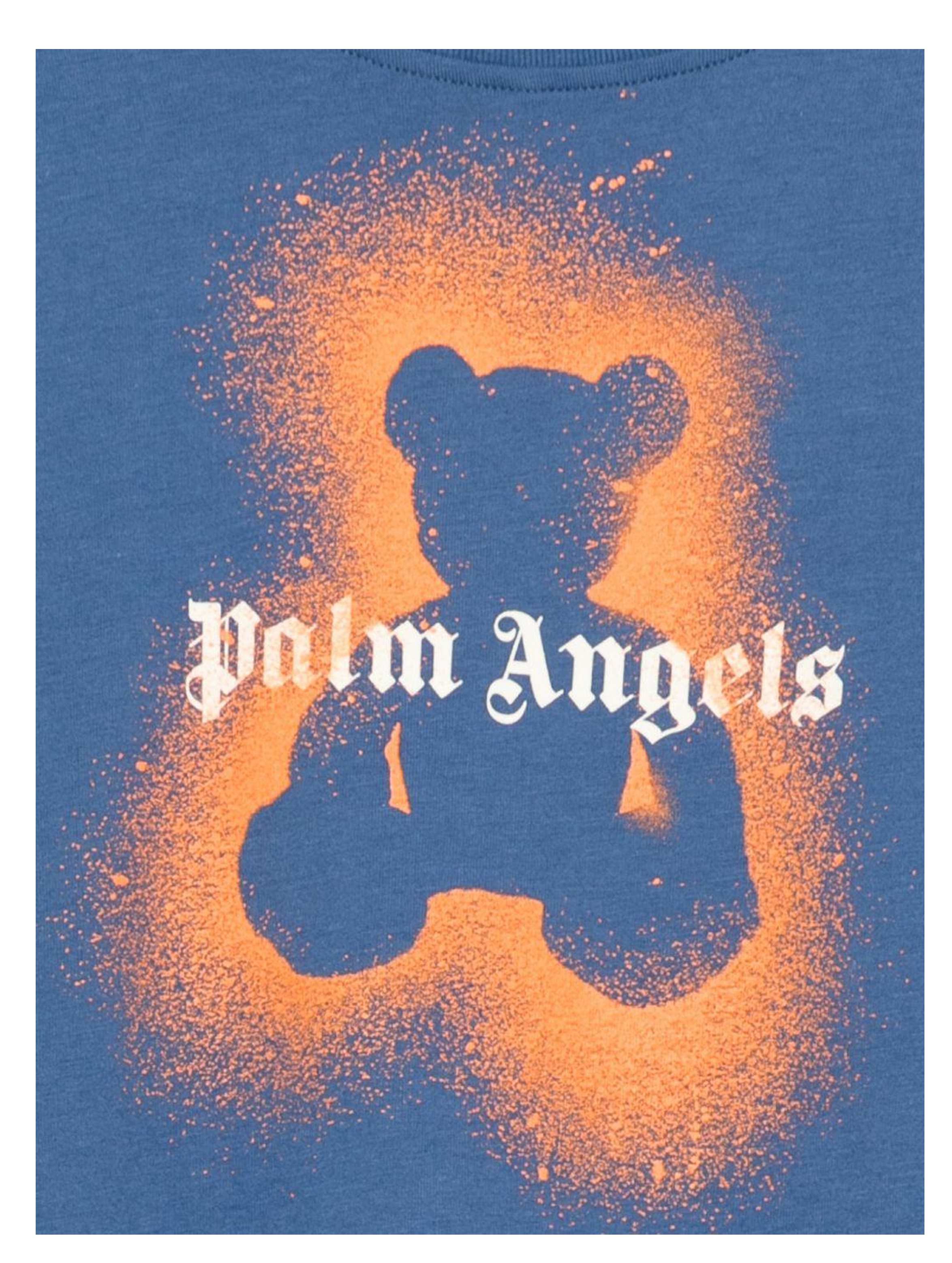 T-shirt a maniche corte, dalla vestibilità regular, con scollo rotondo, a tinta unita, con maxi stampa grafica di orsetto stile spray e logo gotico a contrasto sul davanti. Per un look underground e cool. PALM ANGELS
