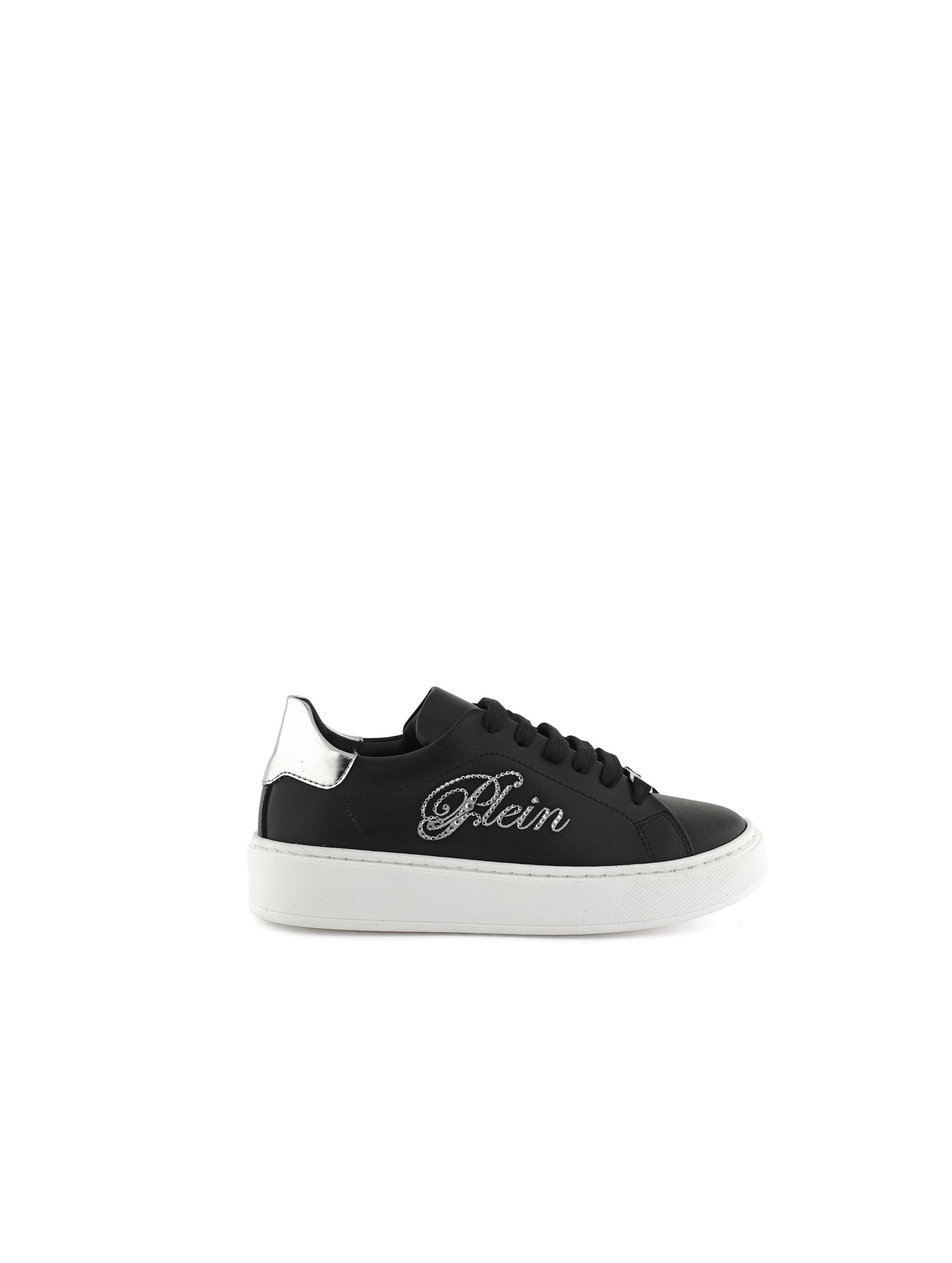 Sneakers a caviglia bassa in pelle, con chiusura a lacci piatti, suola in gomma, gambetto laminato e logo lettering in strass sul lato esterno. Per un look fashion e trendy. PHILIPP PLEIN