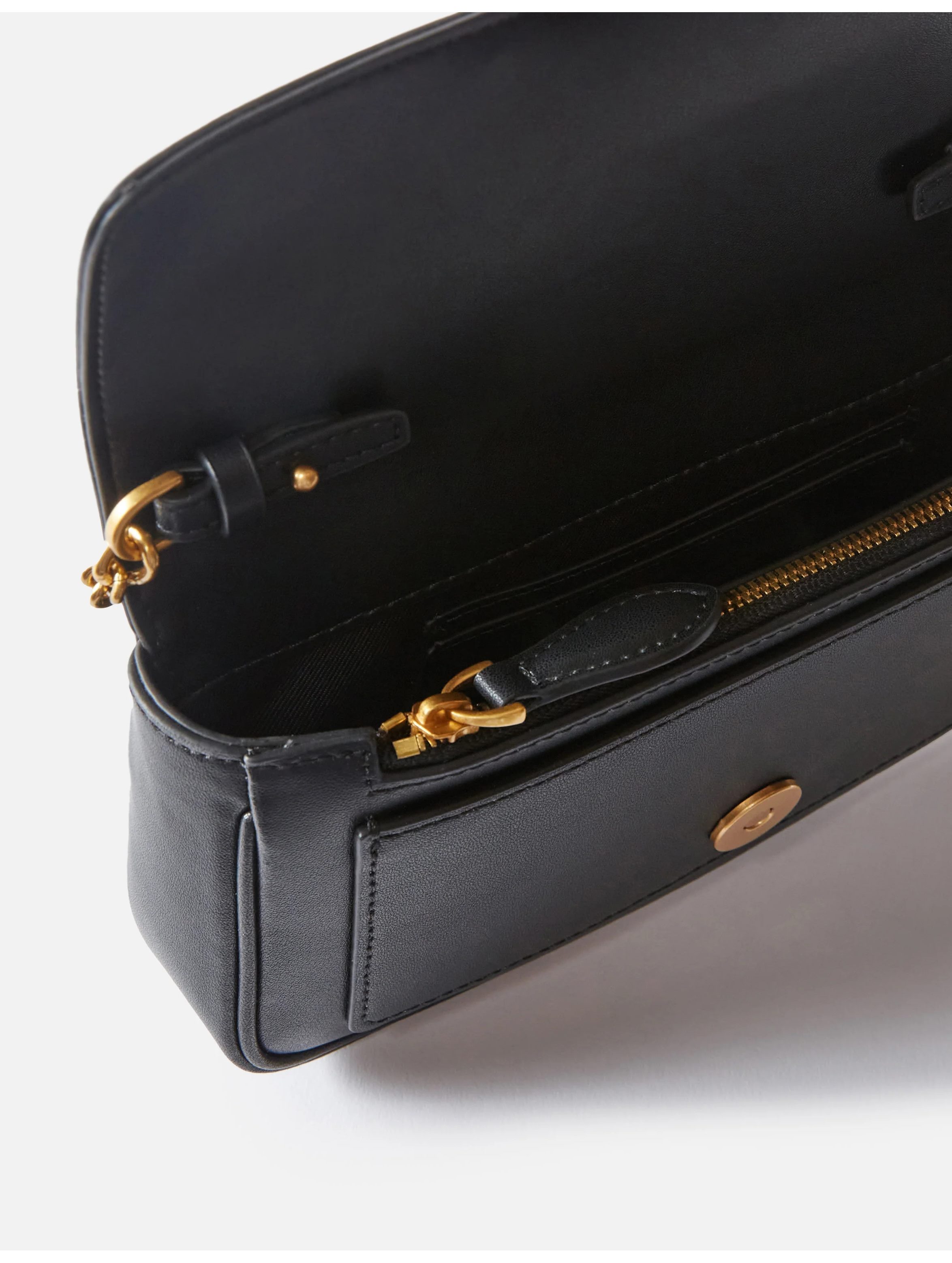 Borsa a tracolla piccola, realizzata in morbida pelle mano seta, con interno foderato, tasca interna con zip e spazi per carte di credito, tracolla removibile in catena sottile e completata da una chiusura con patta impreziosita da piccole borchie e dall'iconica fibbia in metallo Love Birds Diamond Cut. Per look trendy e chic. PINKO